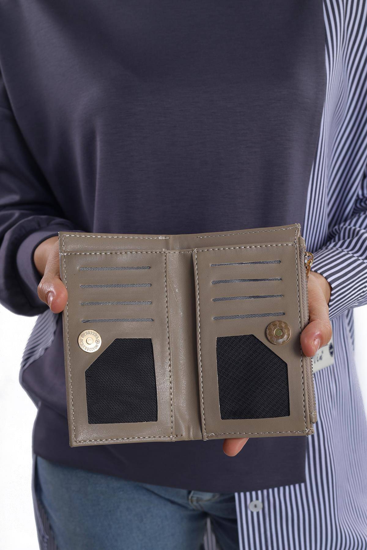 023 Çıtçıtlı Fermuarlı Cüzdan Vizon