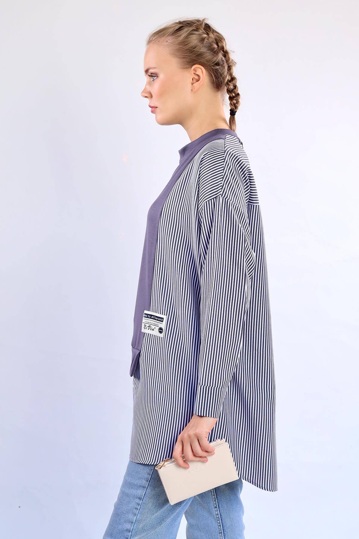 7149A Belden Bağlamalı Uzun Kaşe Kaban Gri