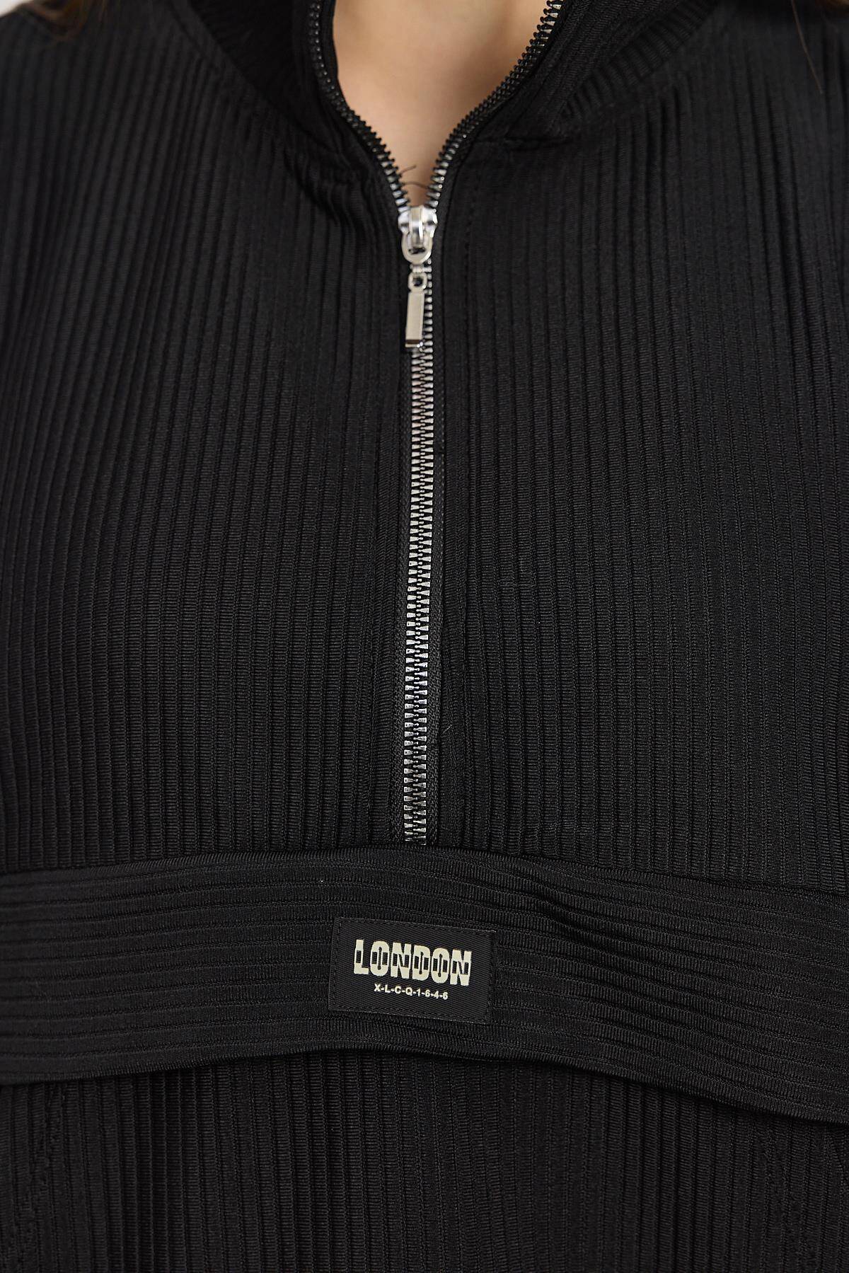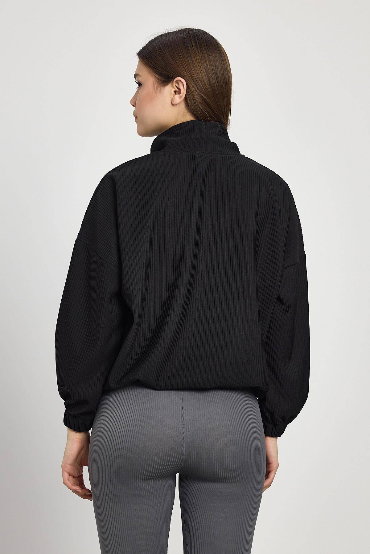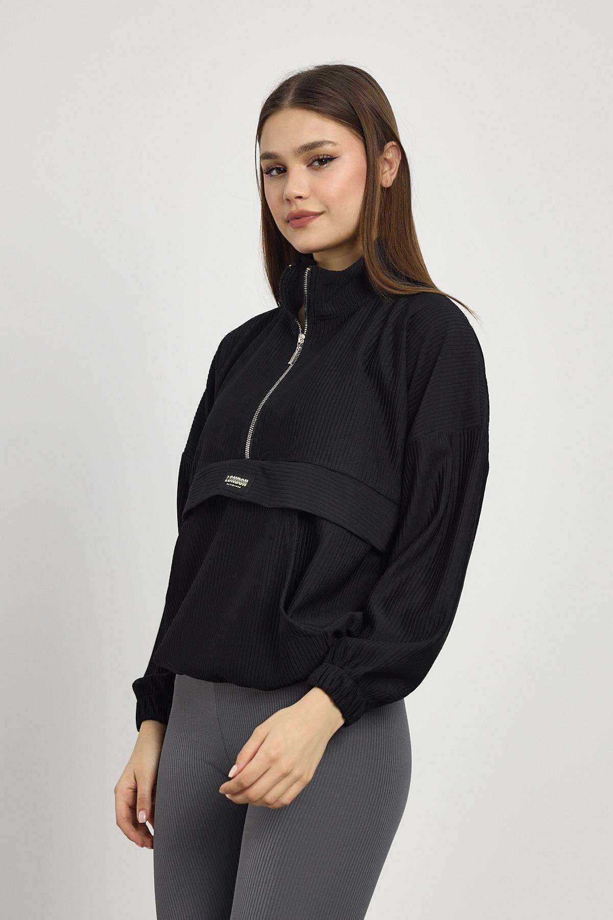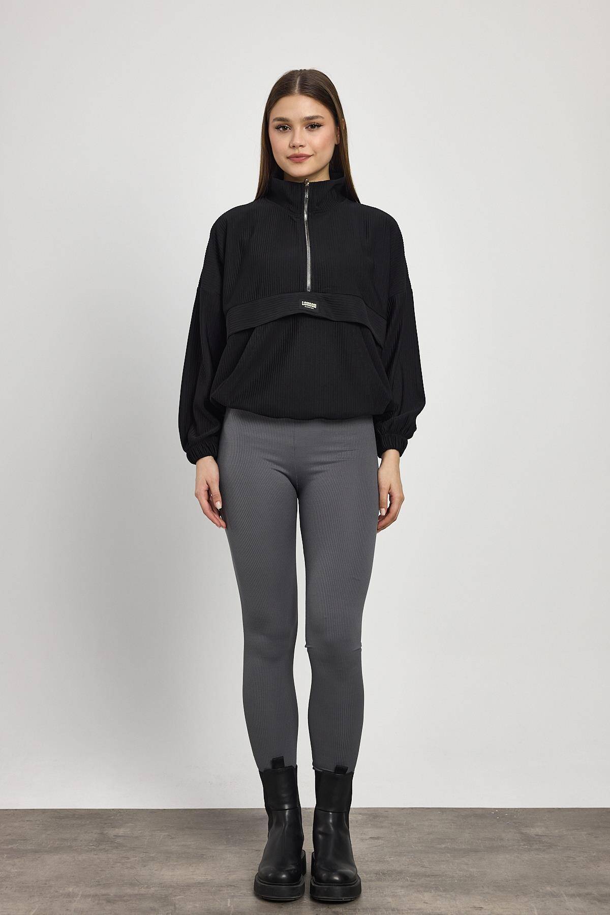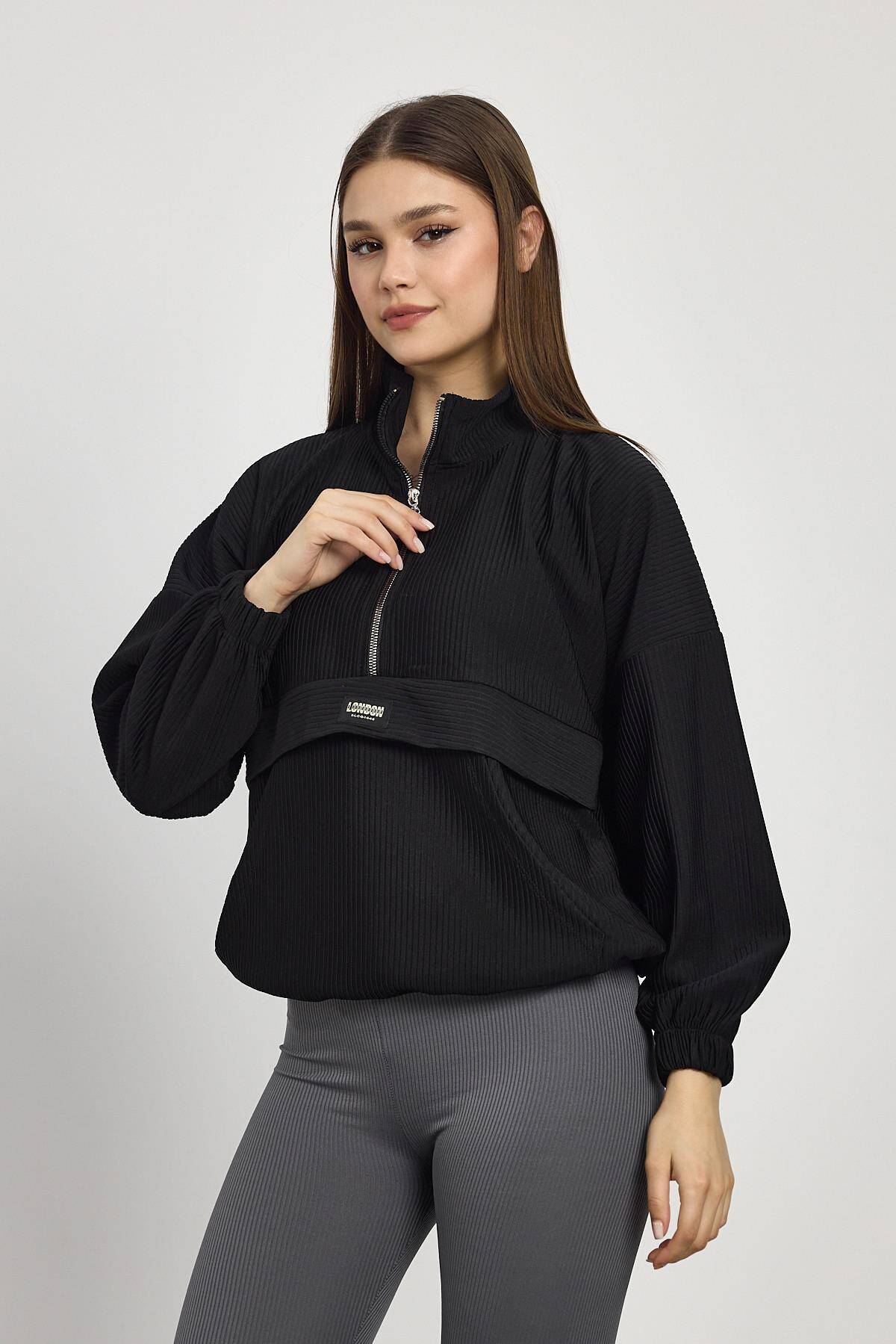 Siyah Kapüşonlu Cepli Fermuarlı Kap 4572A