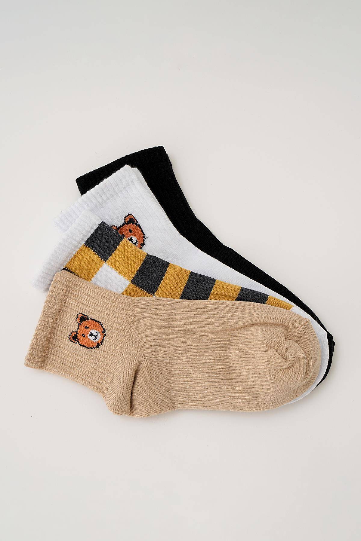 1084 Ayıcık Desen 4'lü Soket Çorap Renkli