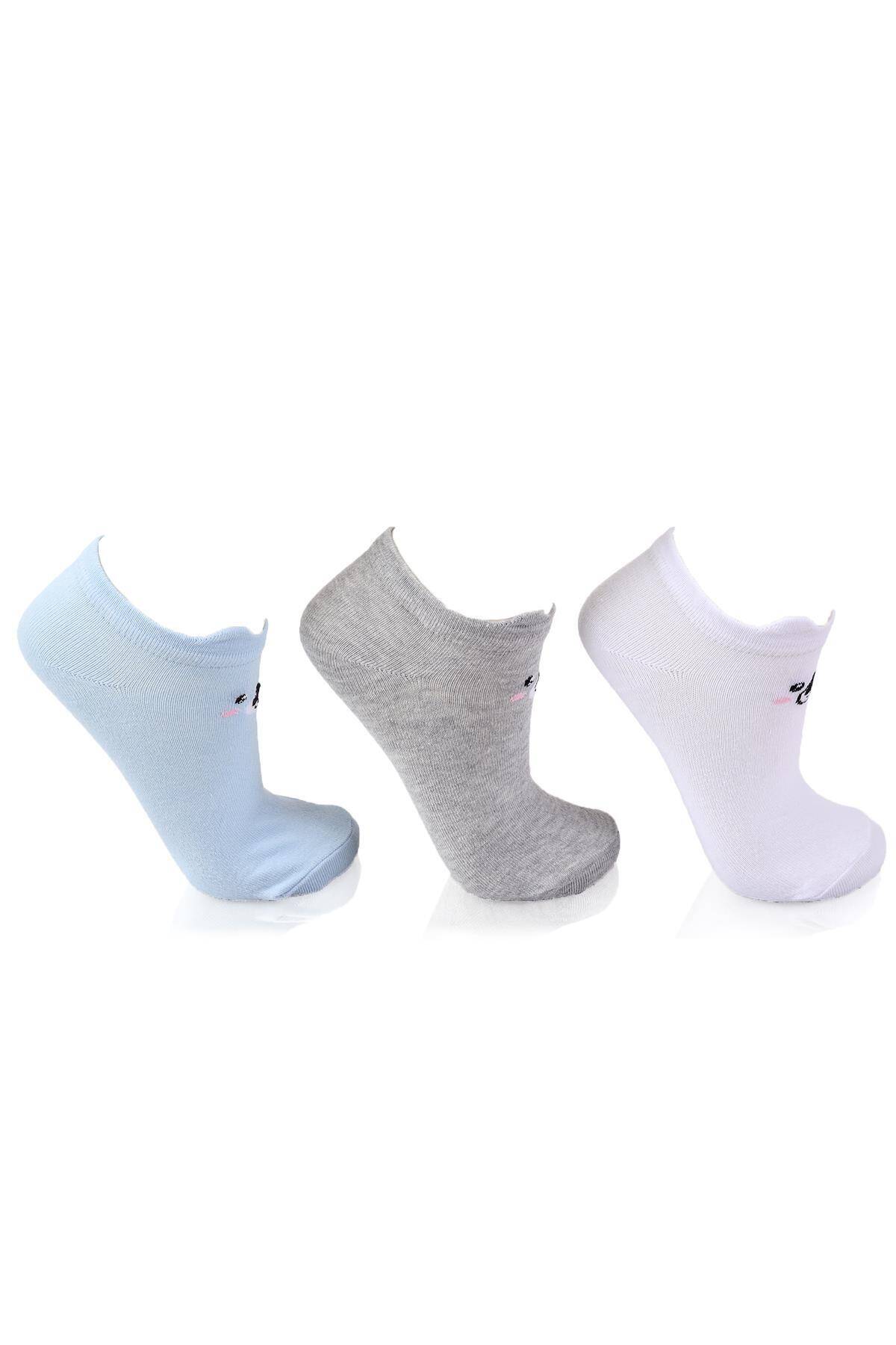 1101 Üç Boyutlu 3'lü Patik Çorap Beyaz-Gri-Mavi