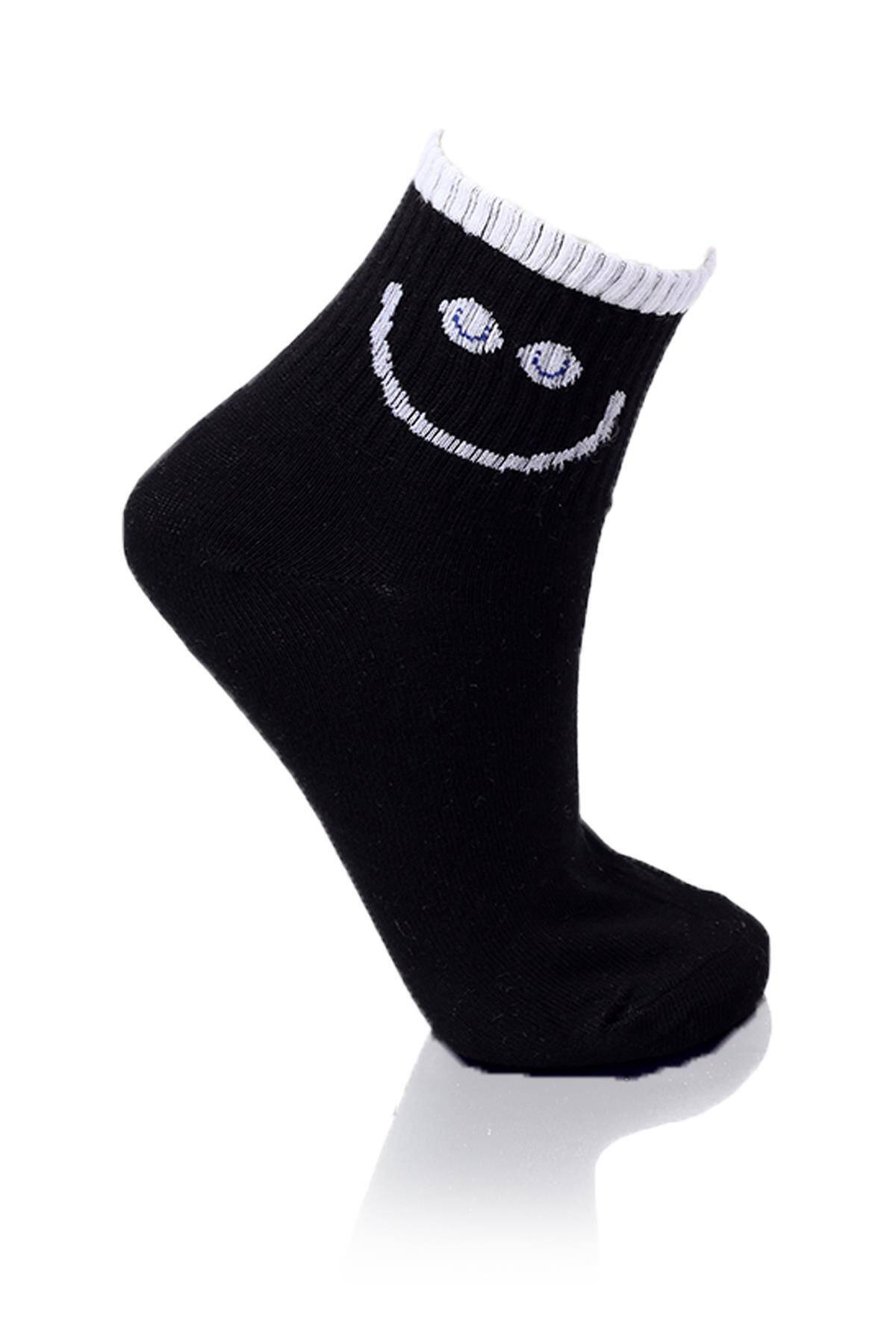 1102 Smile Baskı 3'lü Yarım Konç Çorap