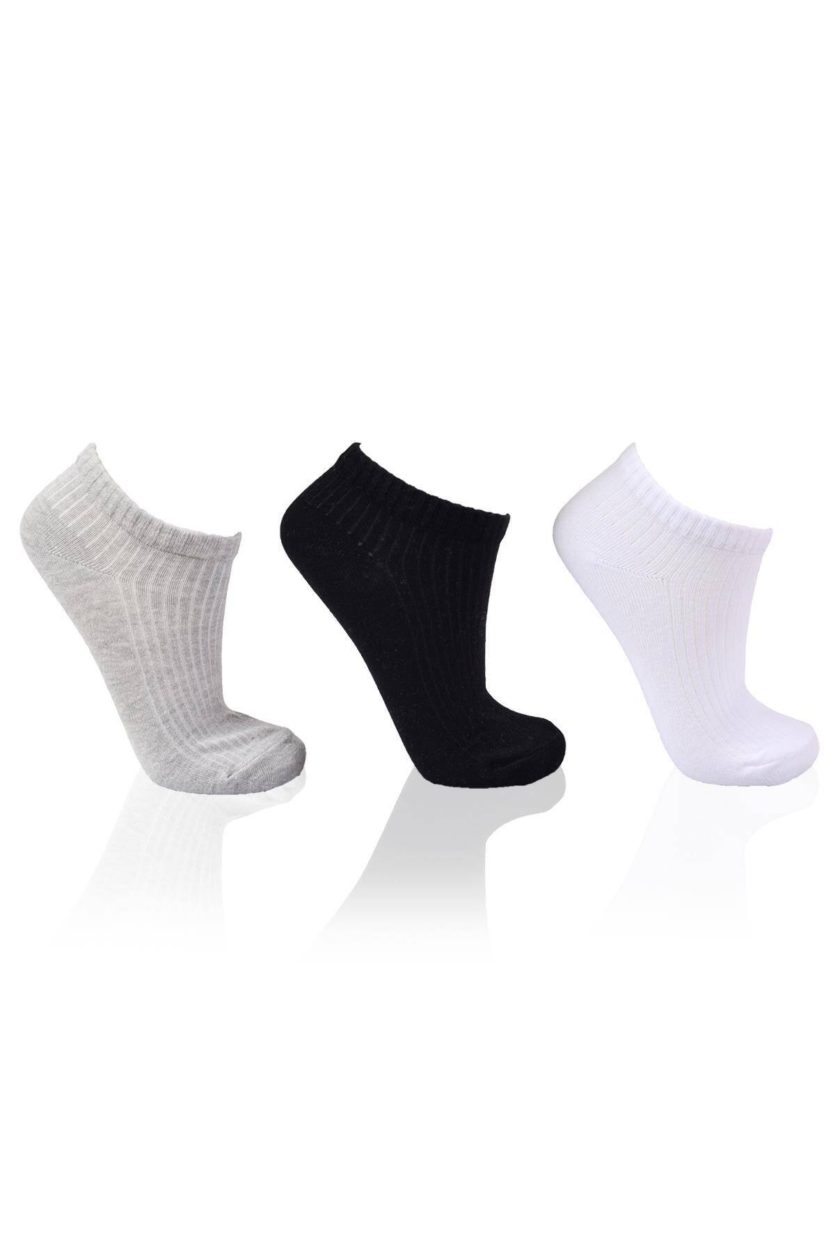 1106 3'lü Derbili Bayan Patik Çorap Beyaz-Gri-Siyah