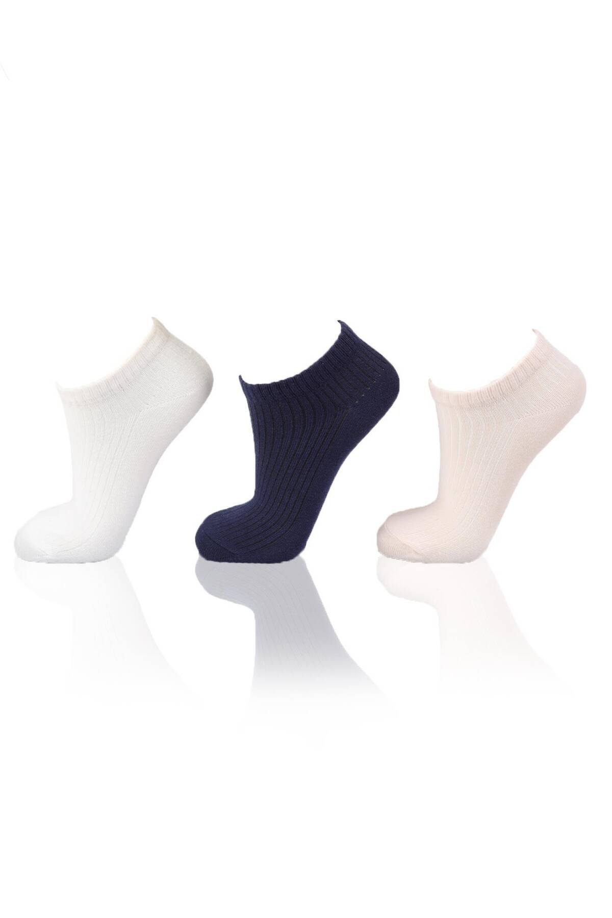 1106 3'lü Derbili Bayan Patik Çorap Laci-Ekru-Vizon
