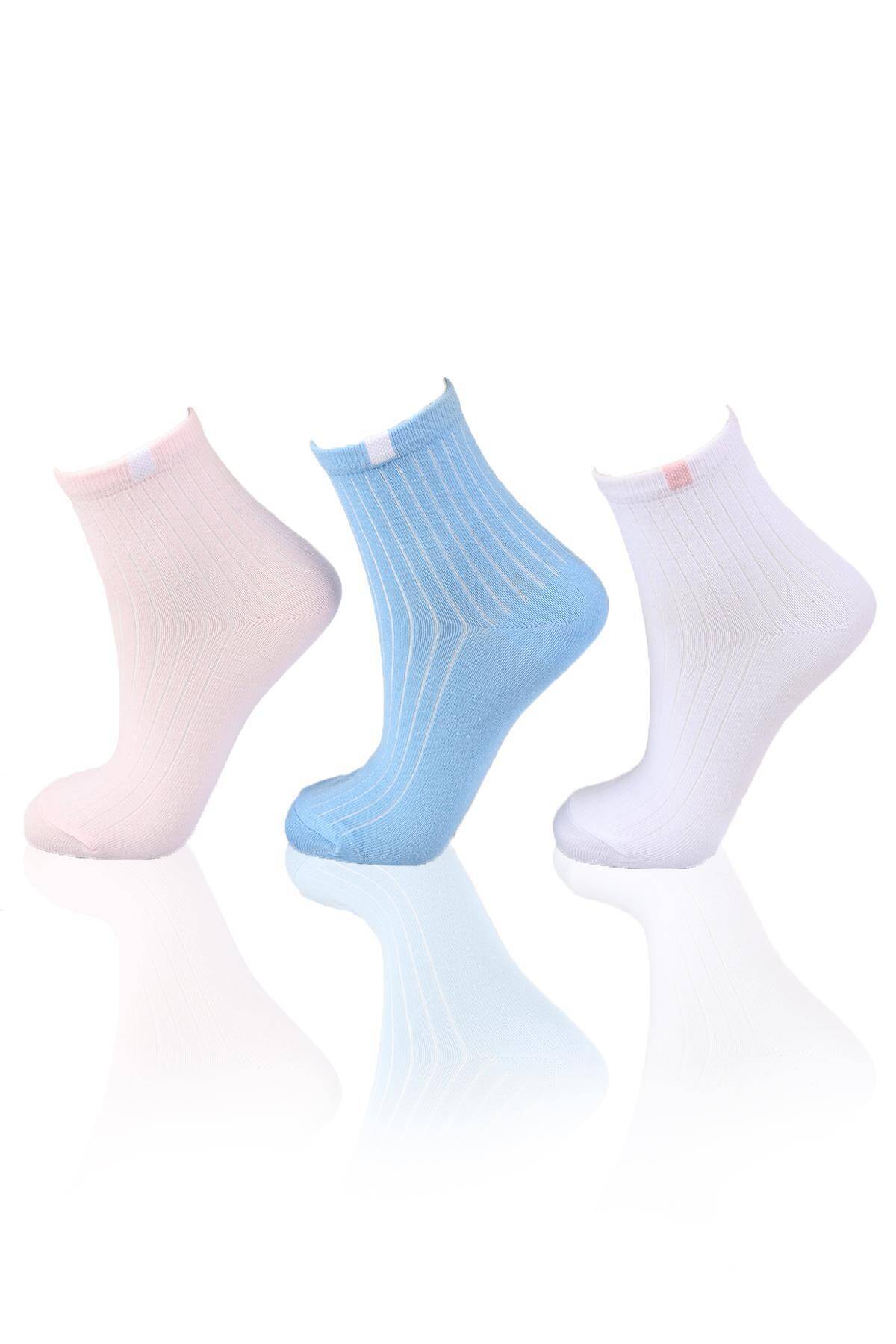 1107 Yarım Konç 3'lü Çorap Mavi-Pembe-Beyaz