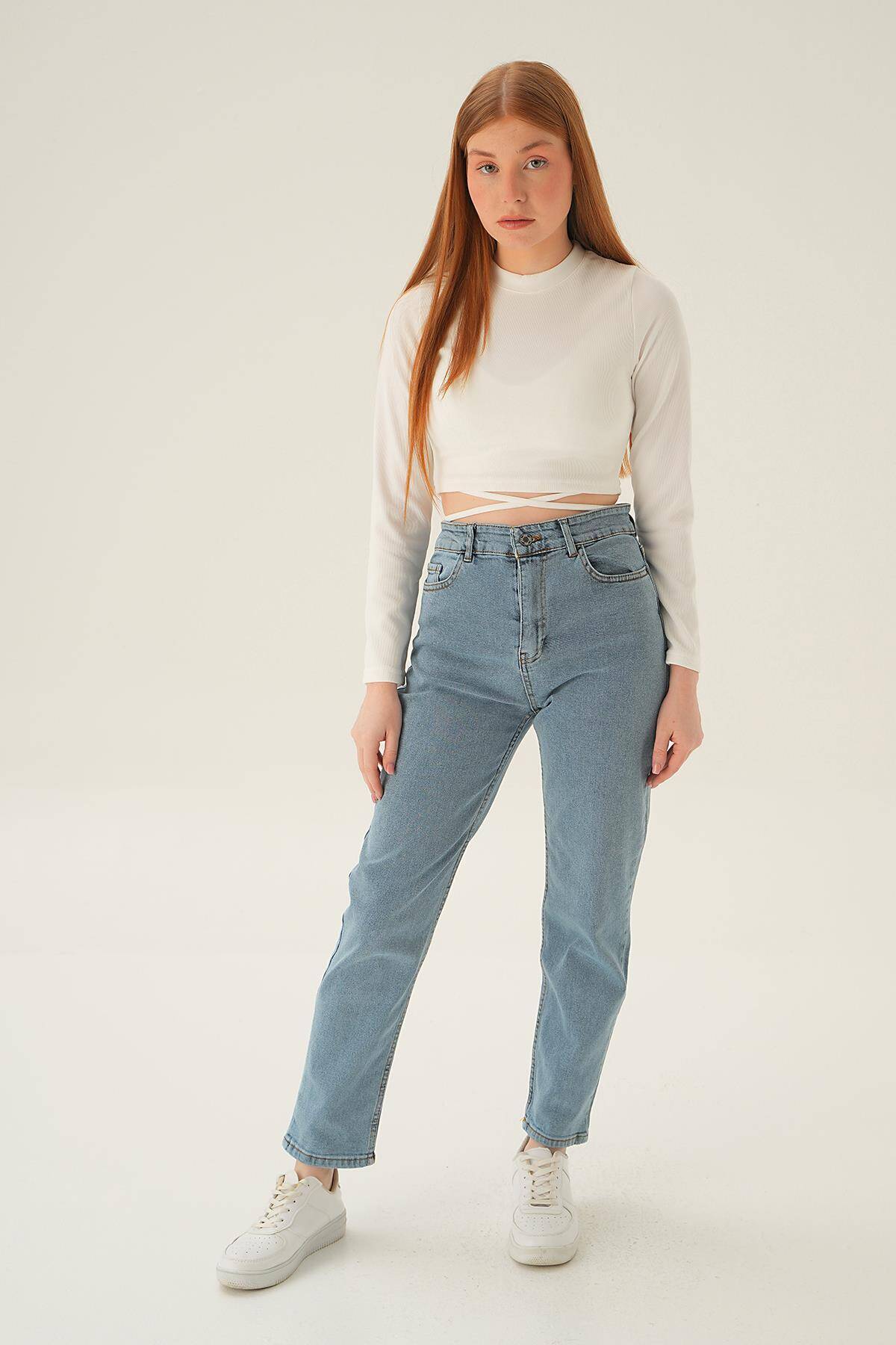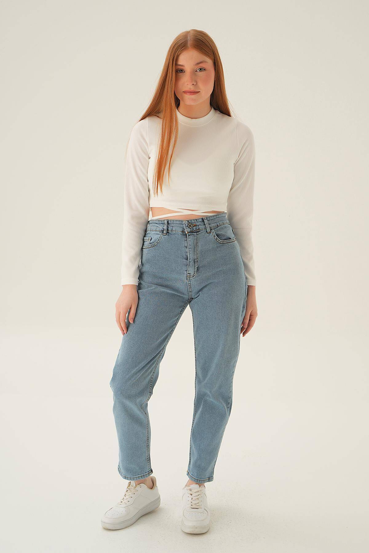 11121 Yüksek Bel Mom Jean Buz