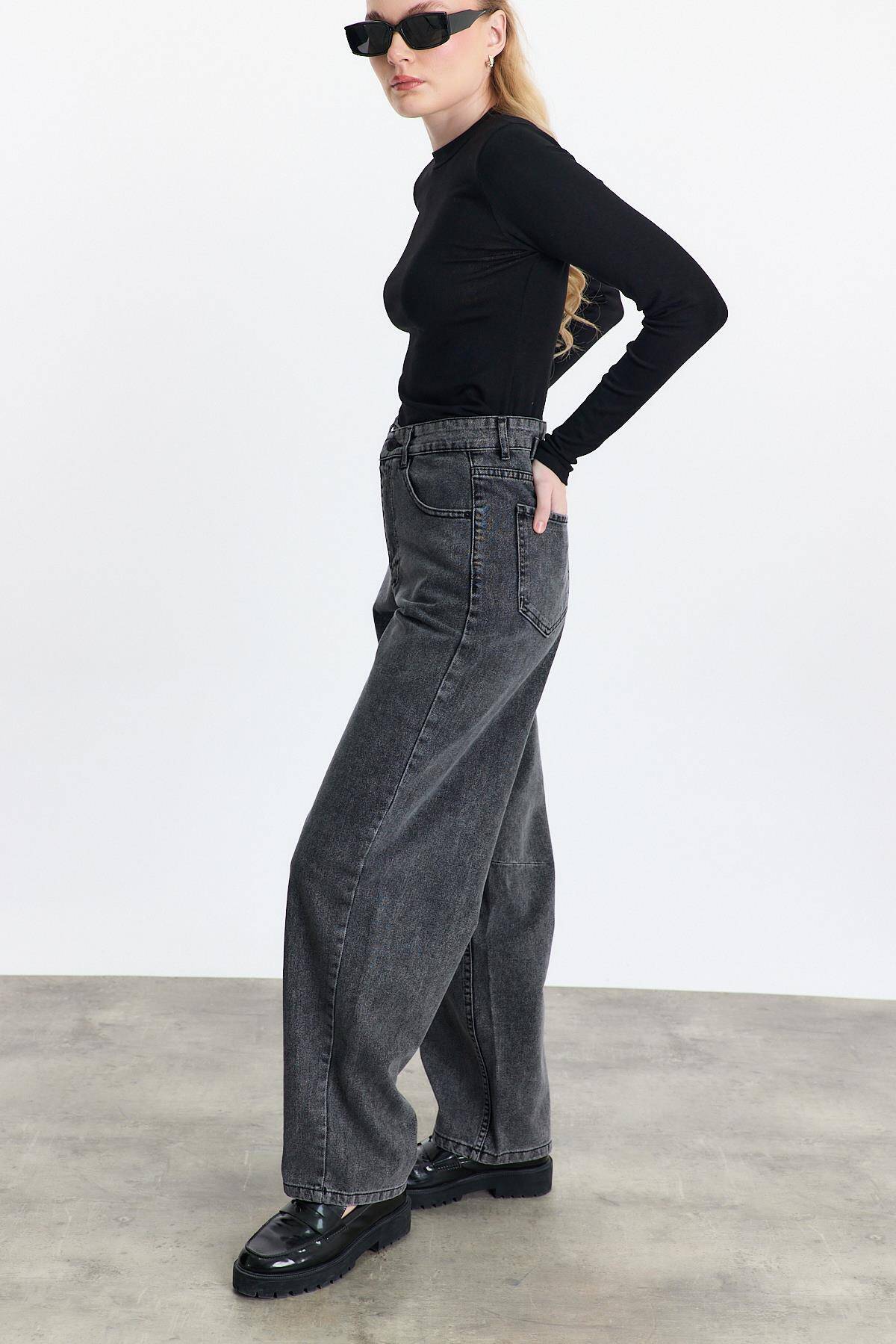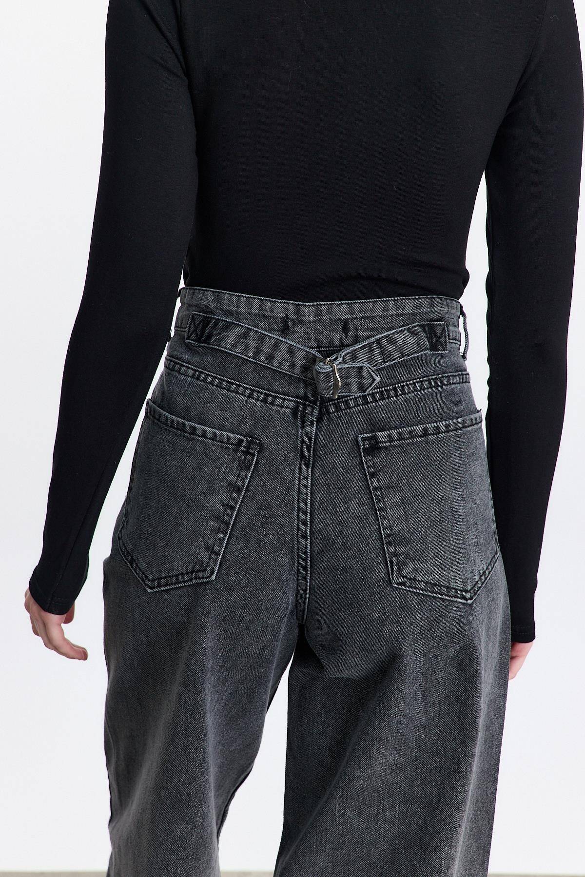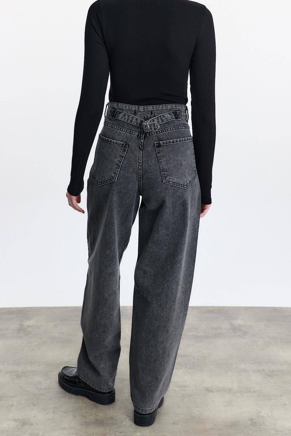 7149A Belden Bağlamalı Uzun Kaşe Kaban Gri