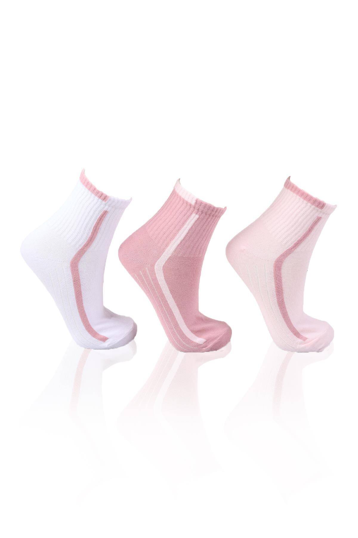 1118 3'lü Yarım Konç Çorap Gül-Pembe-Beyaz