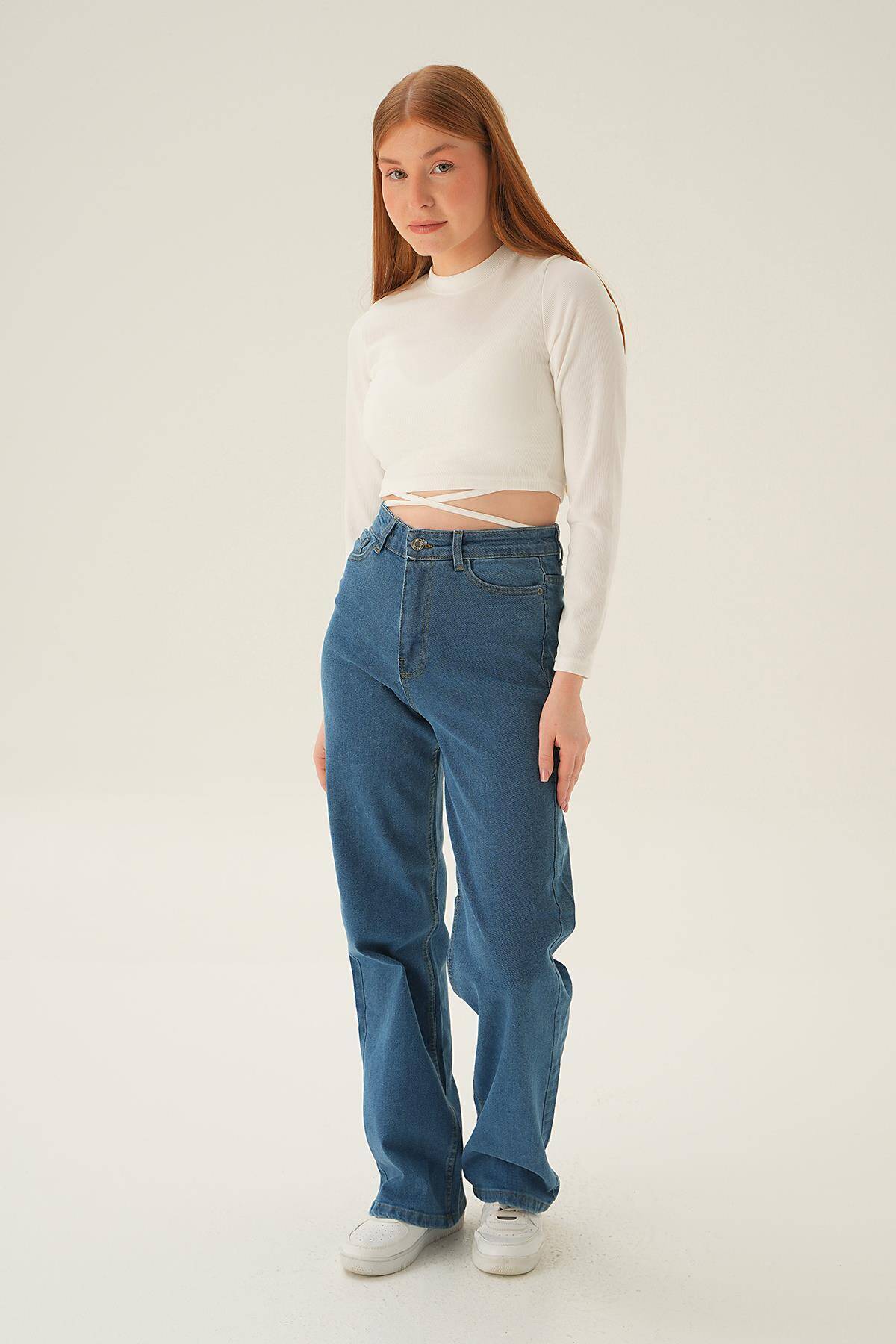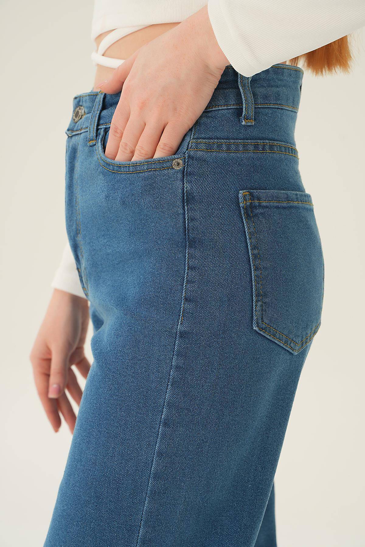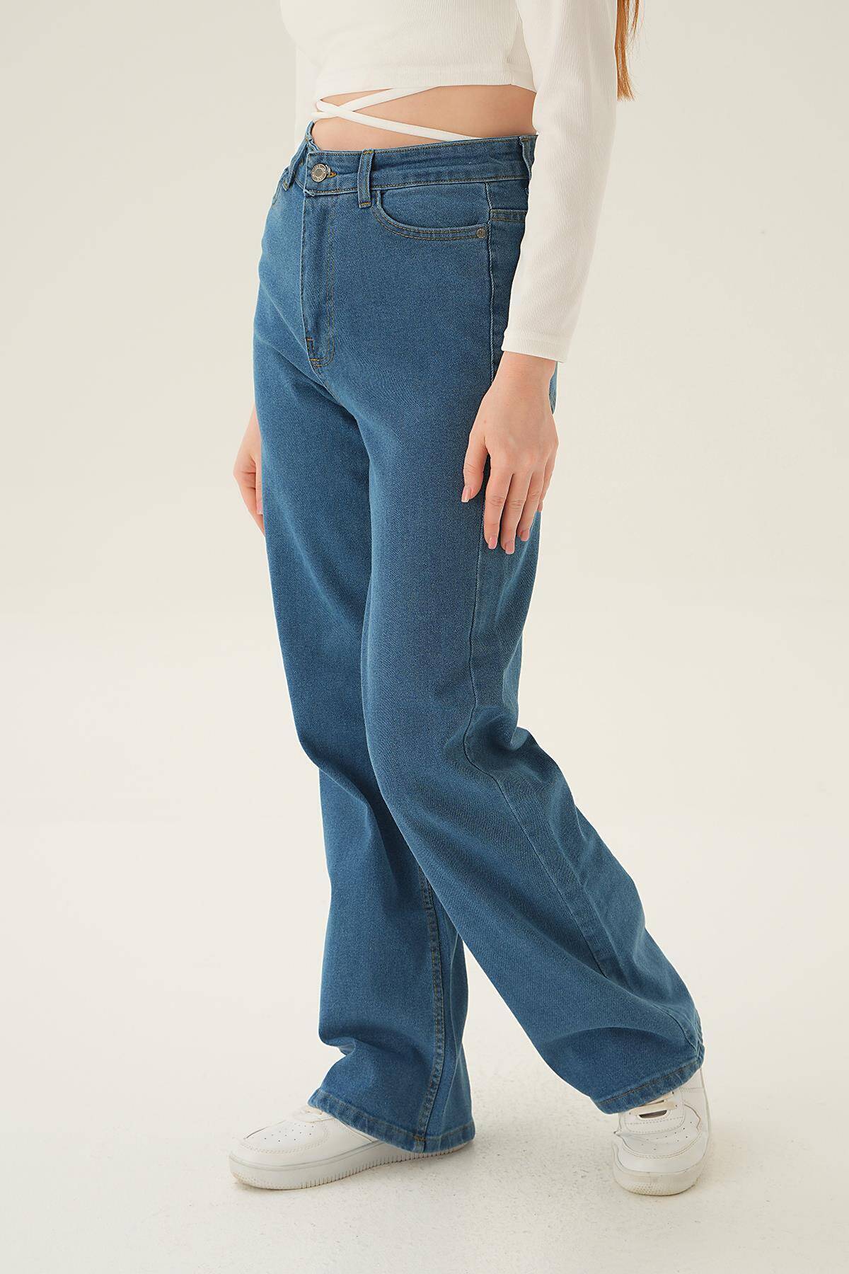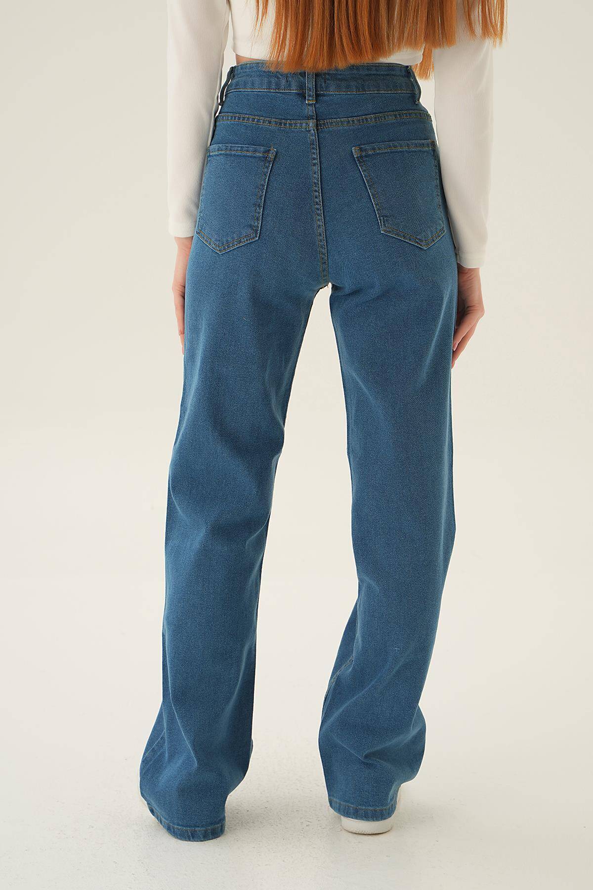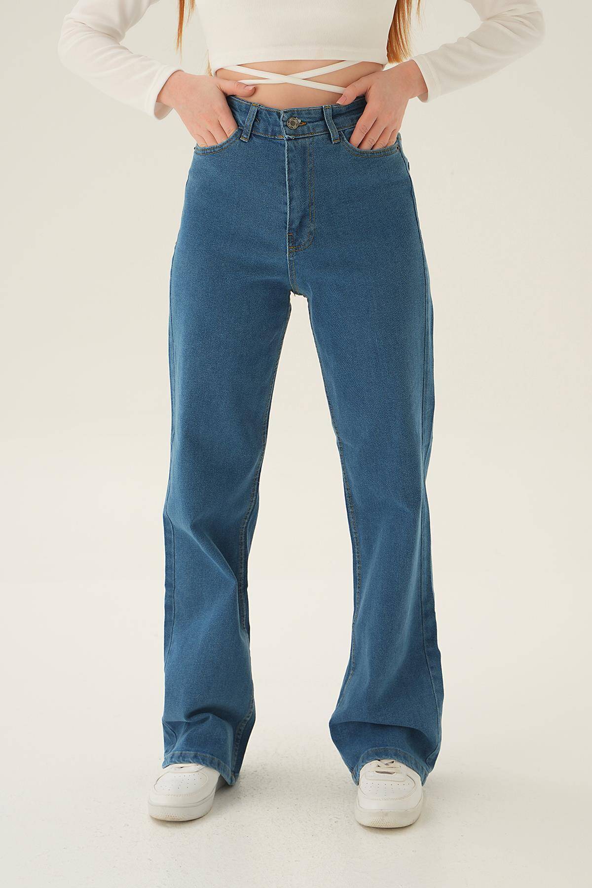 11201 Yüksek Bel Bol Paça Jean Mavi