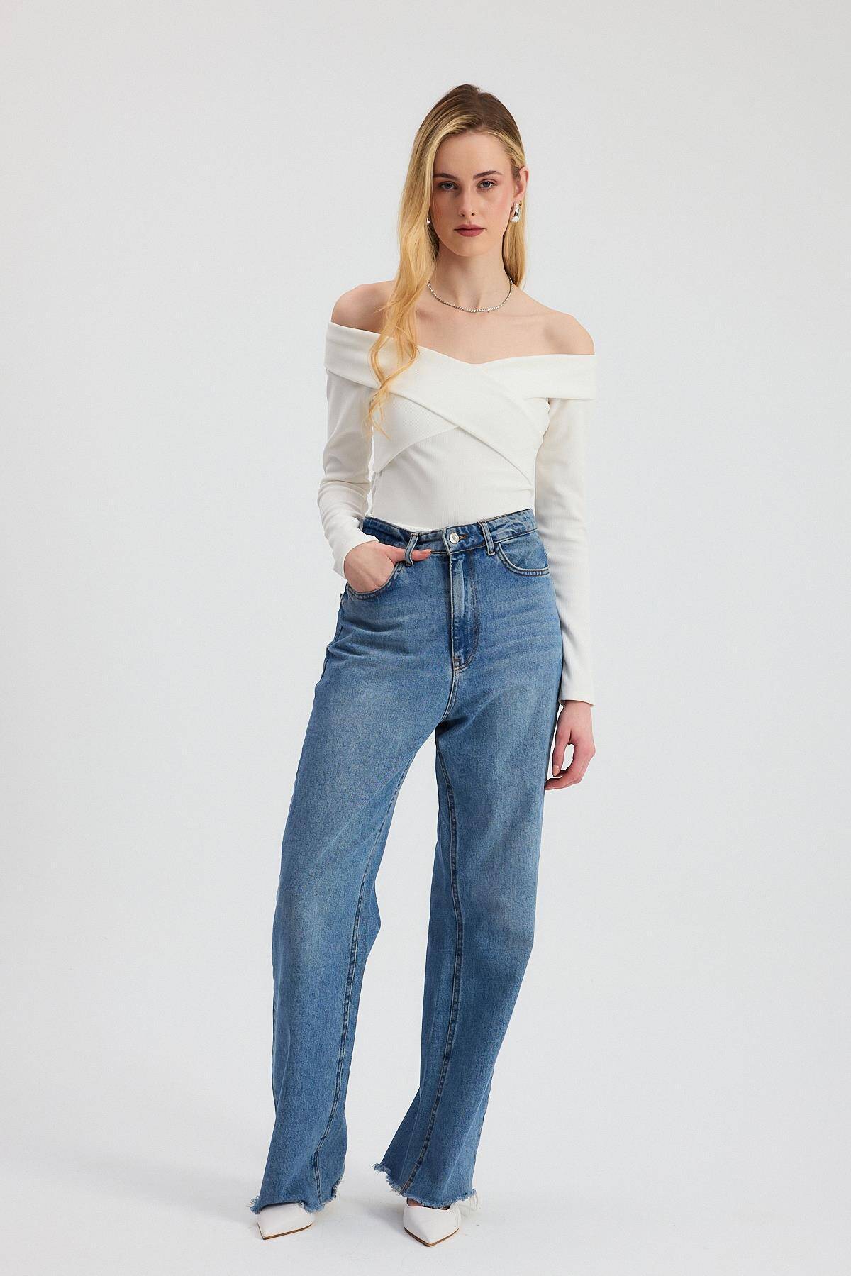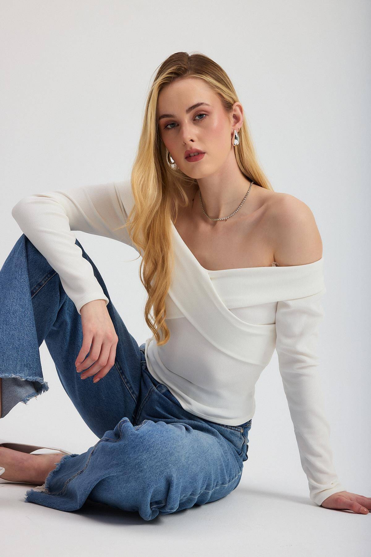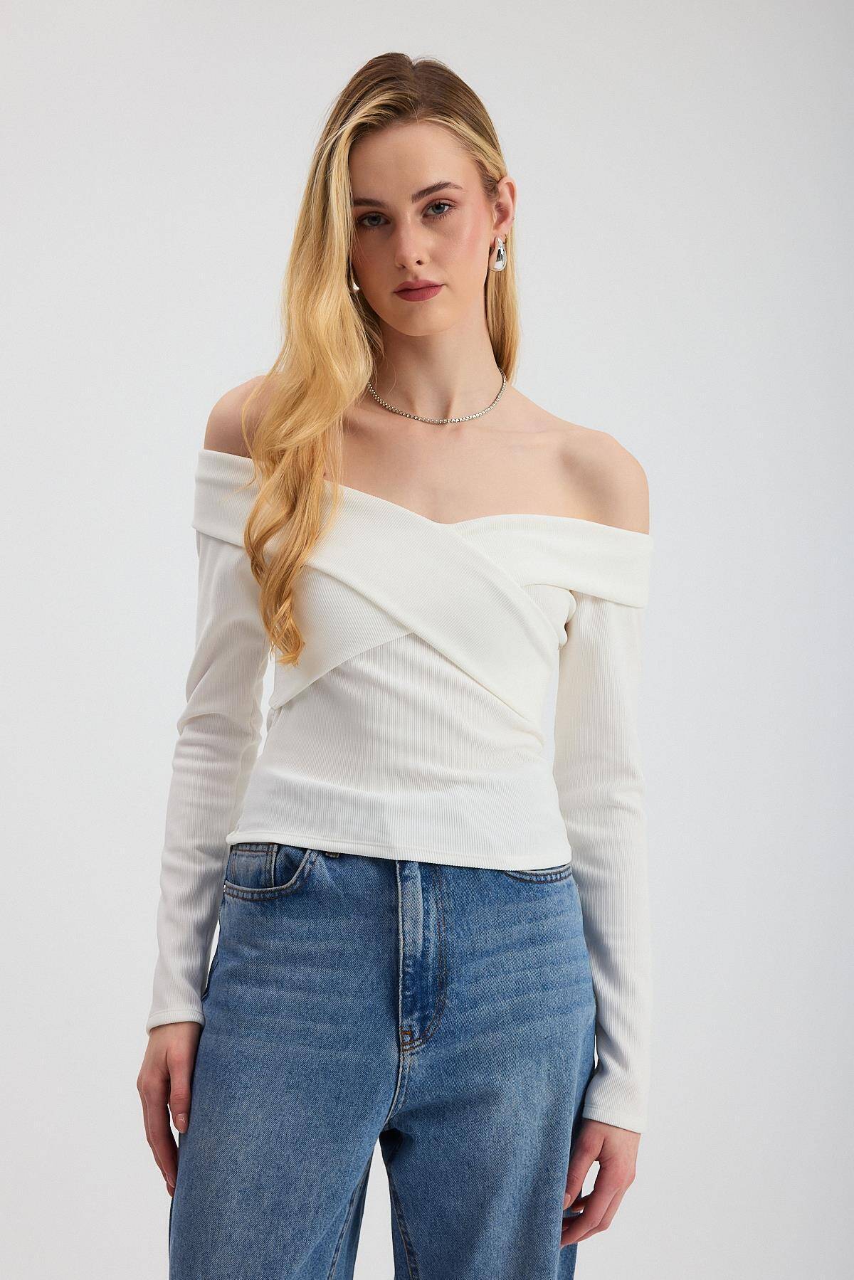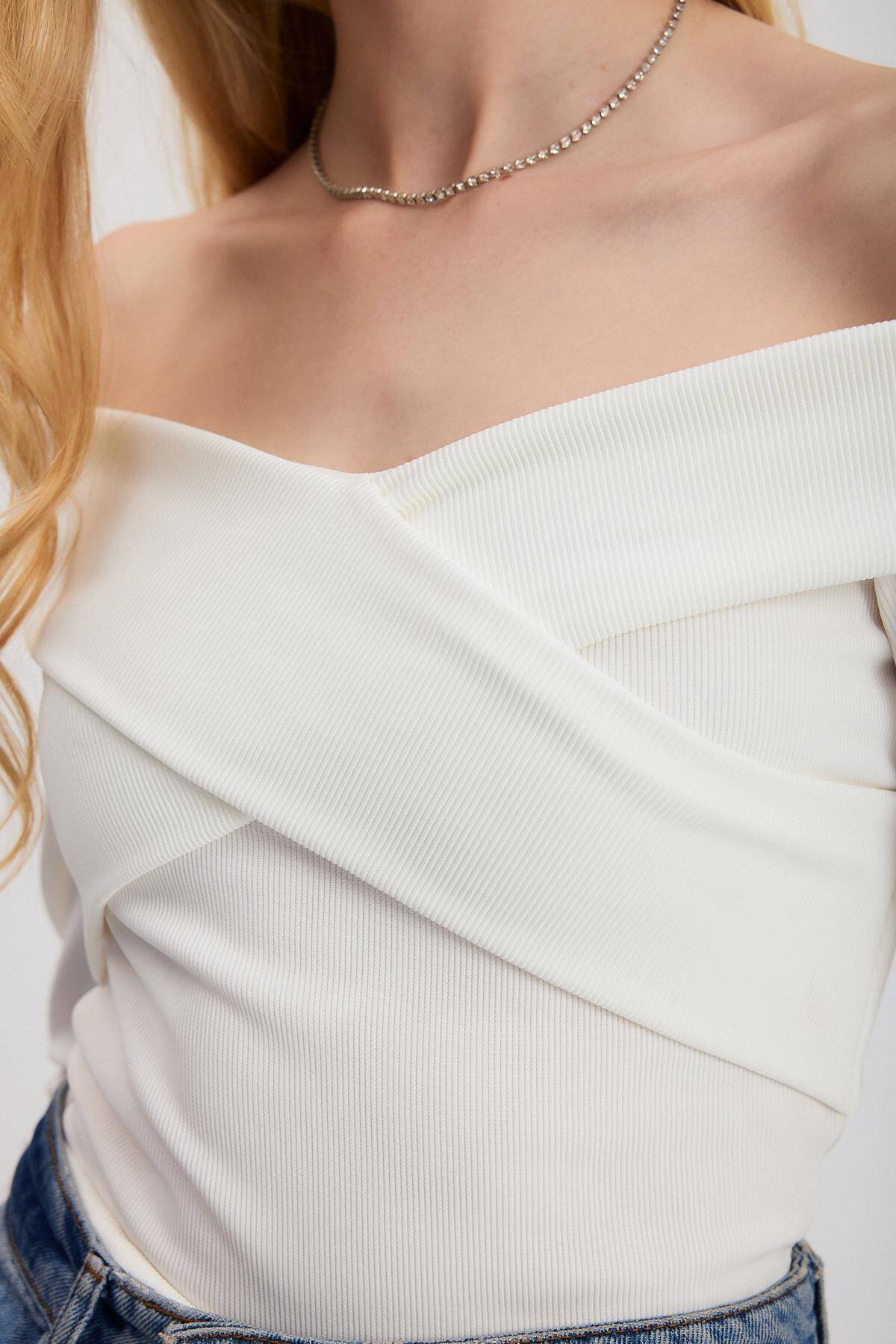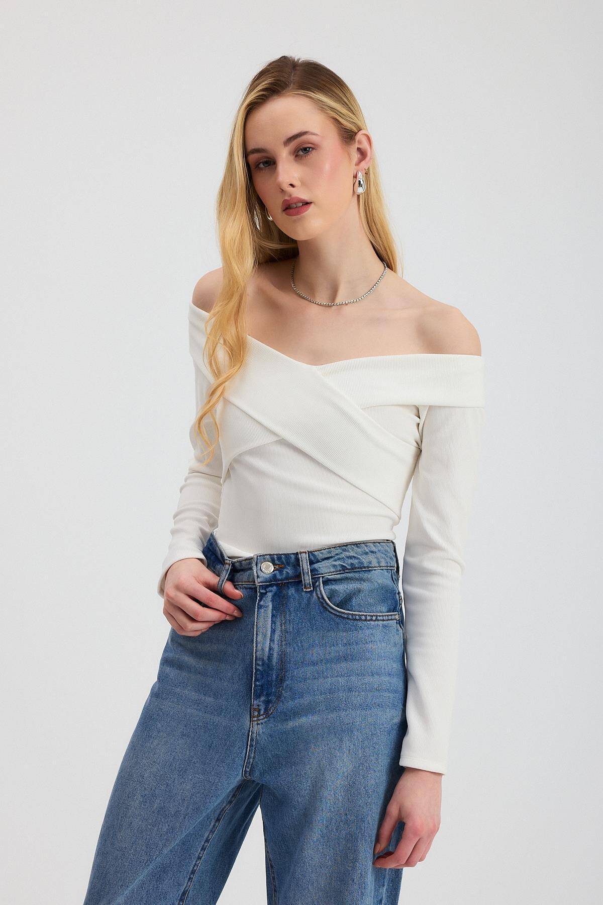 12748 Çapraz Madonna Yaka Bluz Ekru
