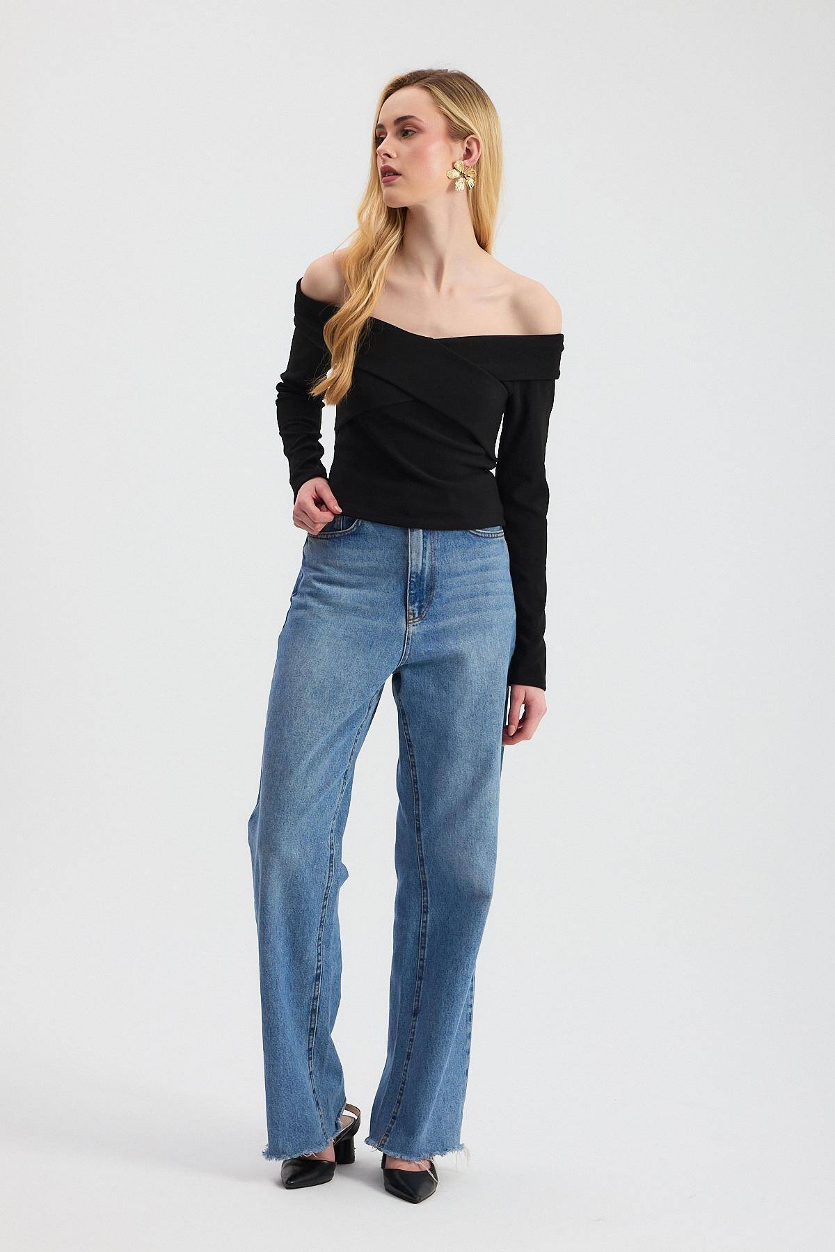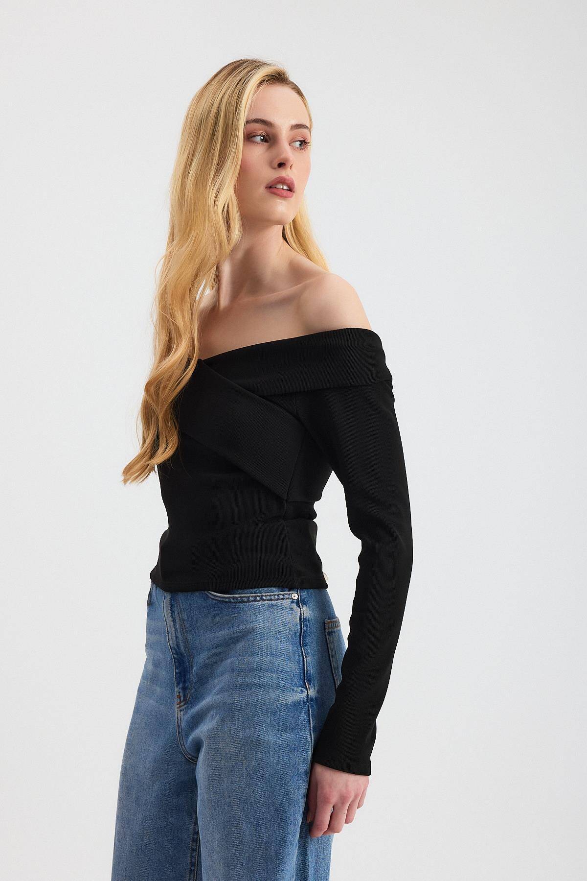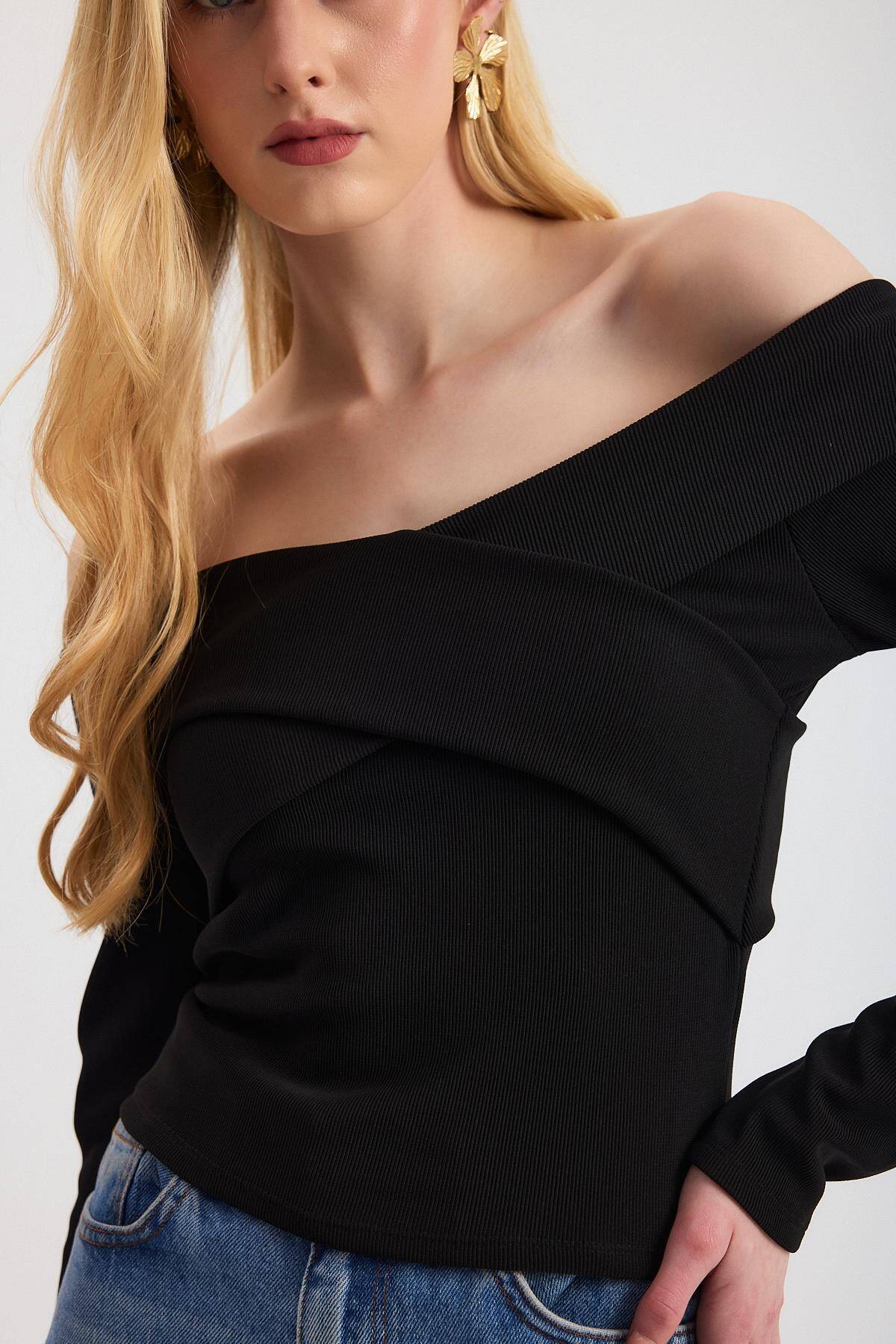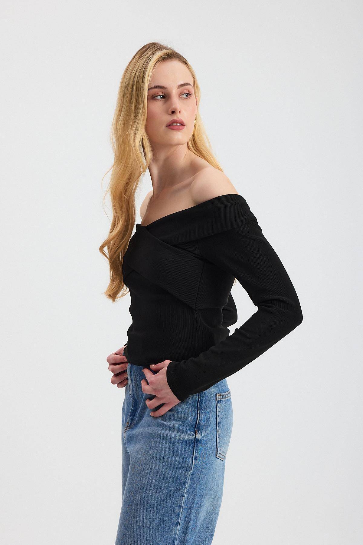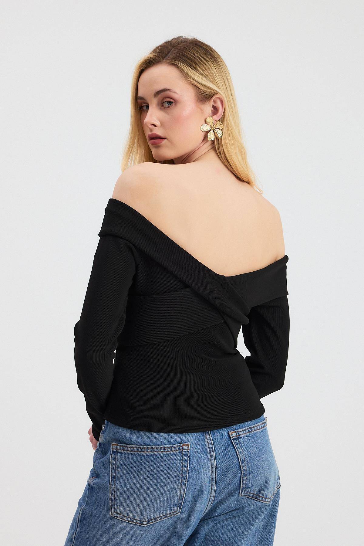 12748 Çapraz Madonna Yaka Bluz Siyah