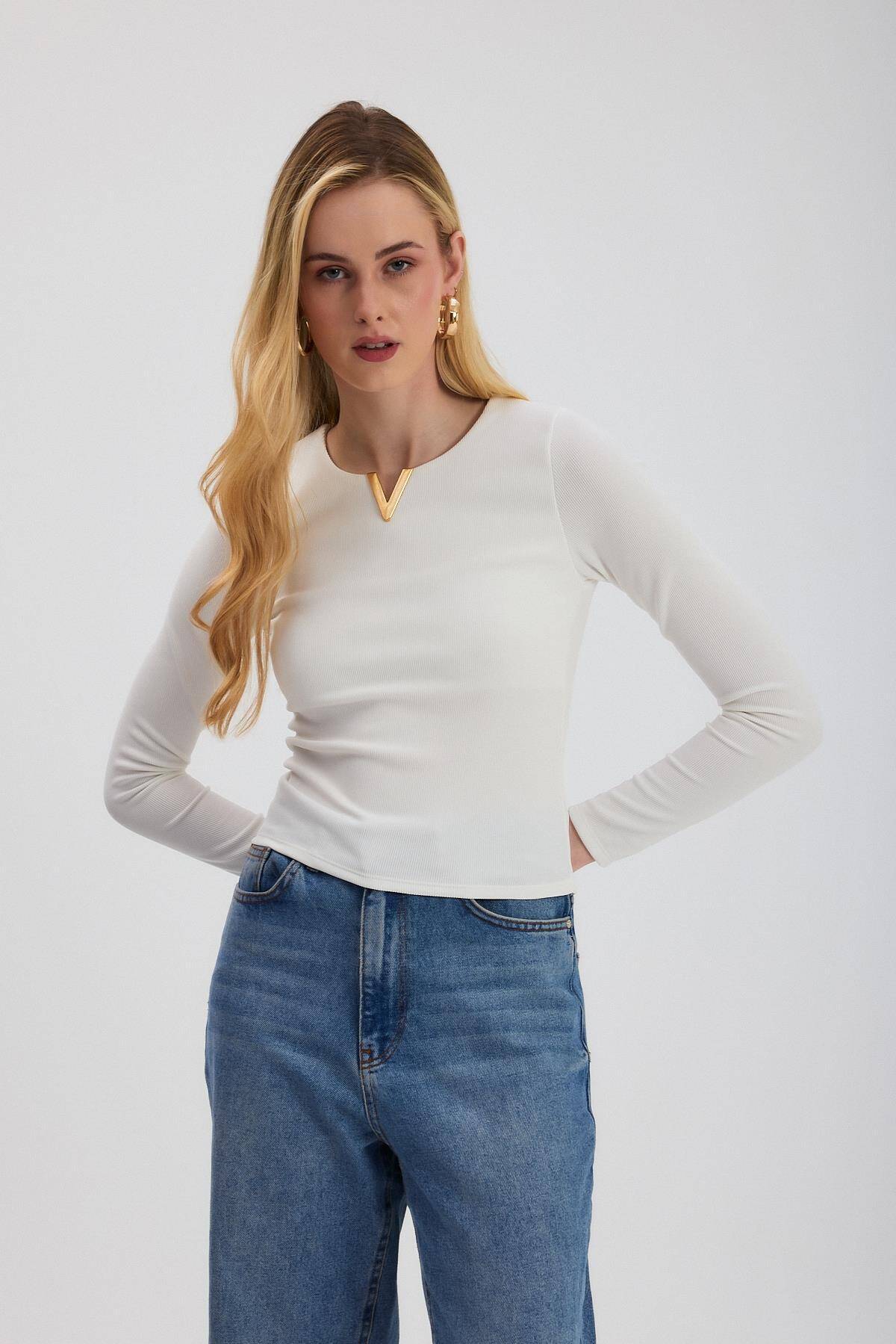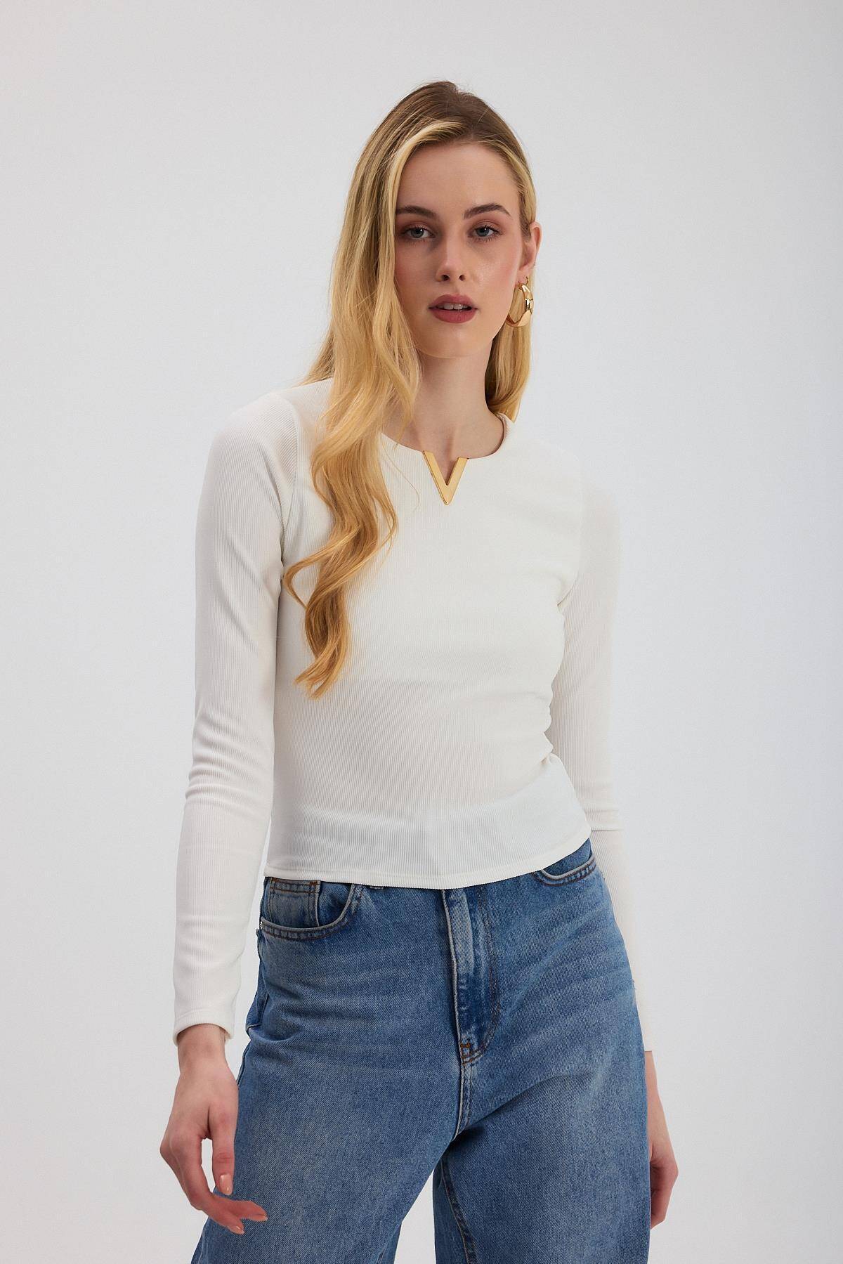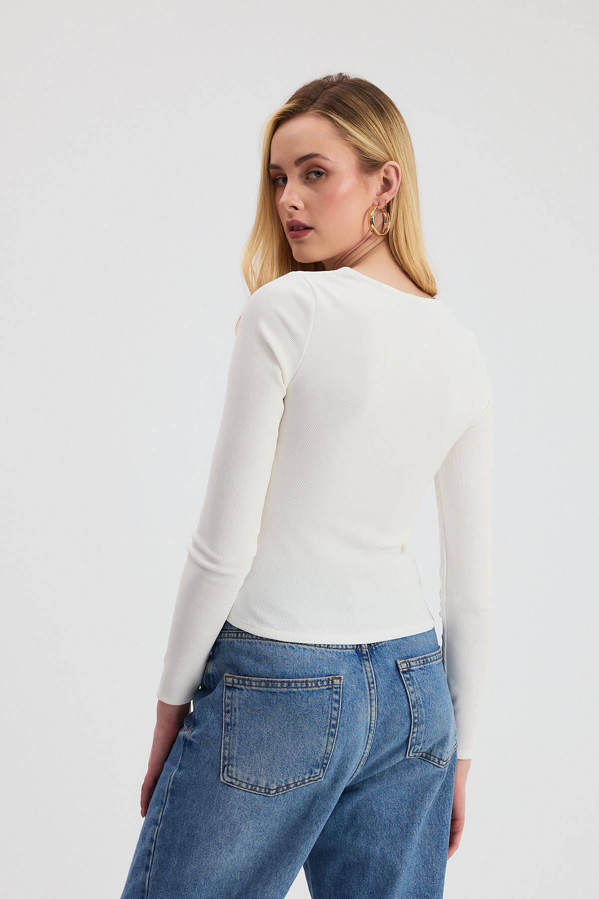 Beyaz Deri Kemer Detaylı Etnik Desenli Kimono 4363A