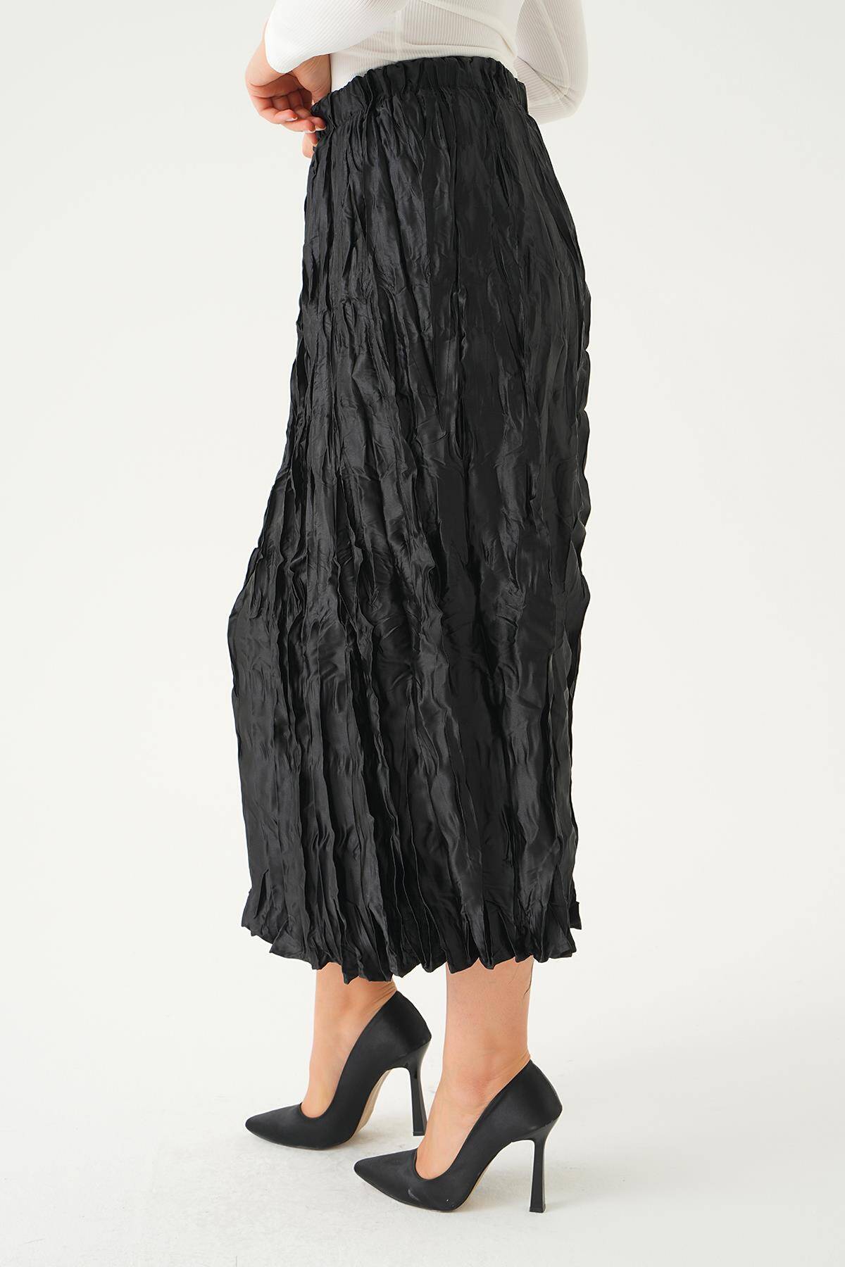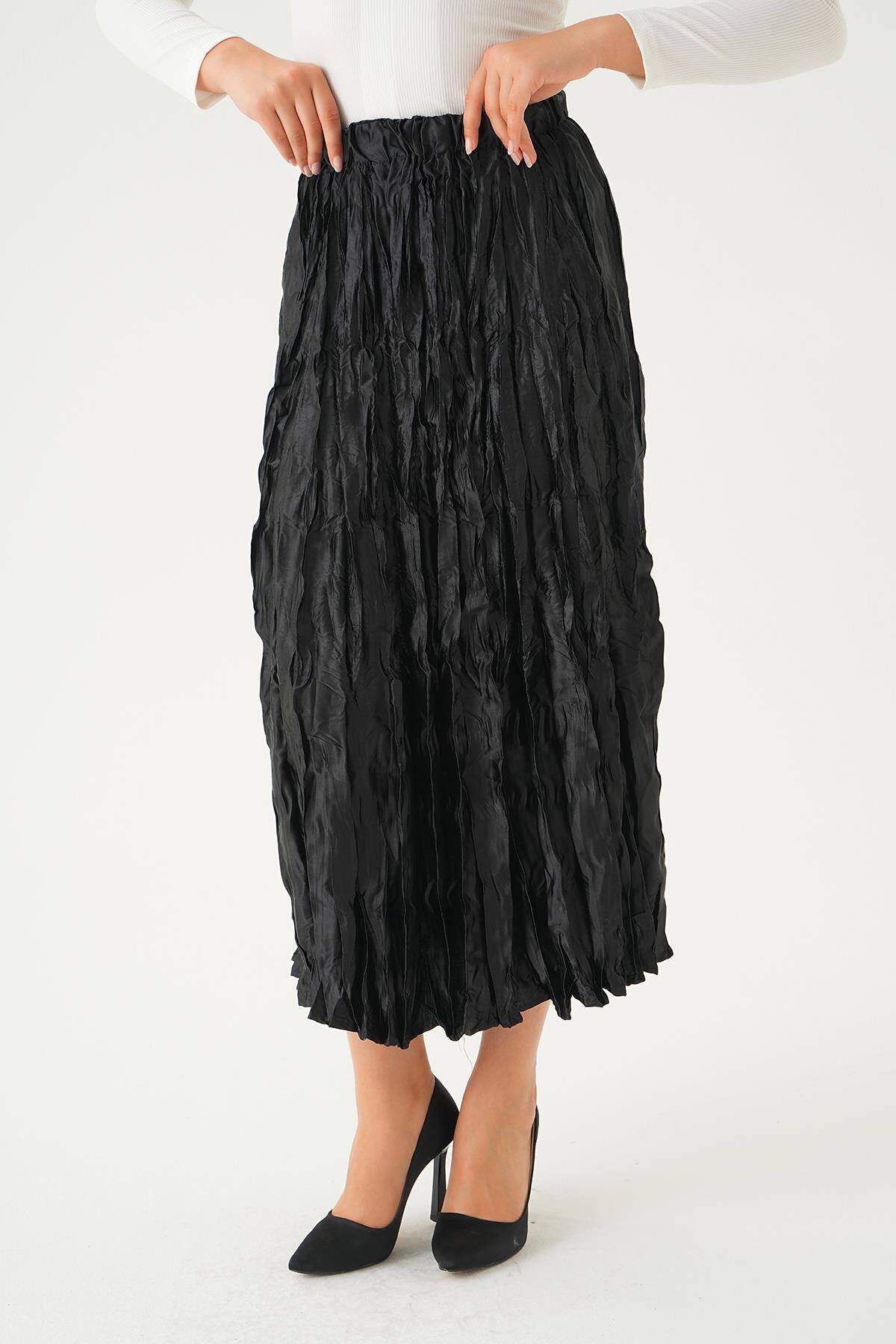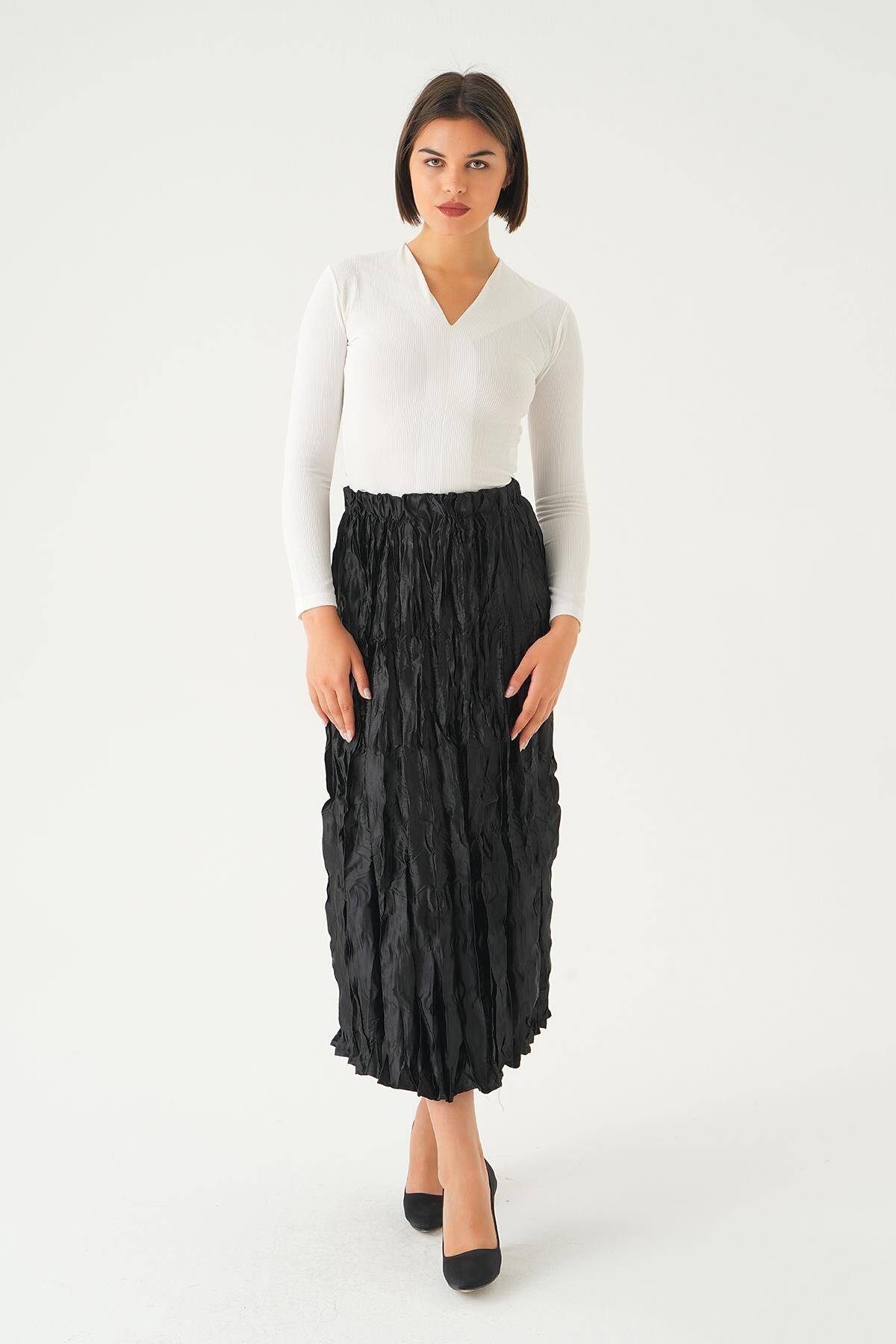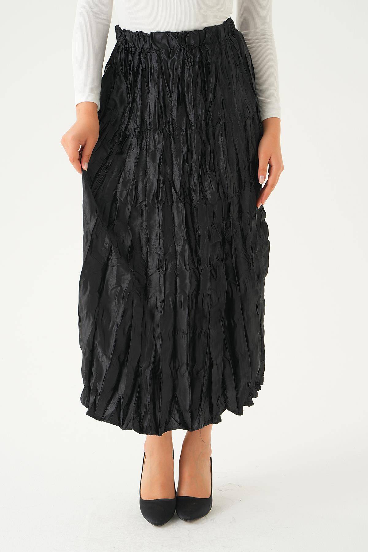 7149A Belden Bağlamalı Uzun Kaşe Kaban Siyah
