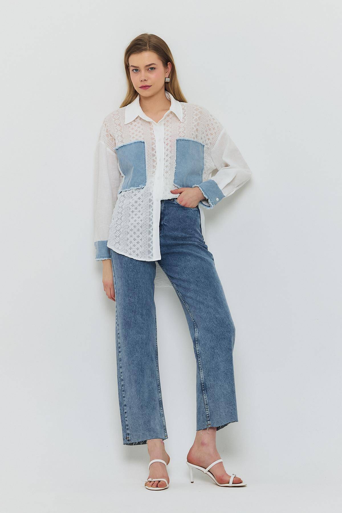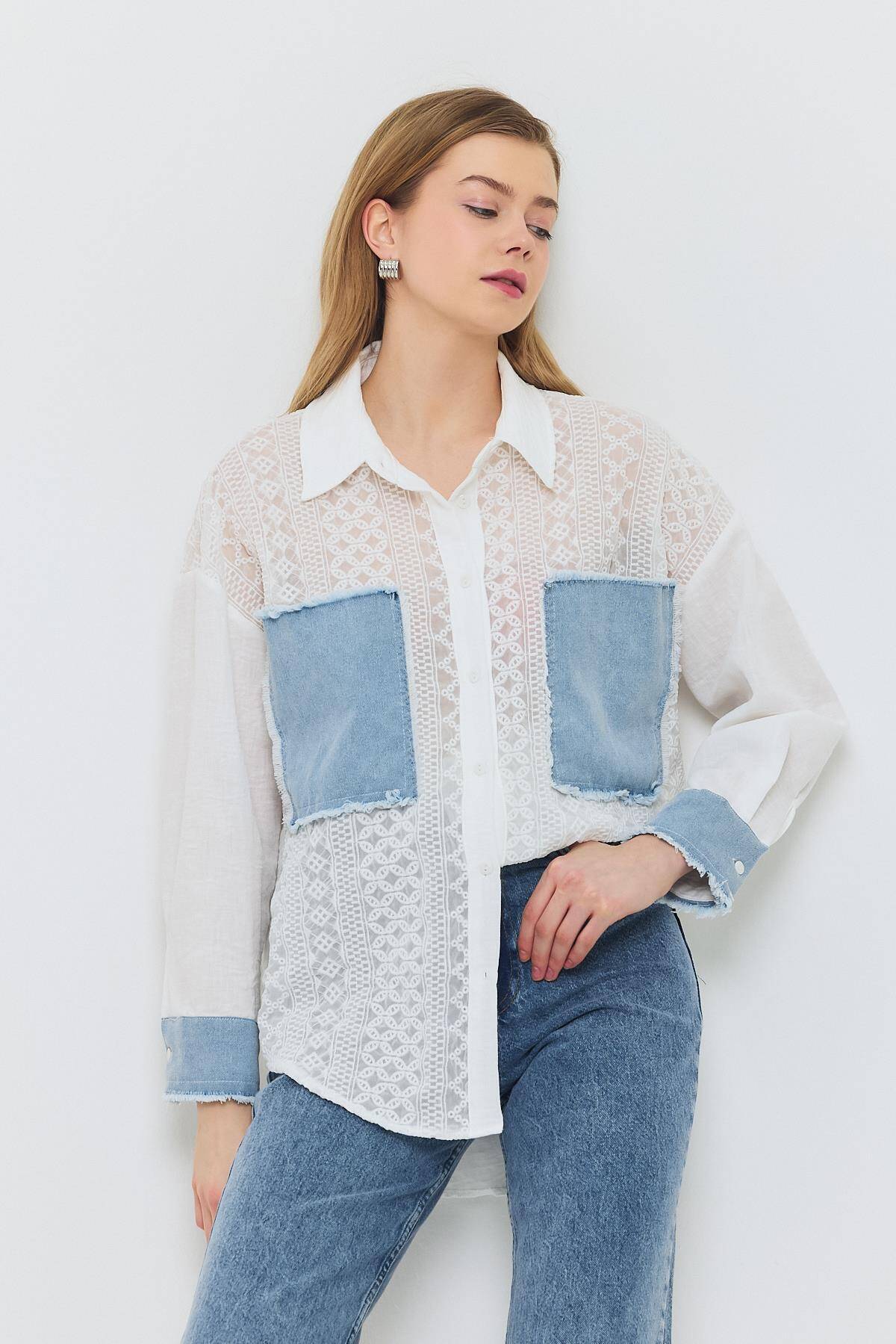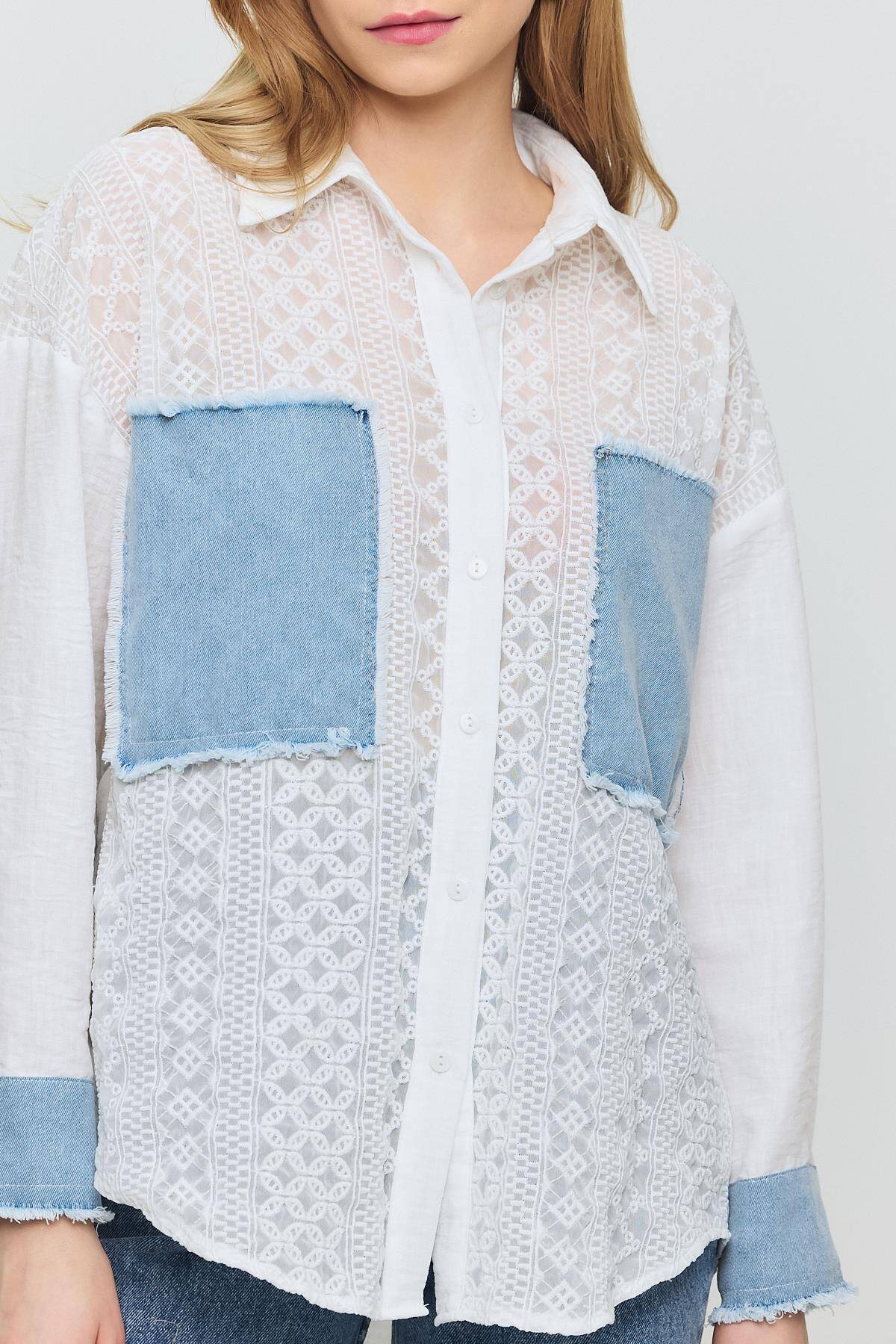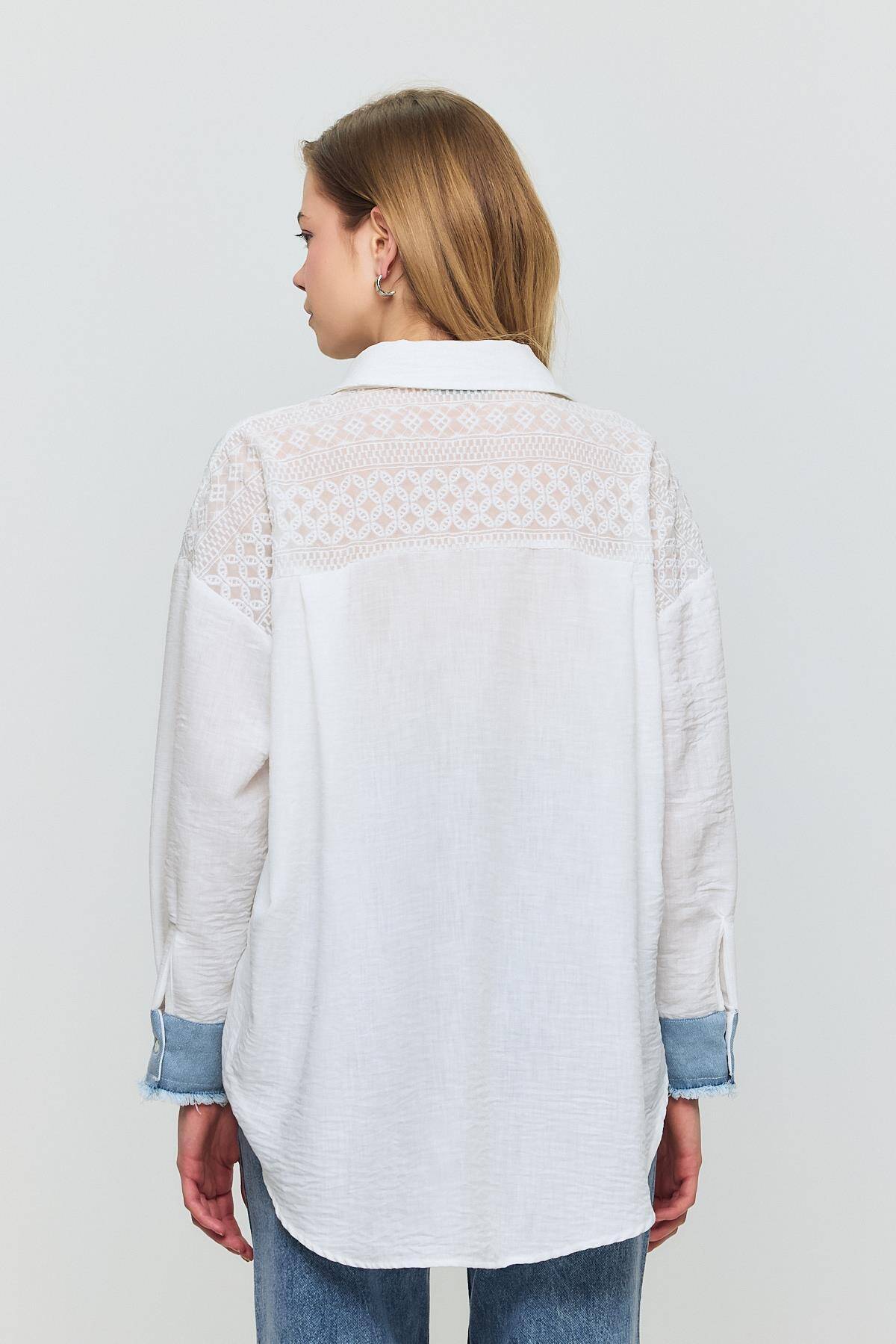 1413 Kot Garnili Dantelli Gömlek Ekru