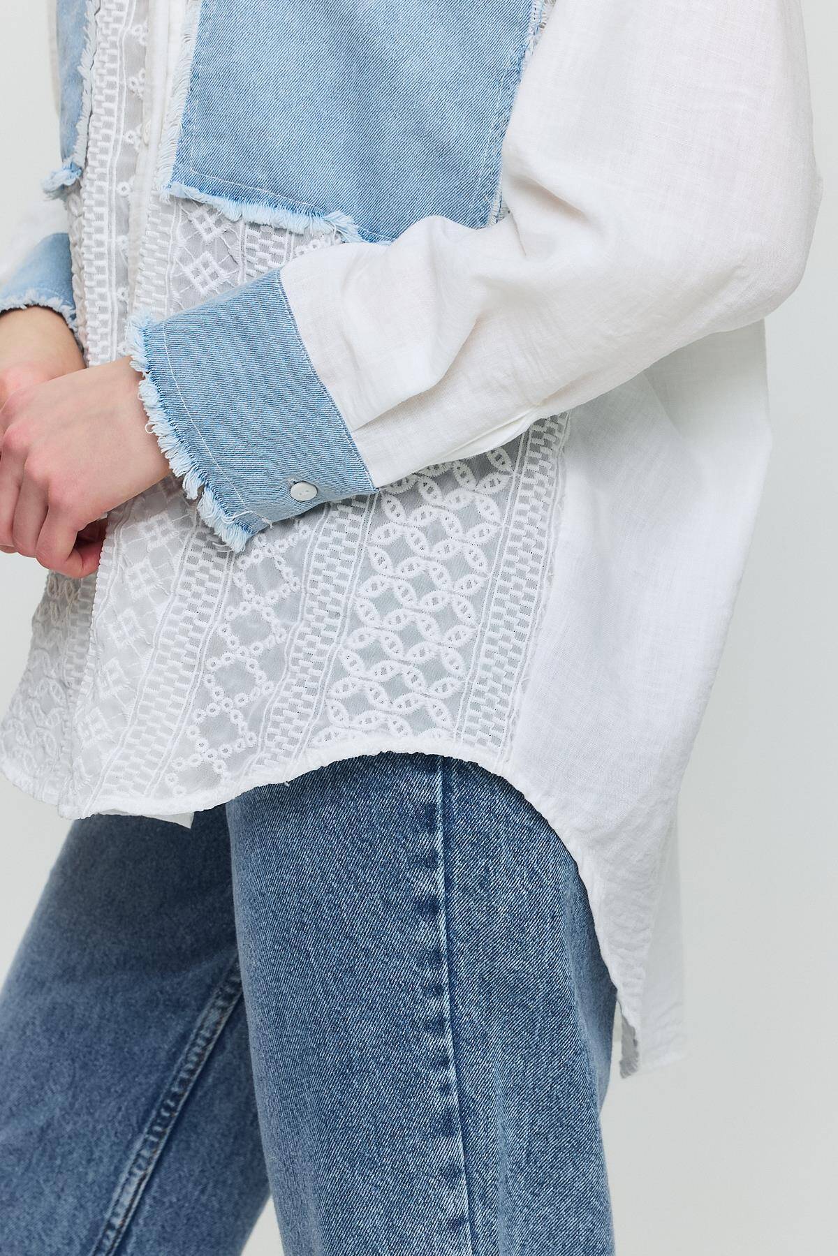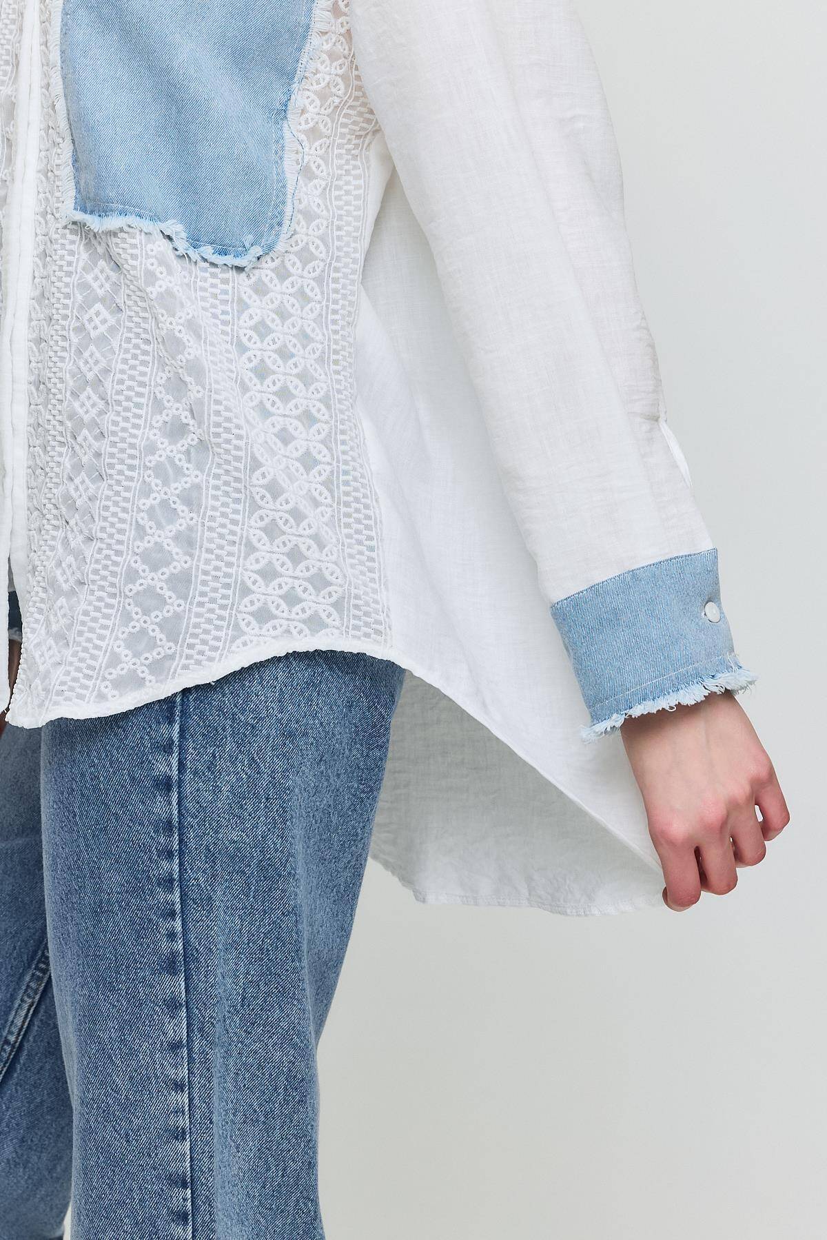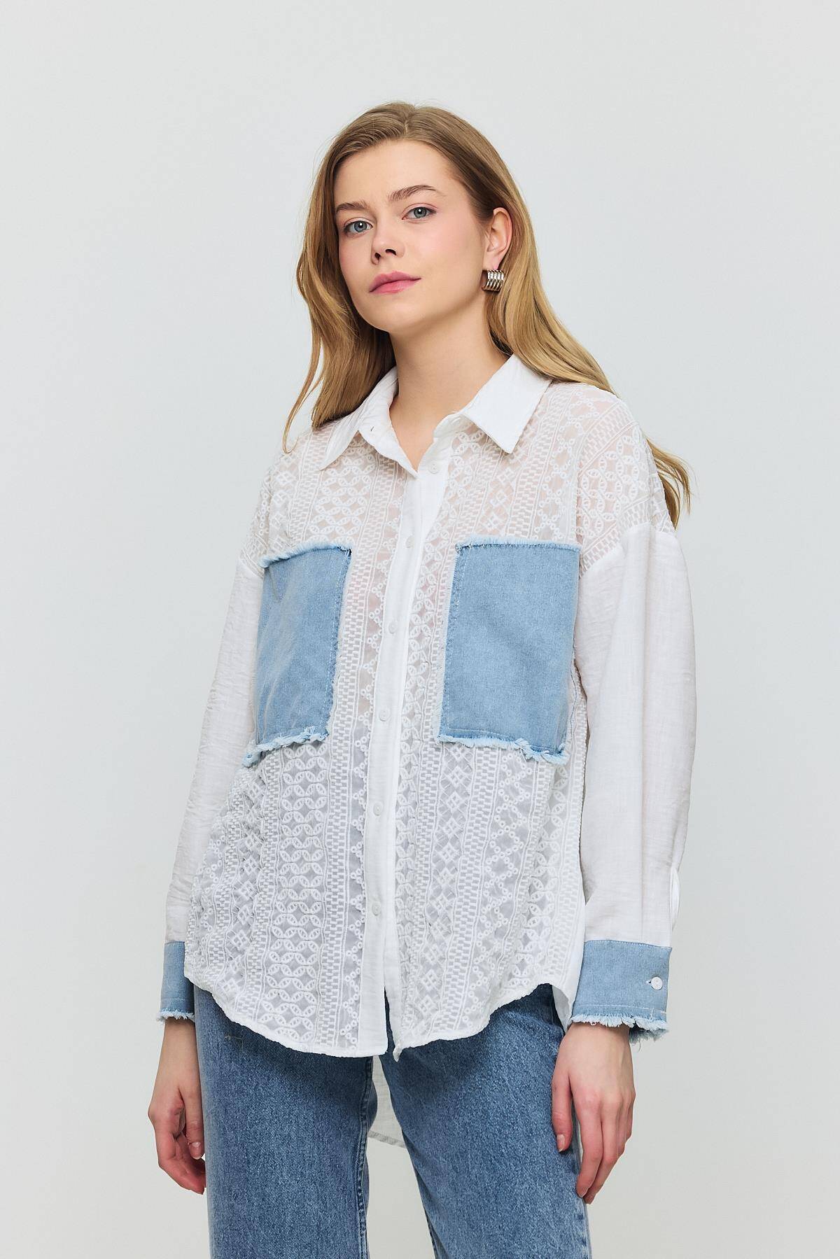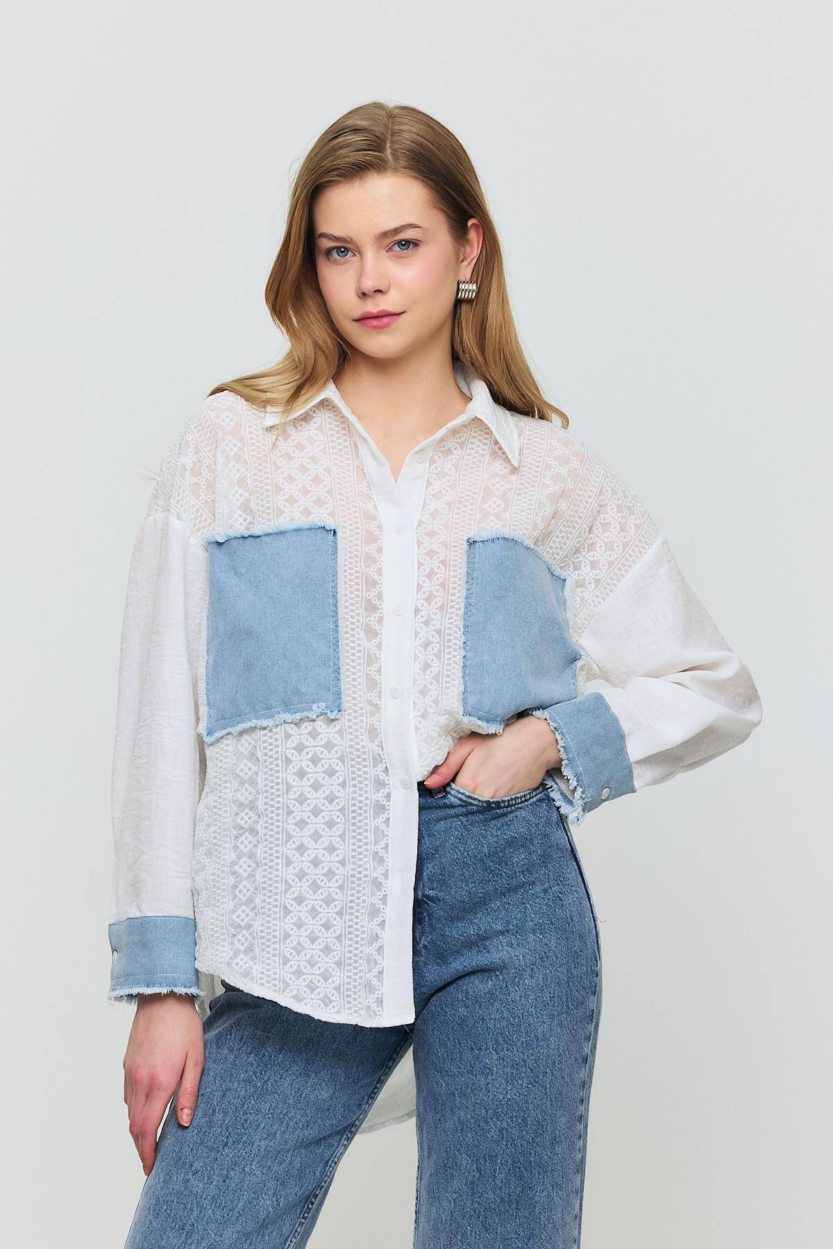 1413 Kot Garnili Dantelli Gömlek Ekru