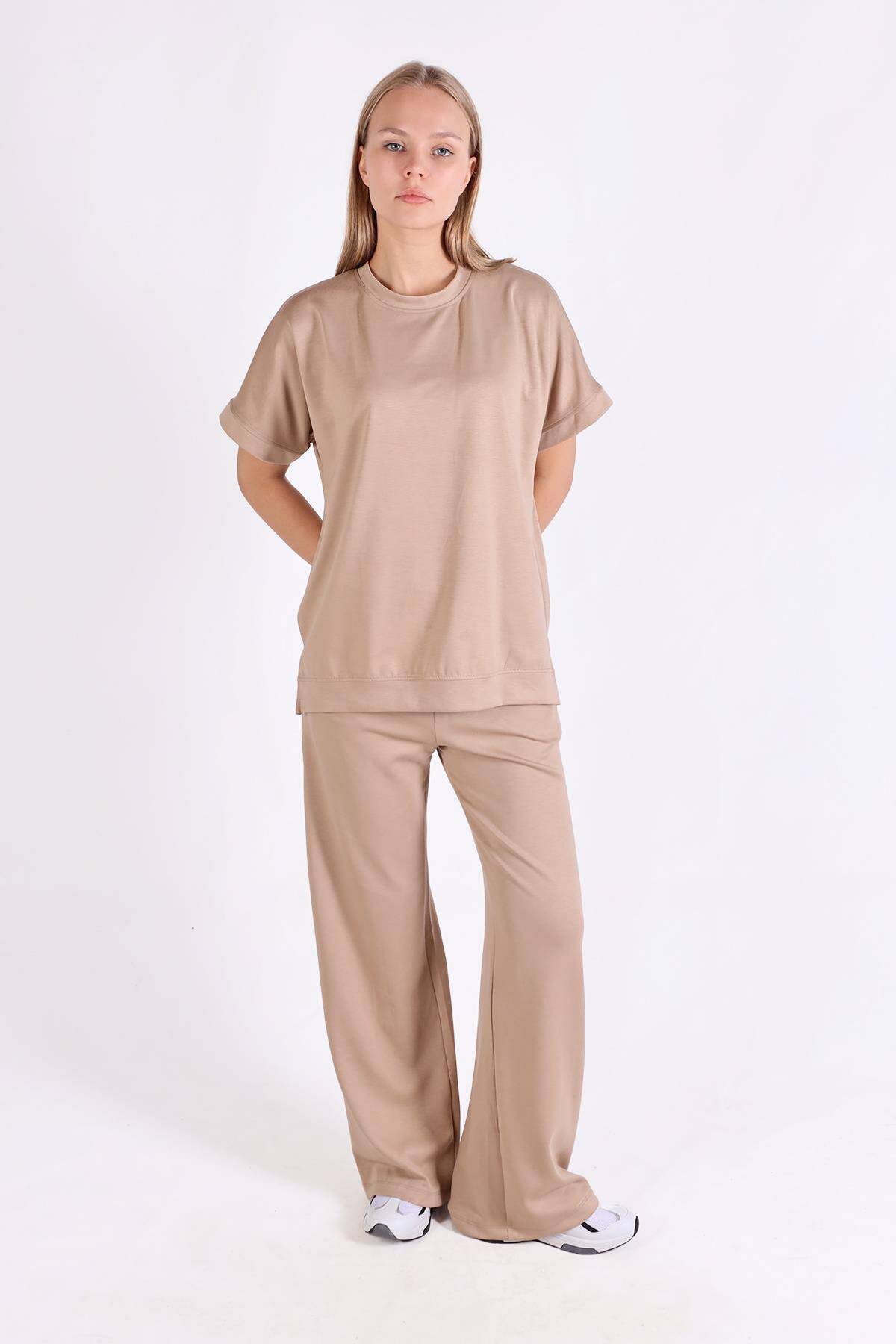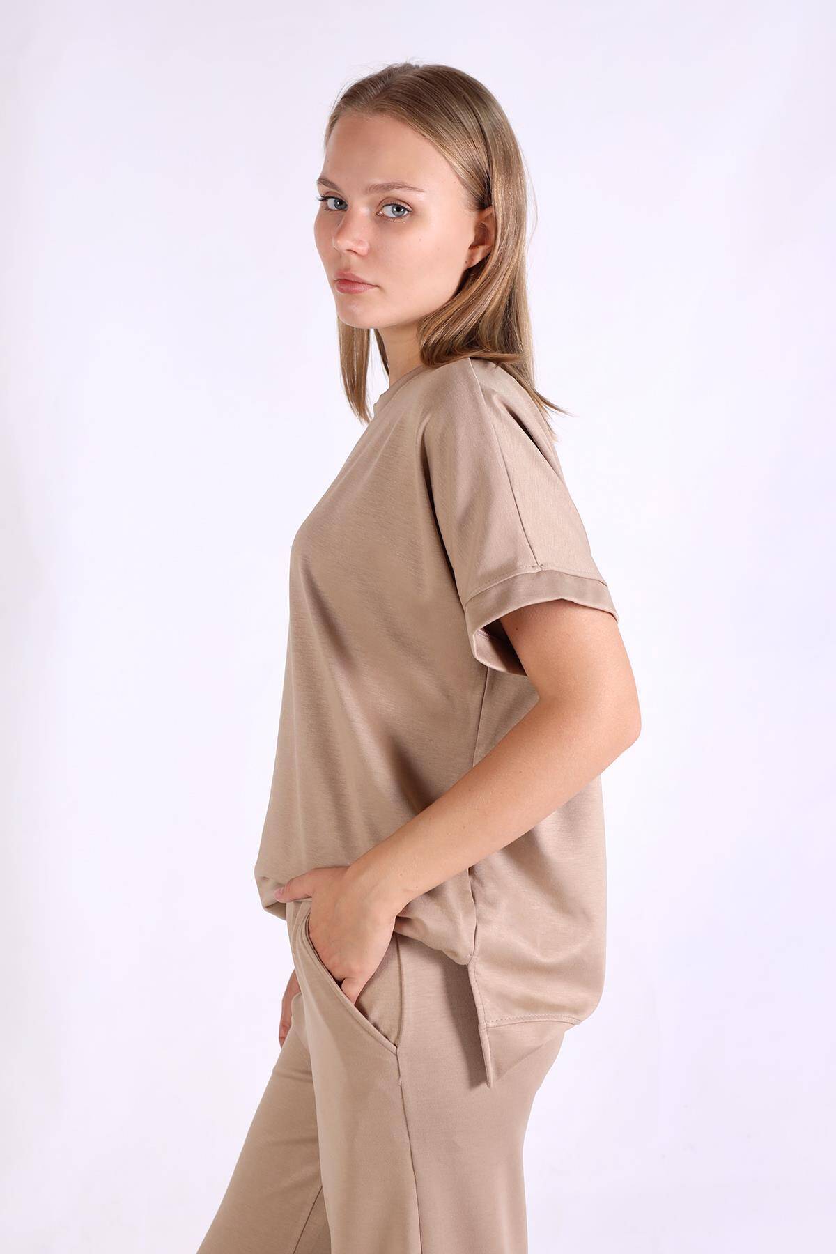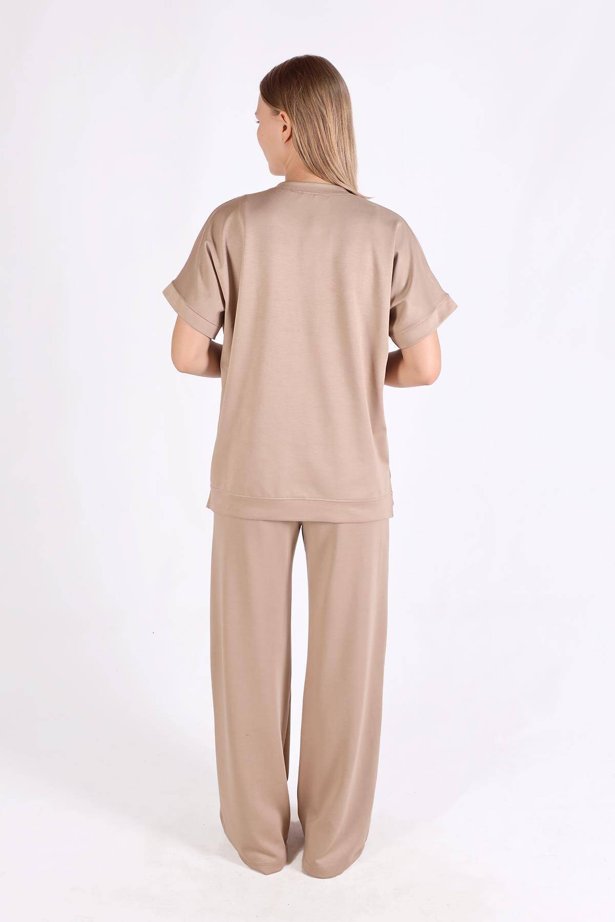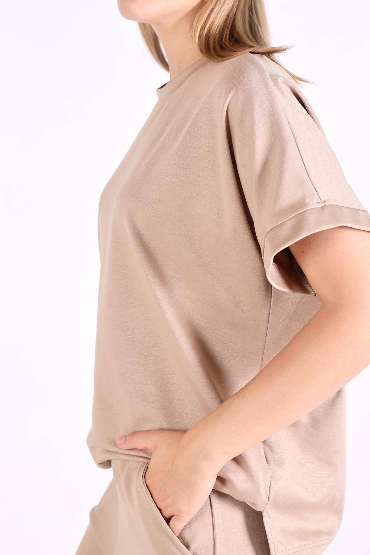 18629 Kısa Kol Takım Koyu Camel