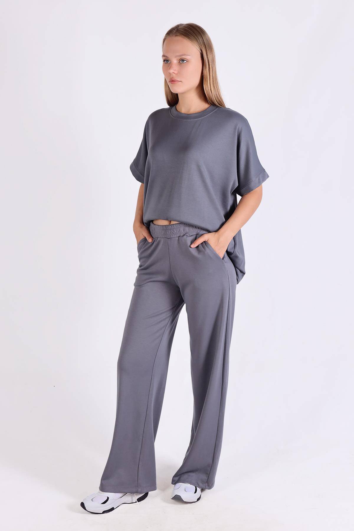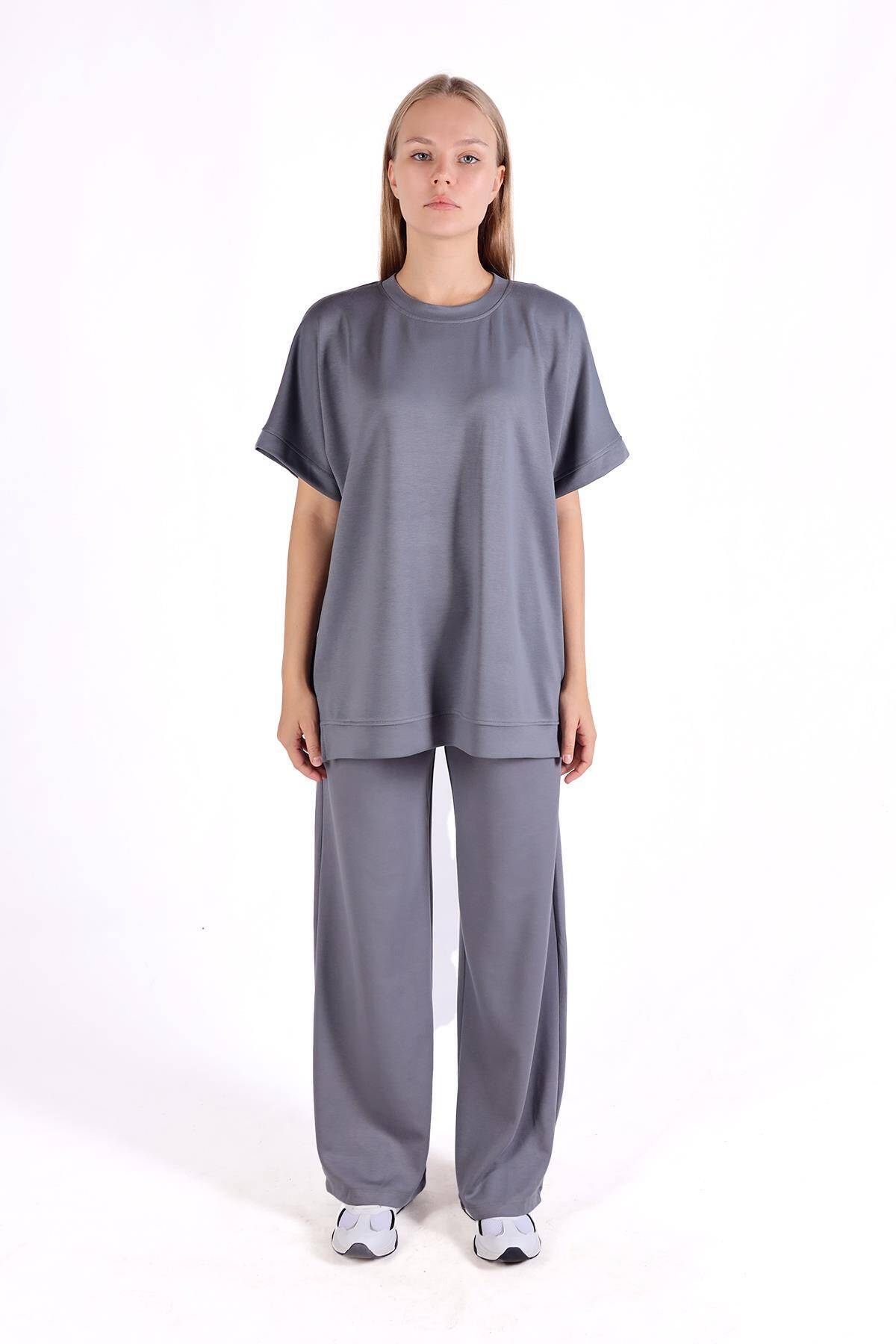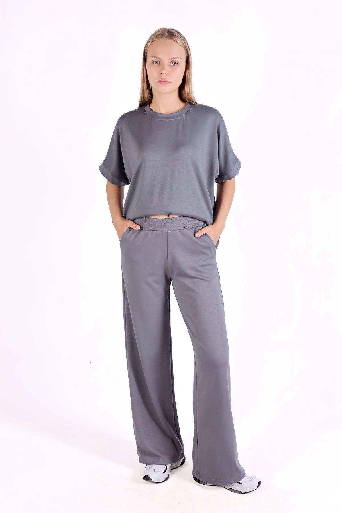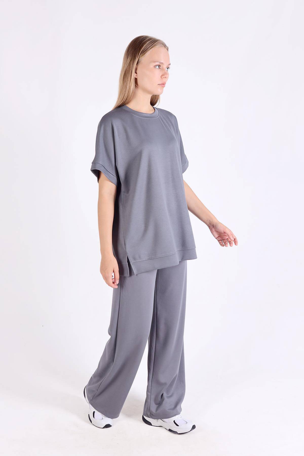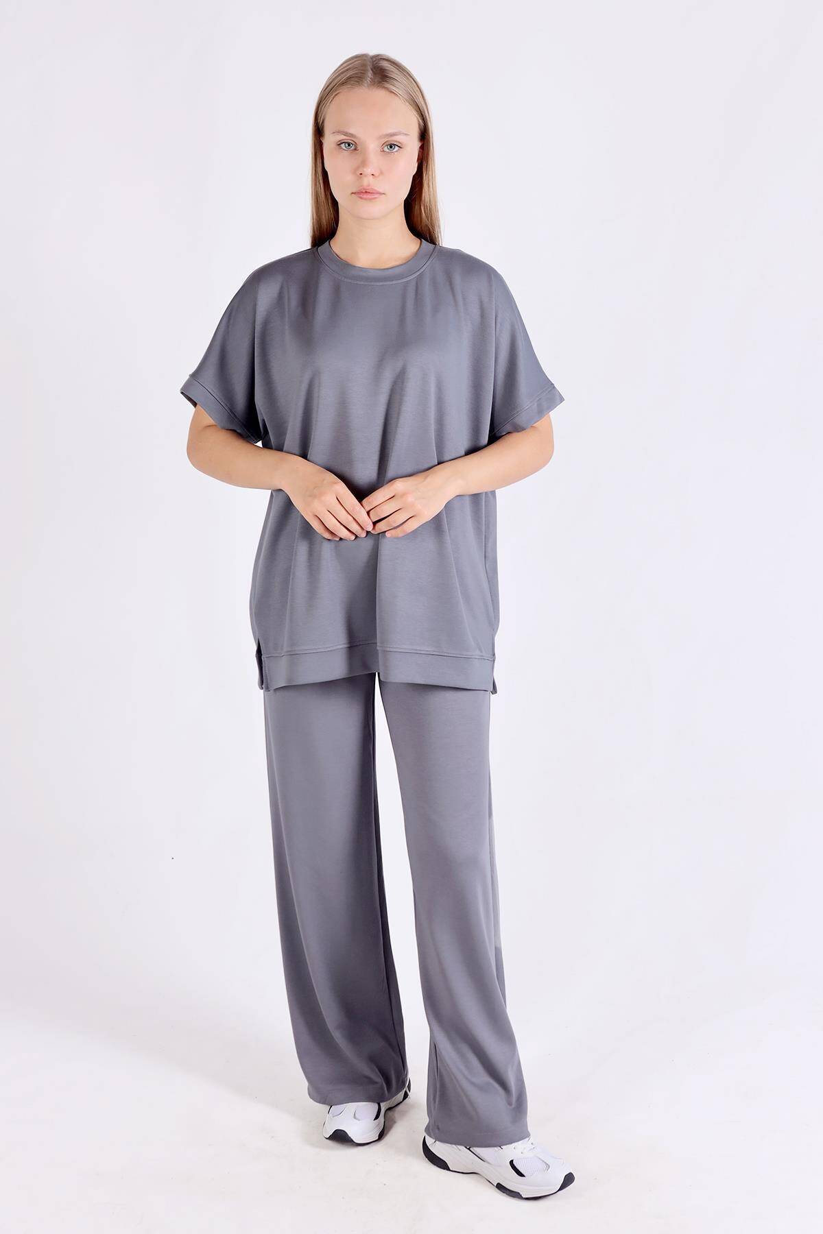 7149A Belden Bağlamalı Uzun Kaşe Kaban Gri