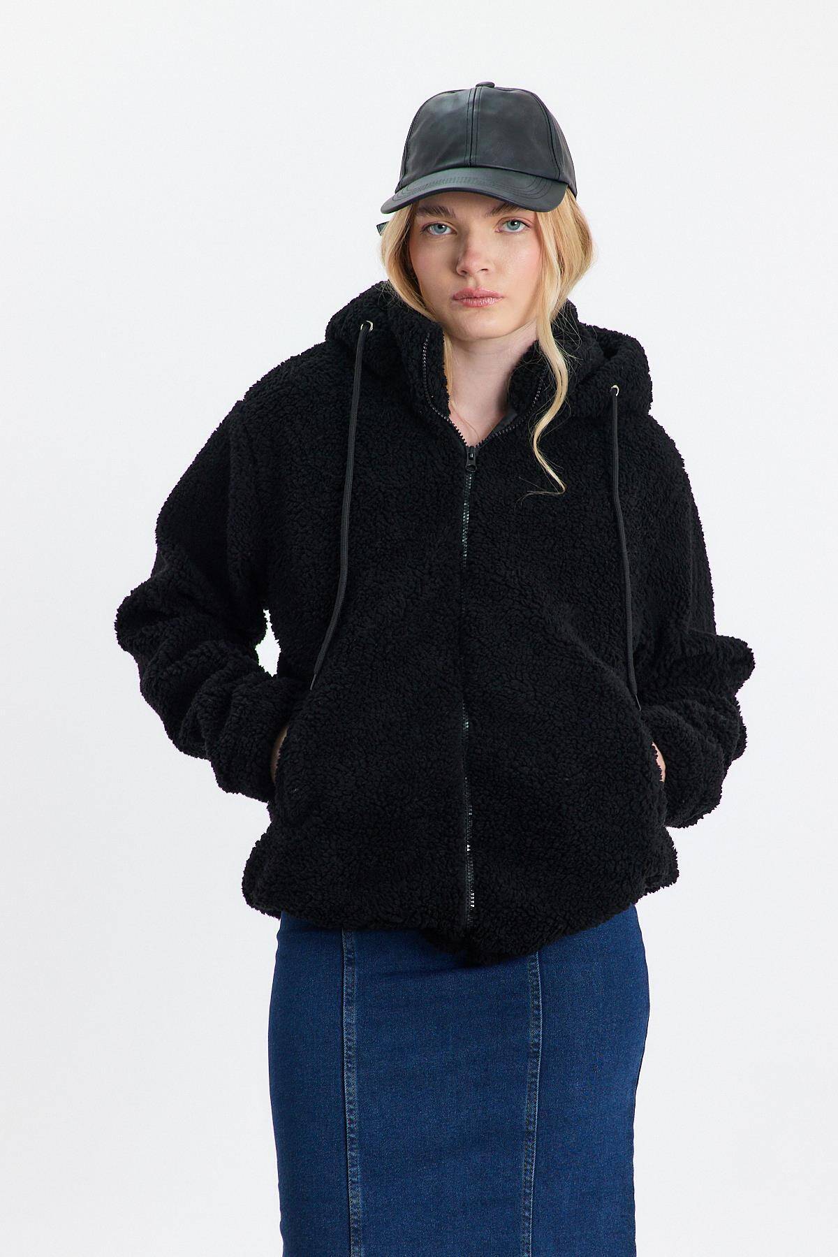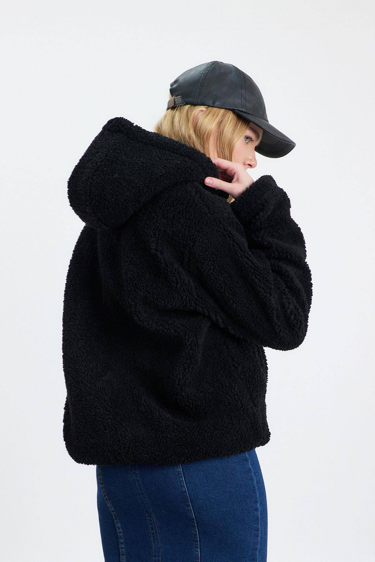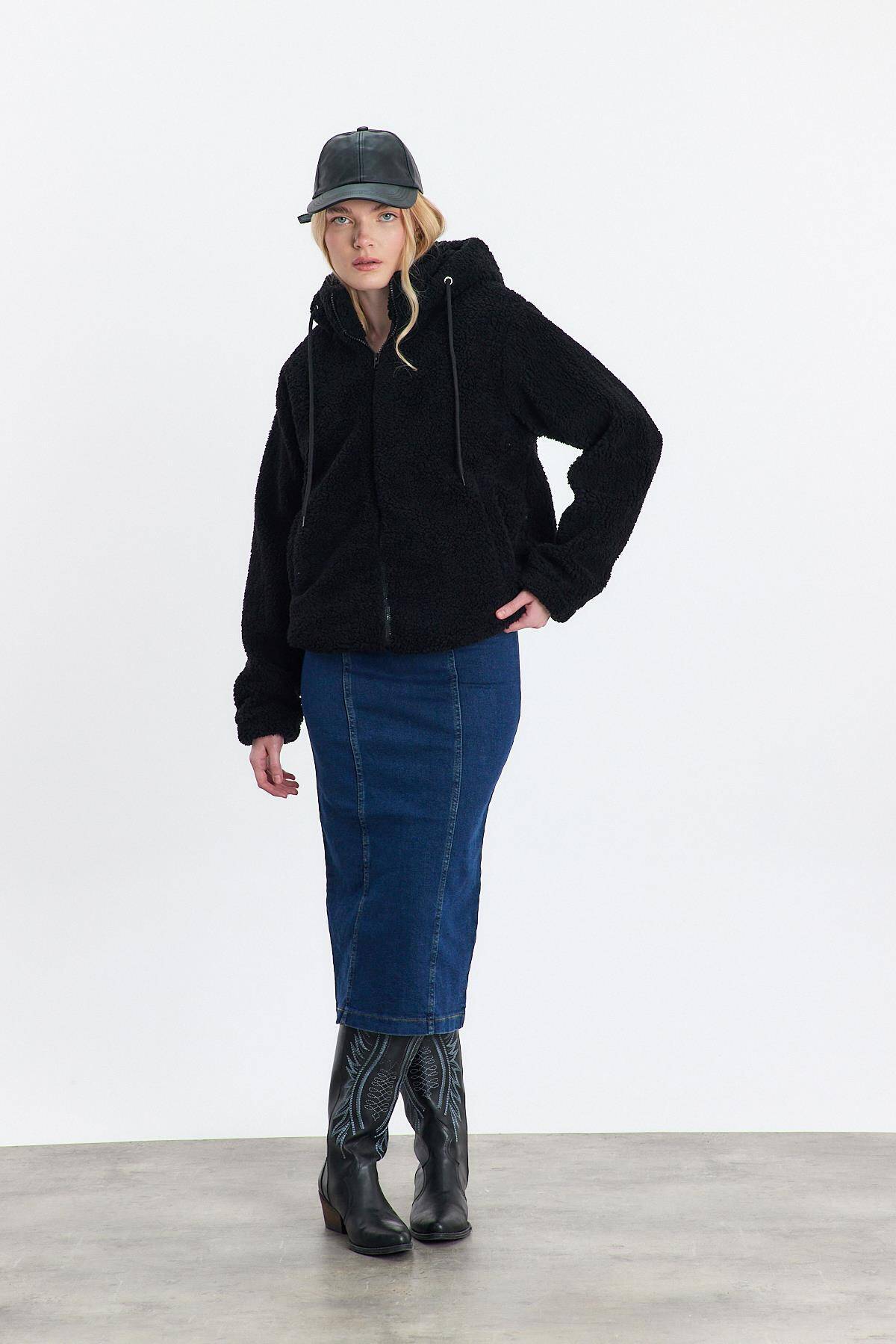 18847 Kapüşonlu Welsoft Hırka Siyah