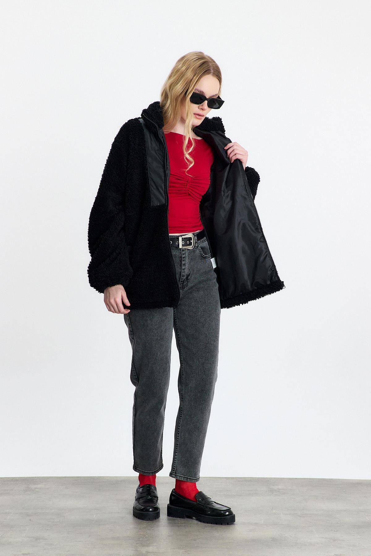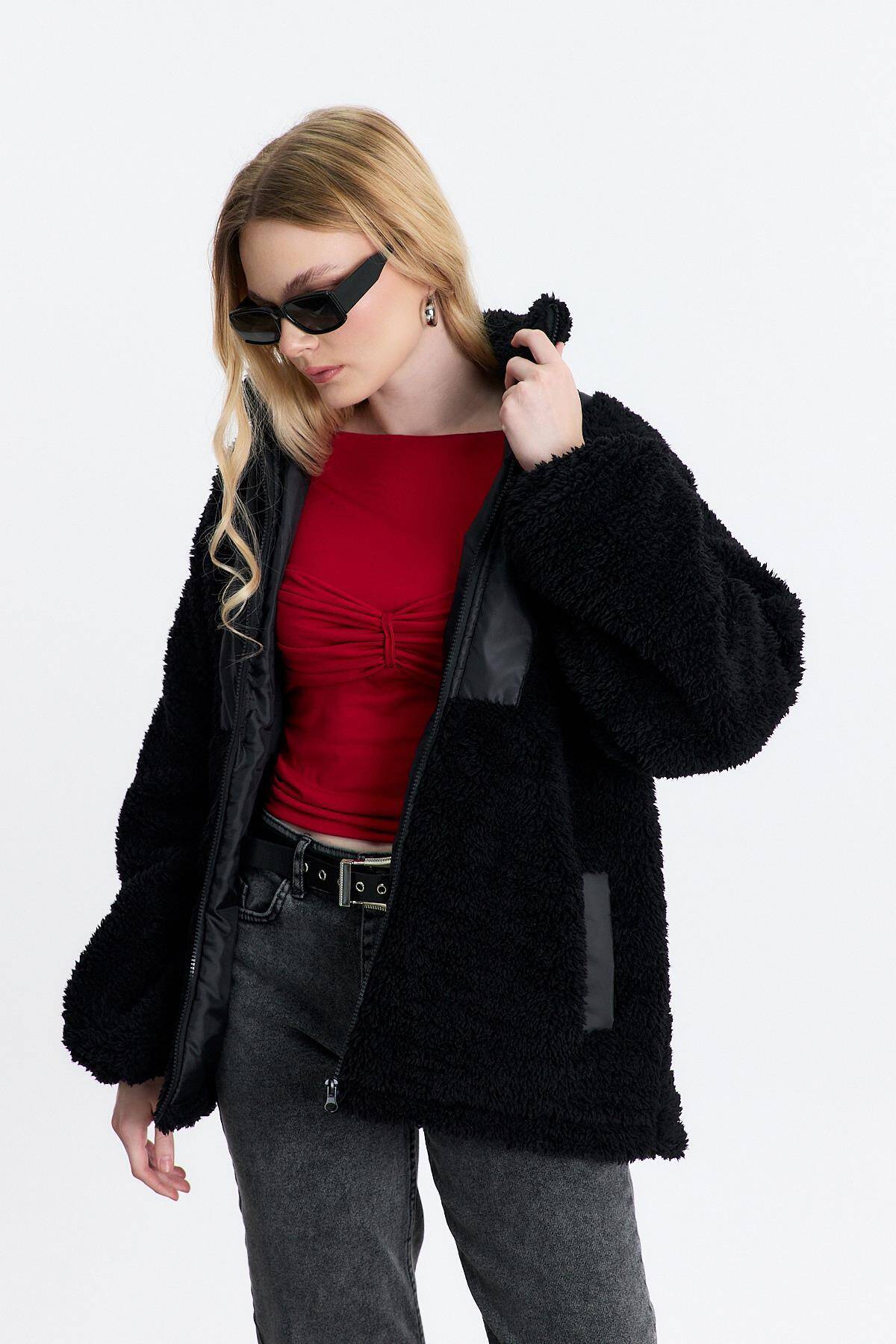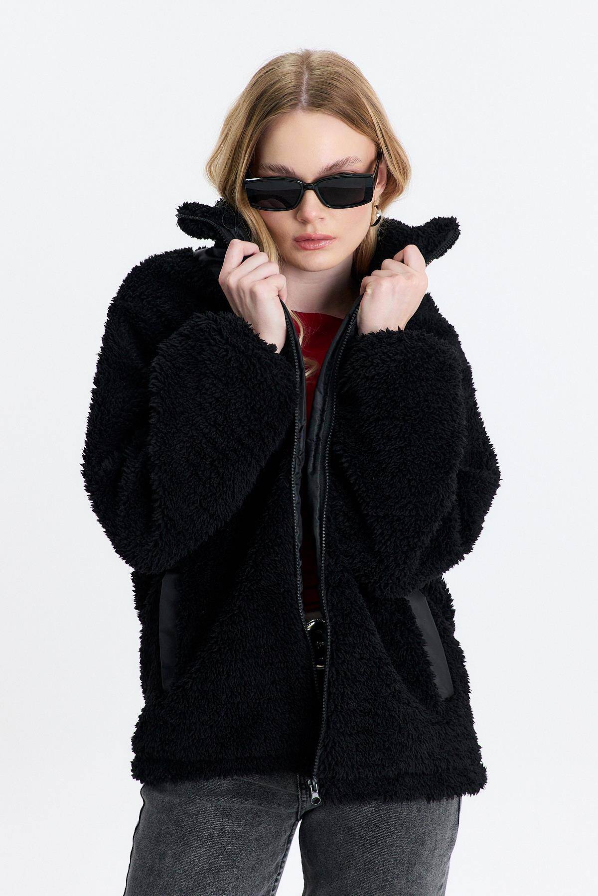 Siyah Kapüşonlu Cepli Fermuarlı Kap 4572A