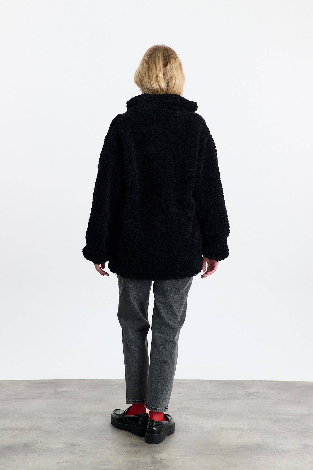 18887 Nakış Detay Cepli Welsoft Hırka Siyah