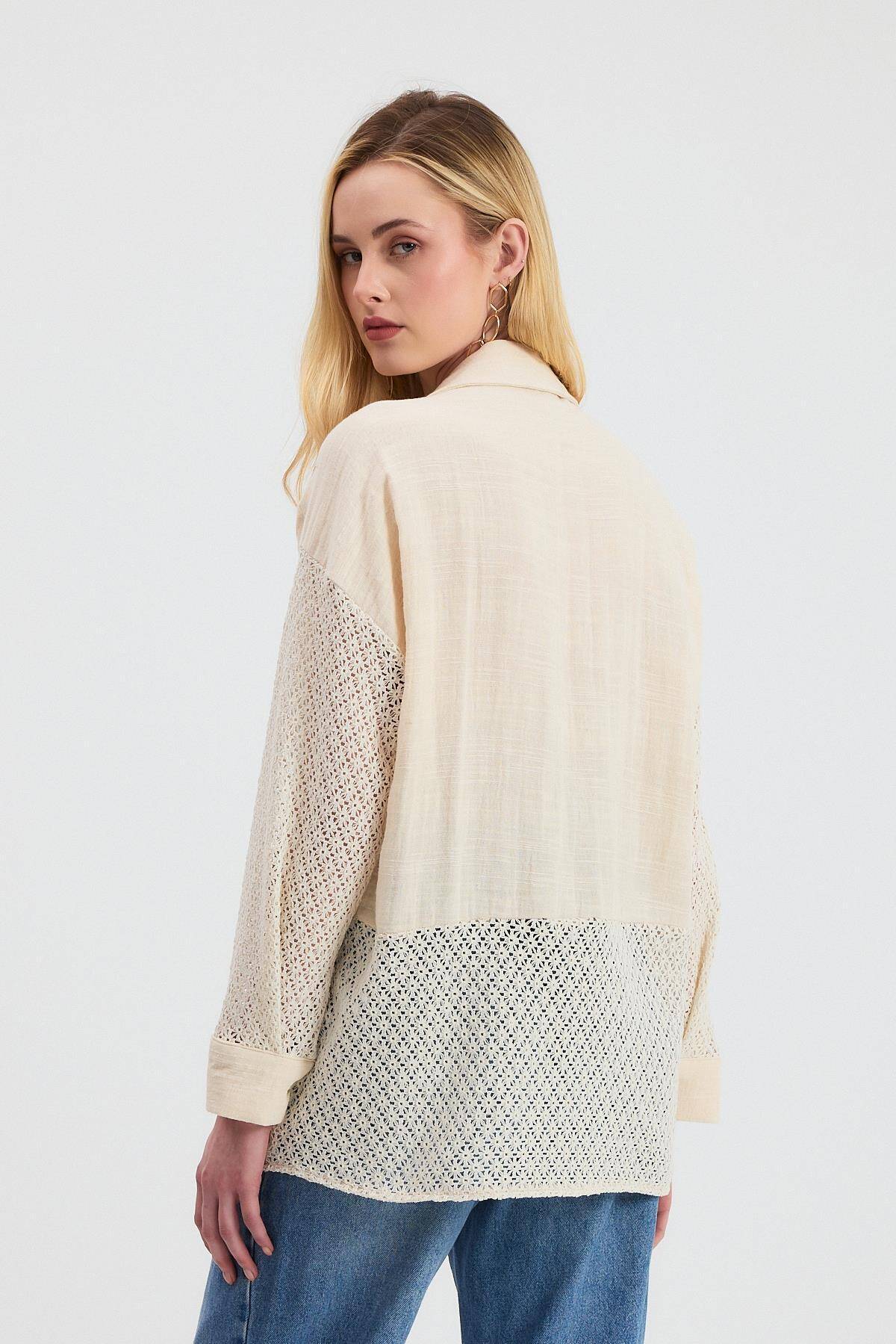 Beyaz Deri Kemer Detaylı Etnik Desenli Kimono 4363A