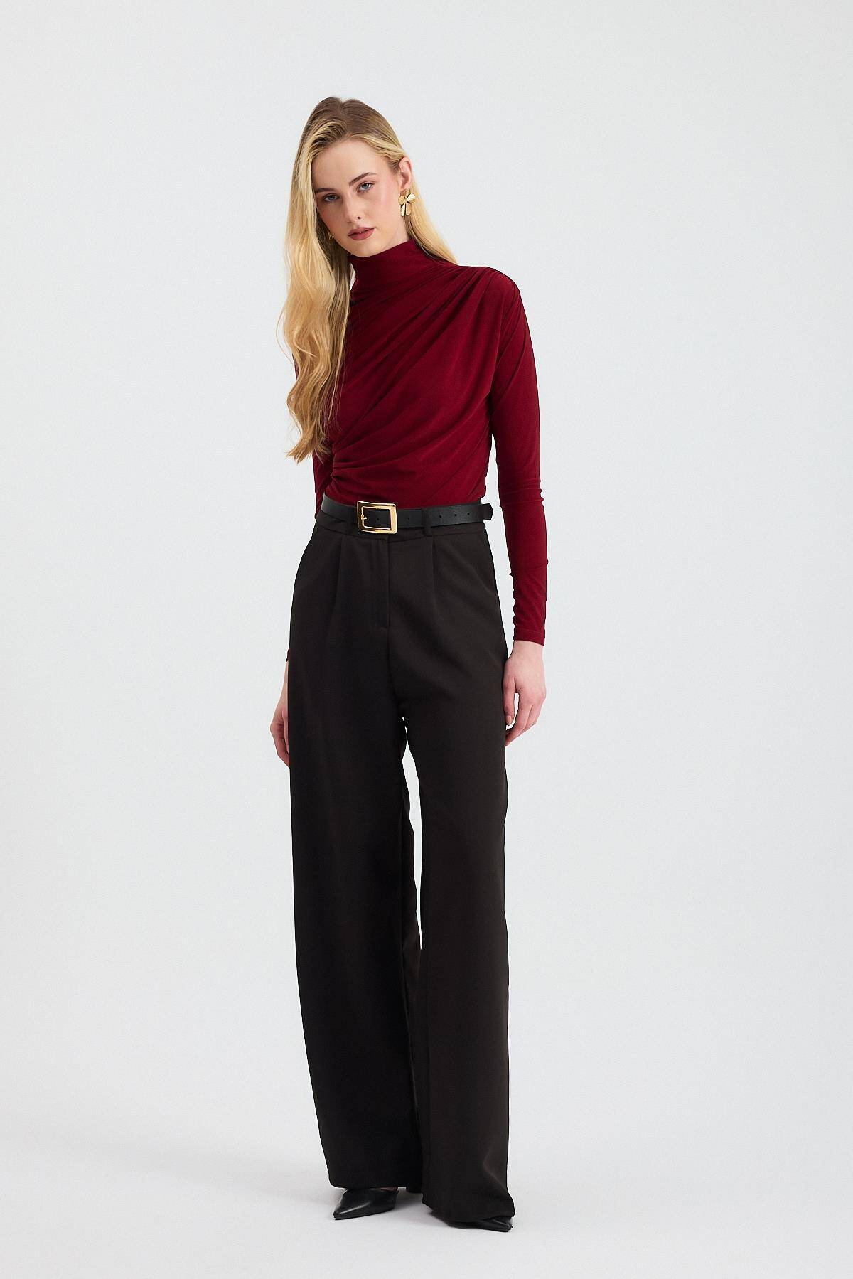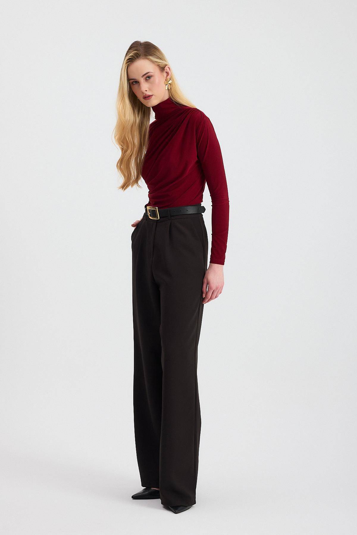 7149A Belden Bağlamalı Uzun Kaşe Kaban Siyah