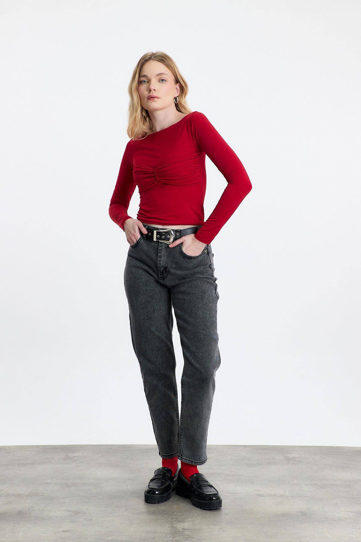 7149A Belden Bağlamalı Uzun Kaşe Kaban Gri