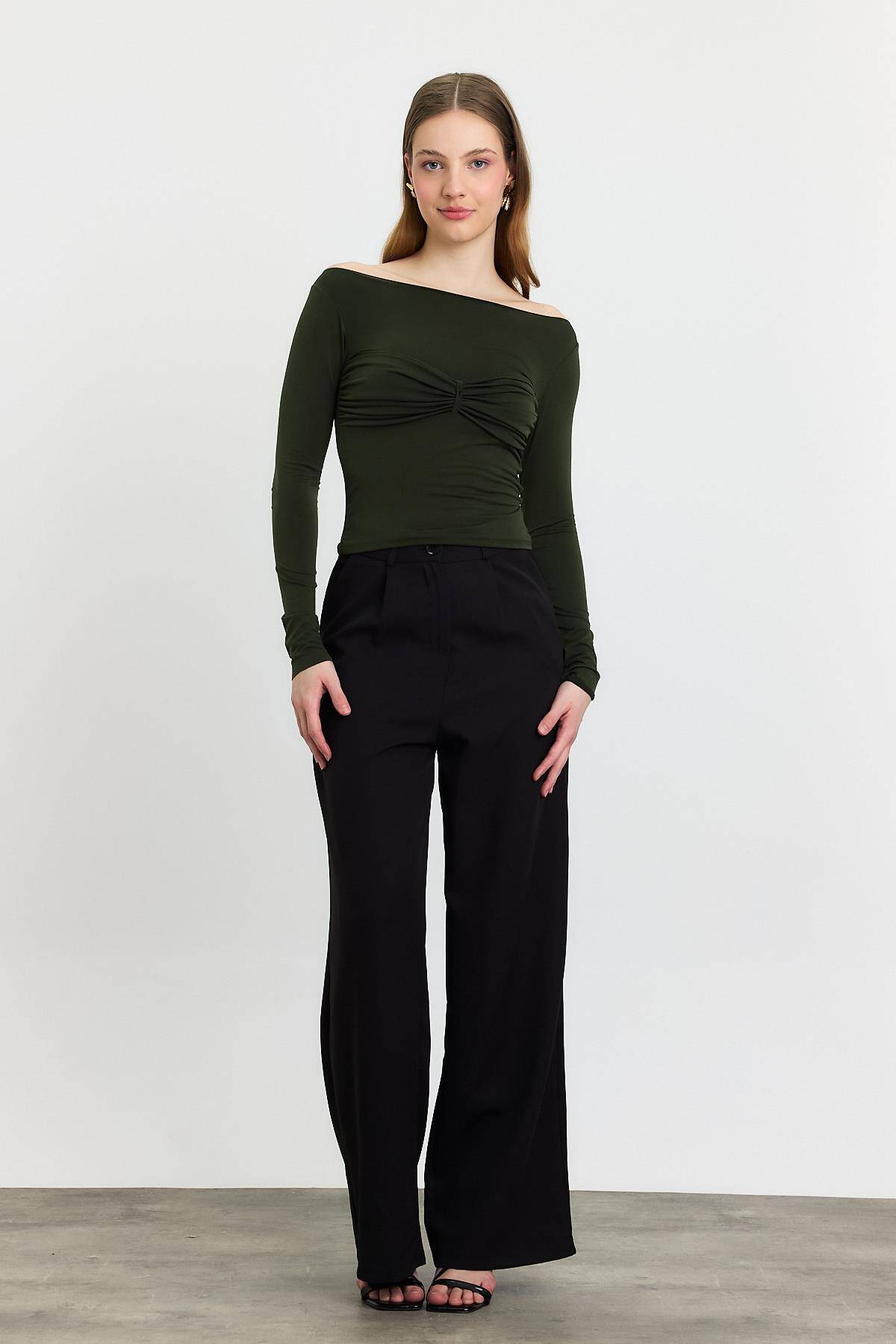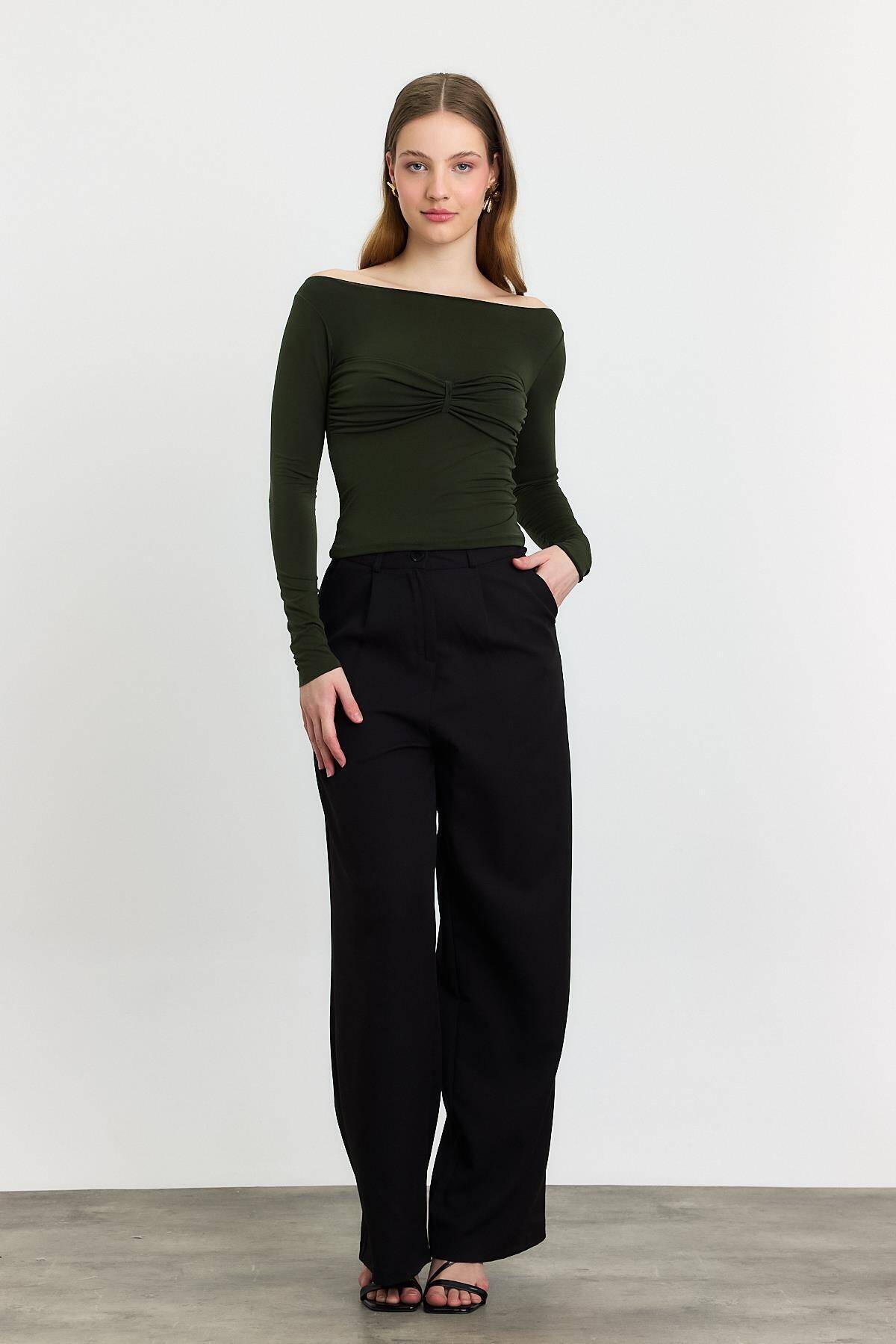 7149A Belden Bağlamalı Uzun Kaşe Kaban Siyah