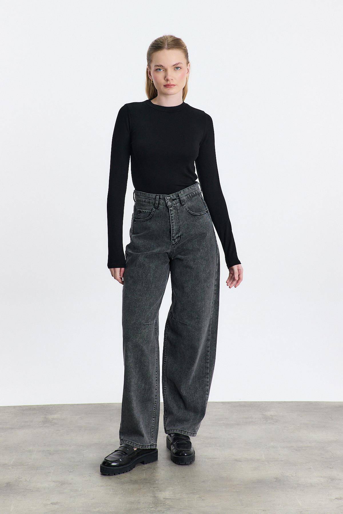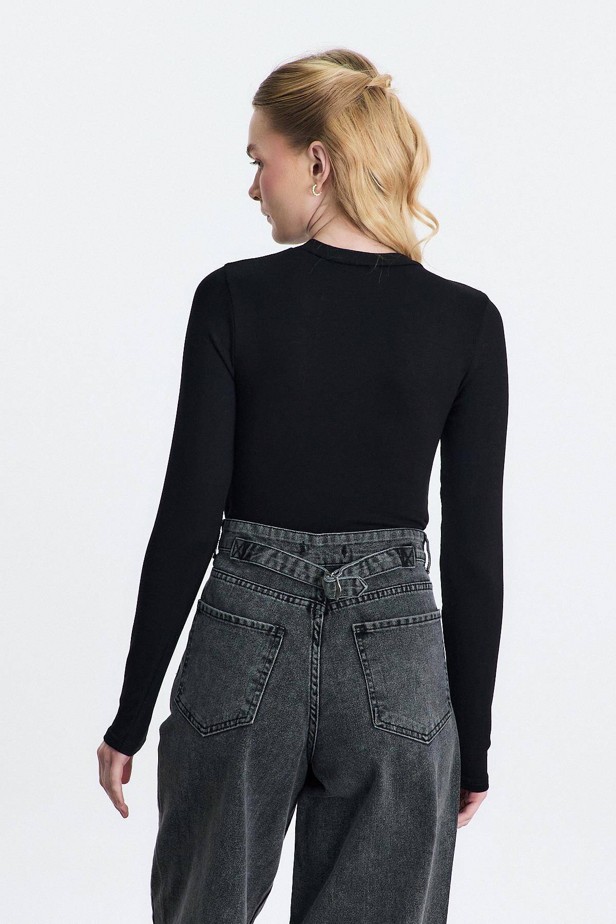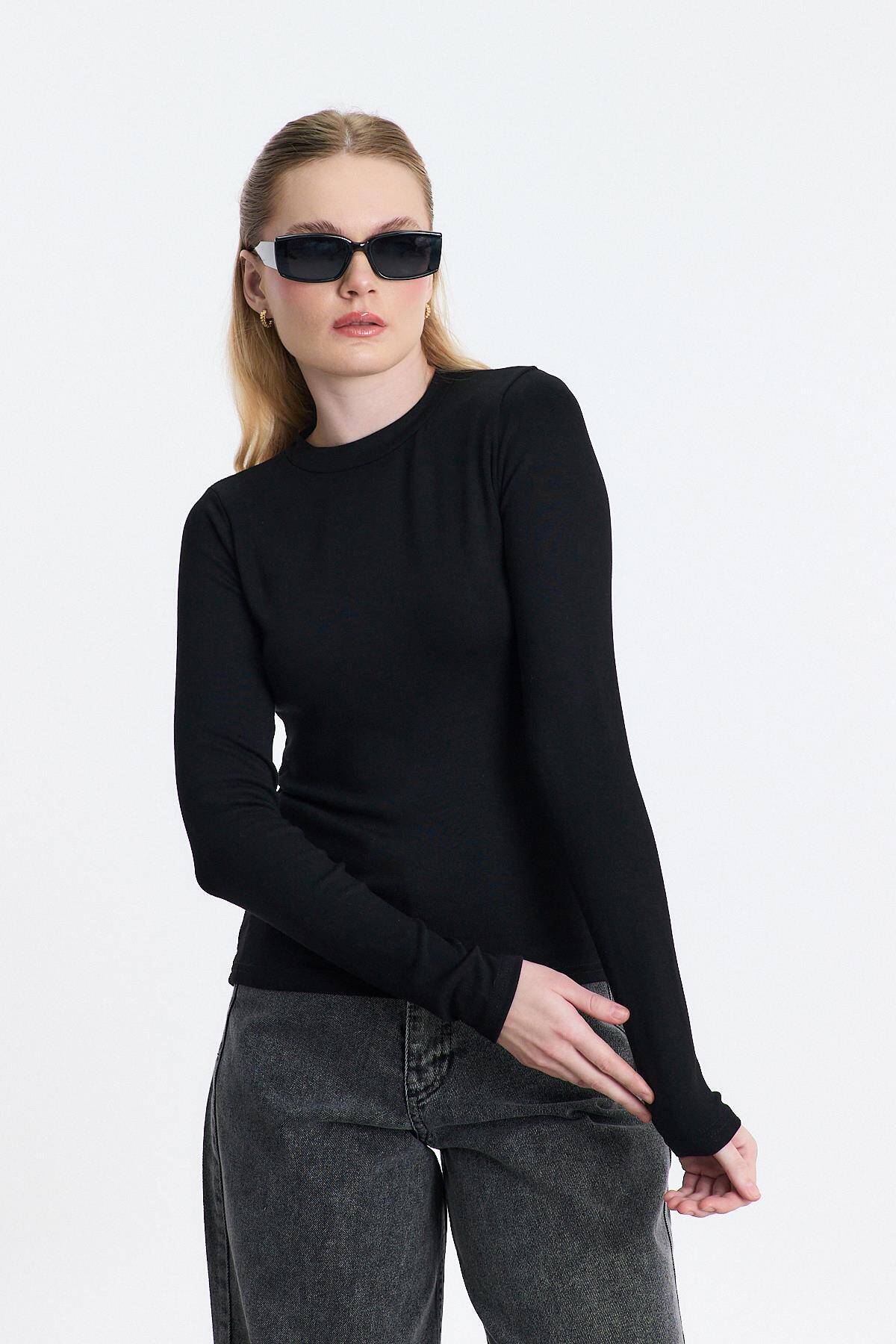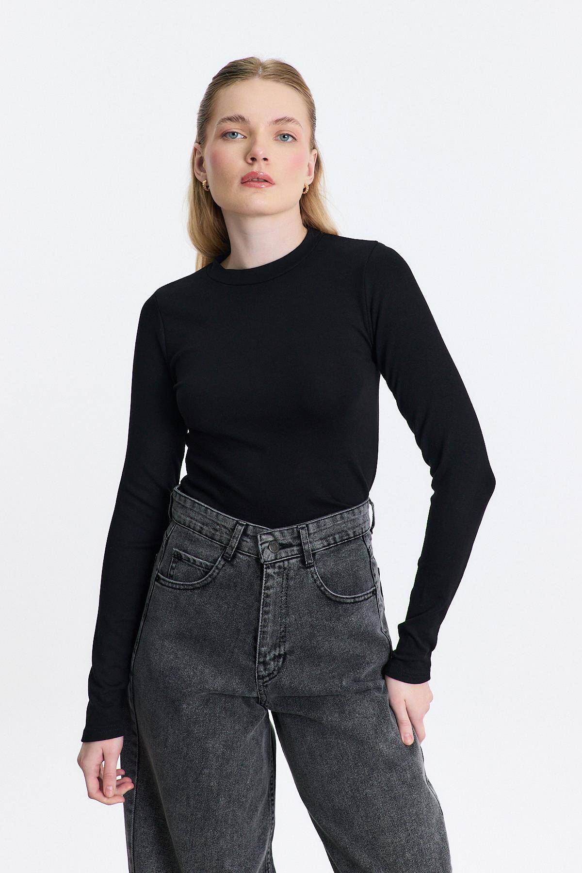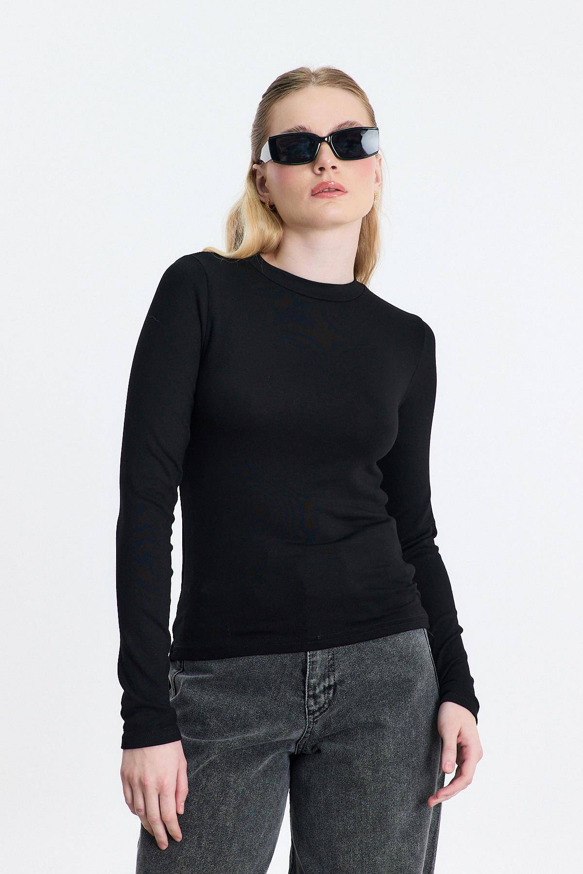 2086 Bisiklet Yaka Uzun Kol Bady Siyah