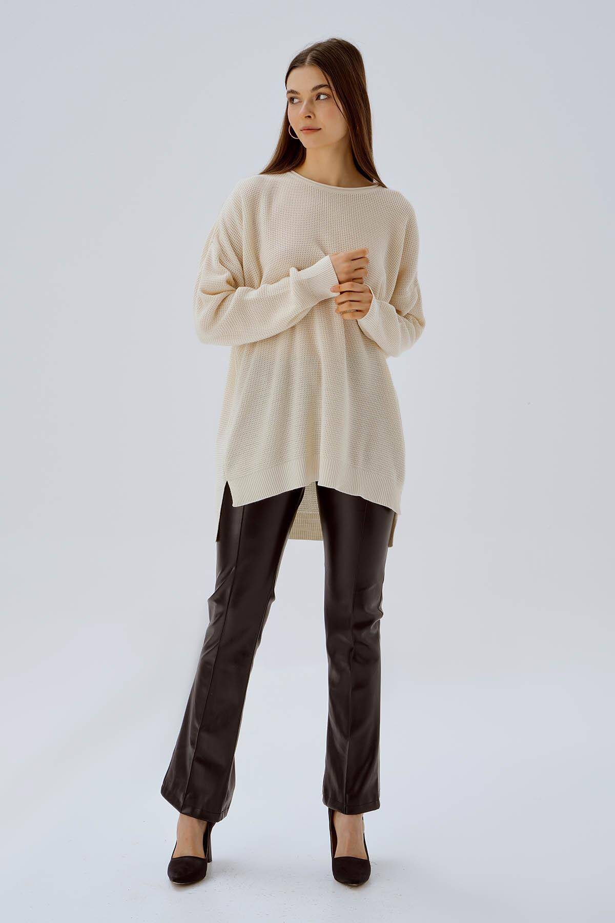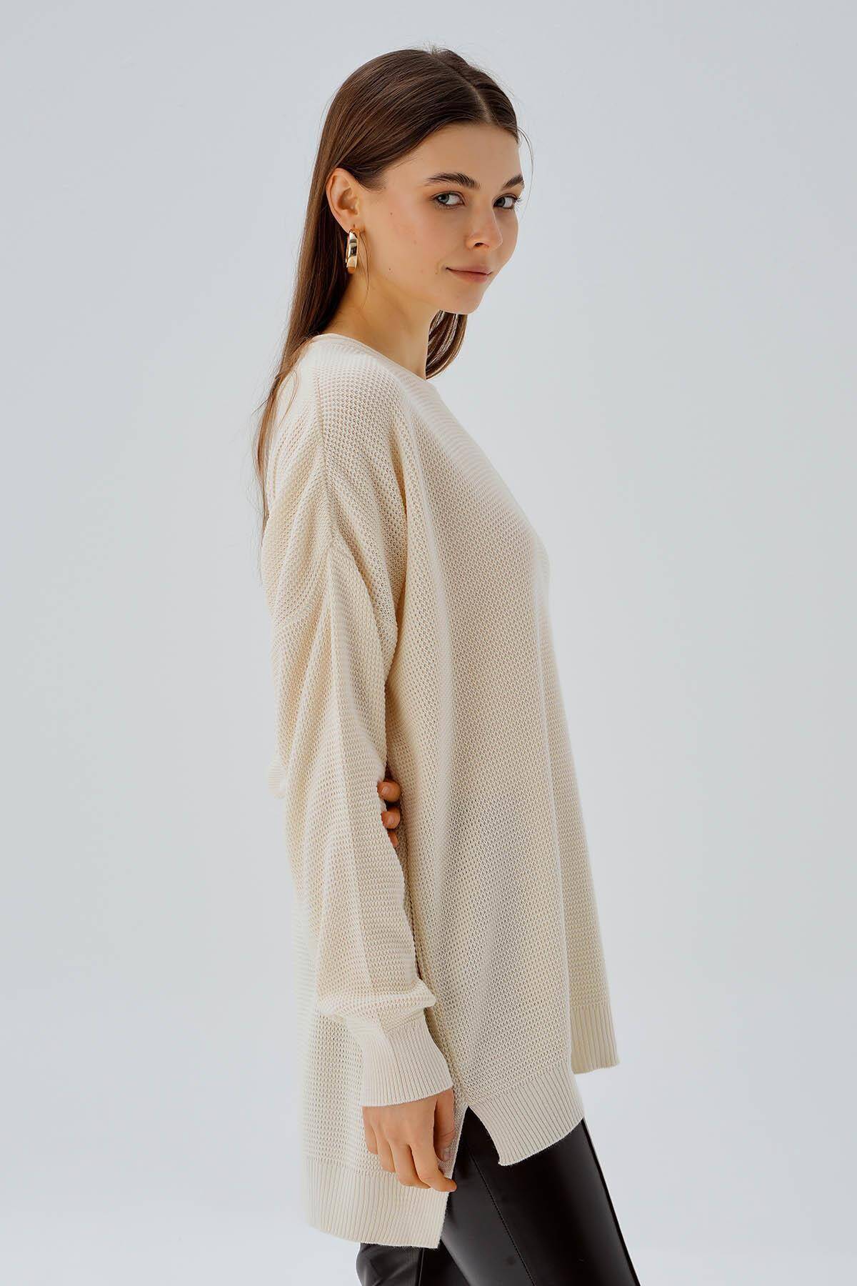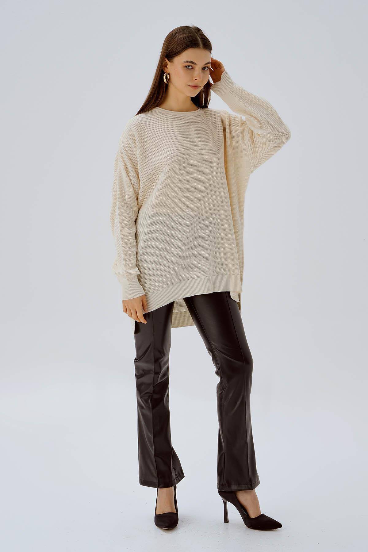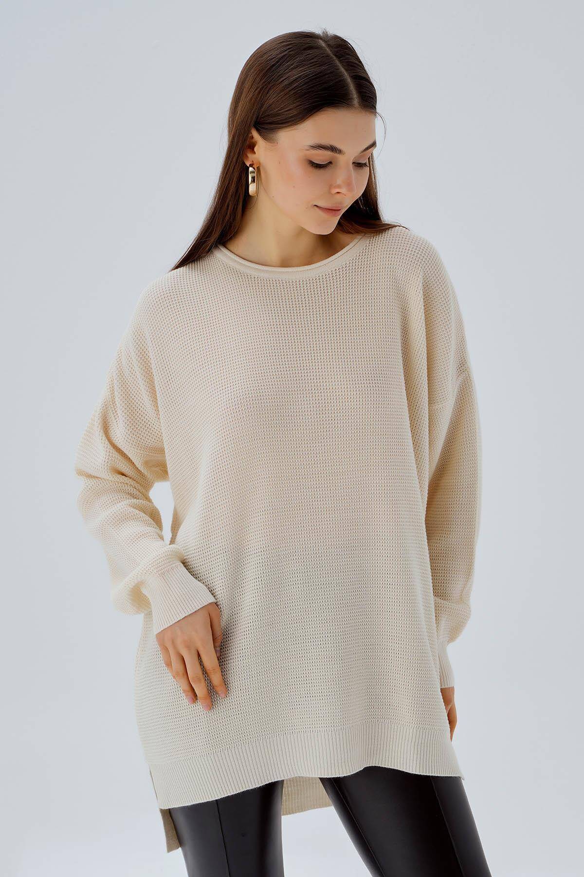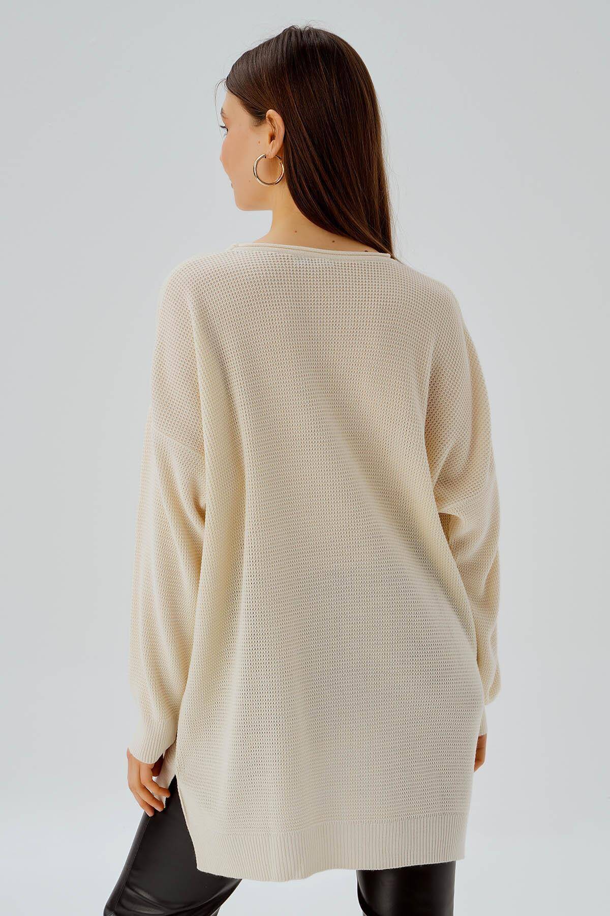 2210 Bisiklet Yaka Yırtmaçlı Kazak Ekru