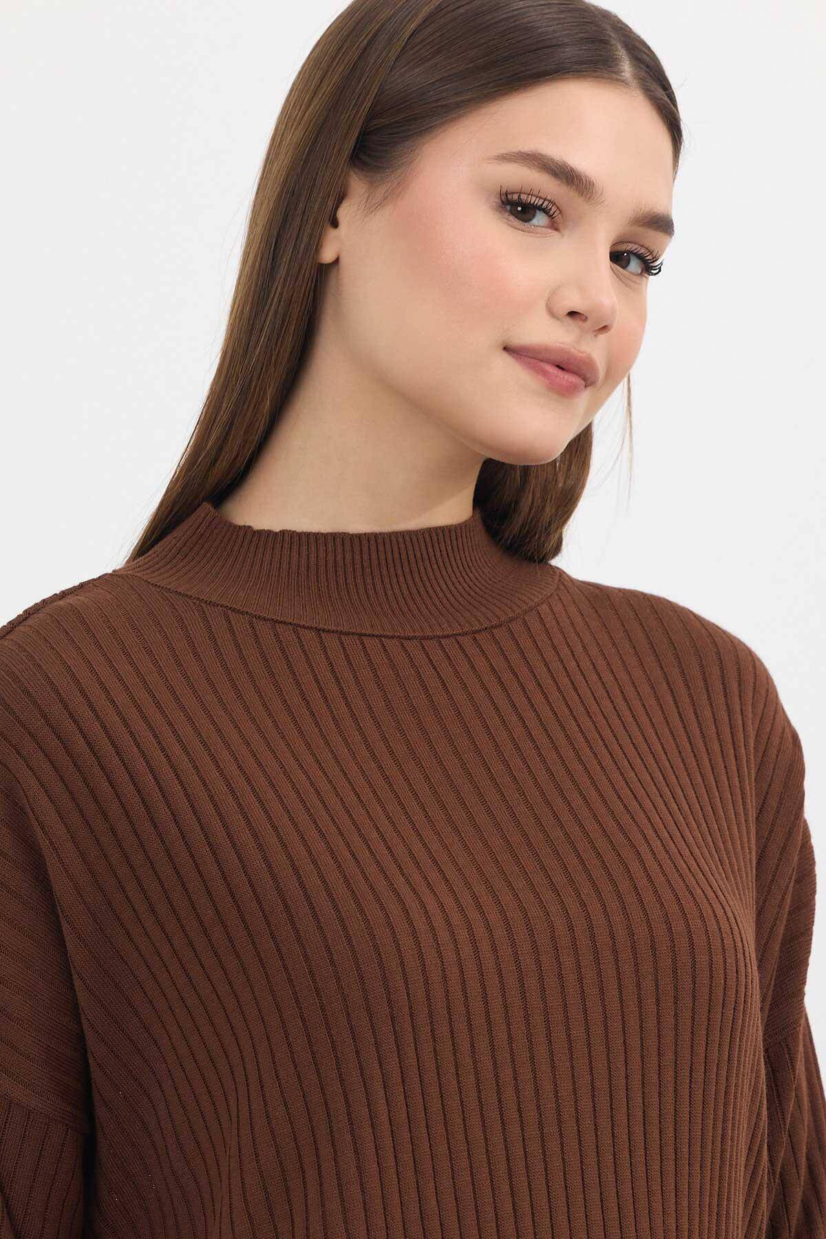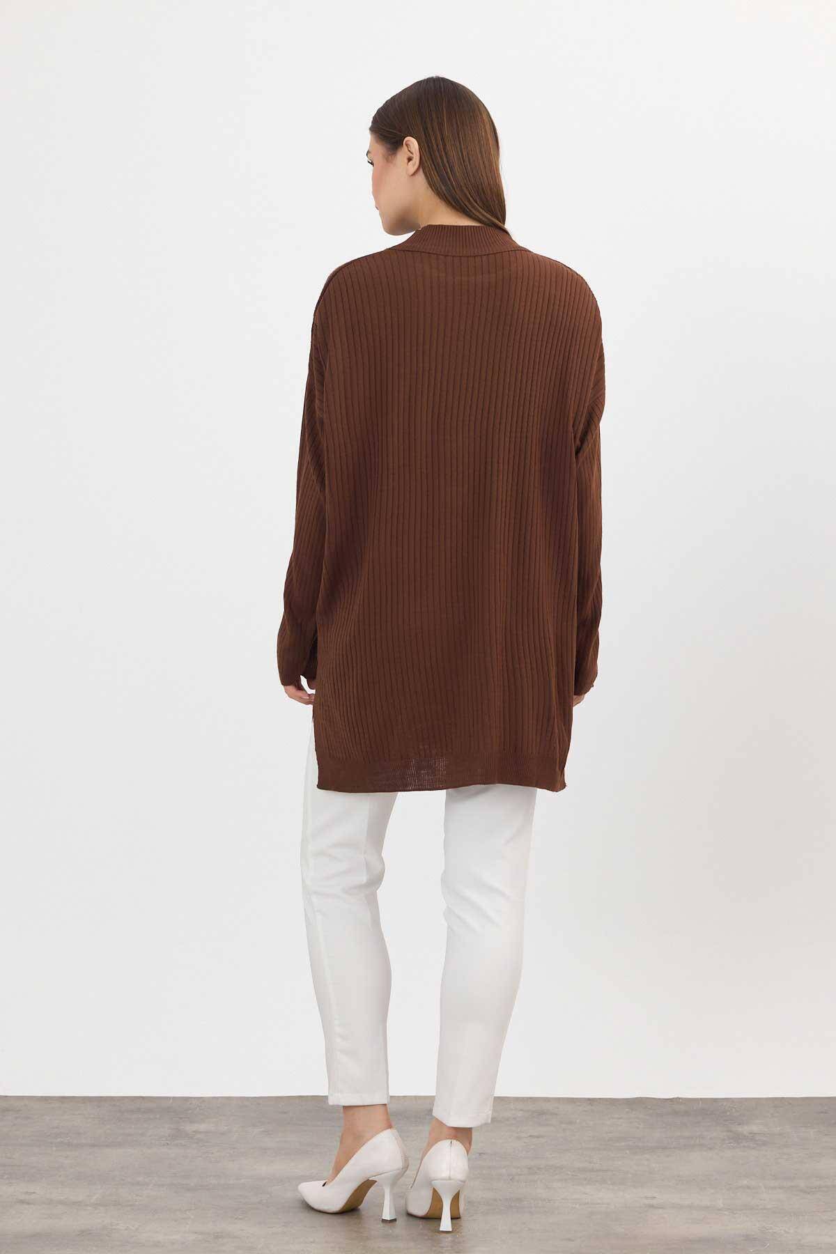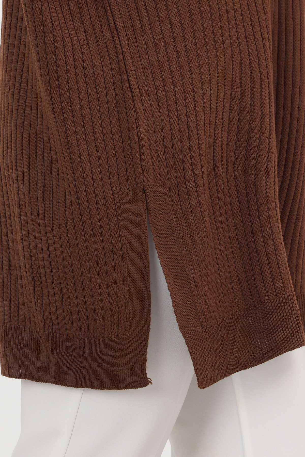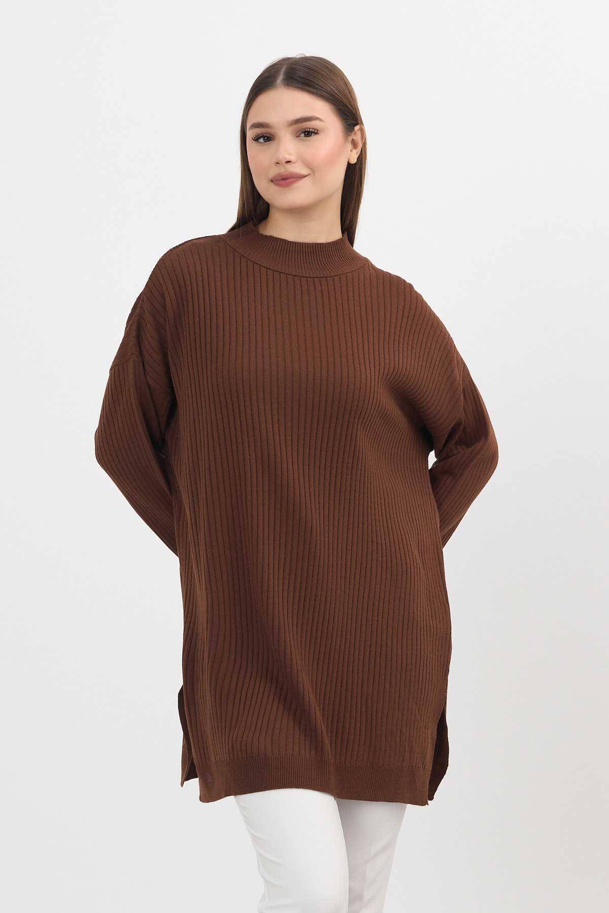 22131 Yırtmaç Detay Fitilli Tunik Kahve