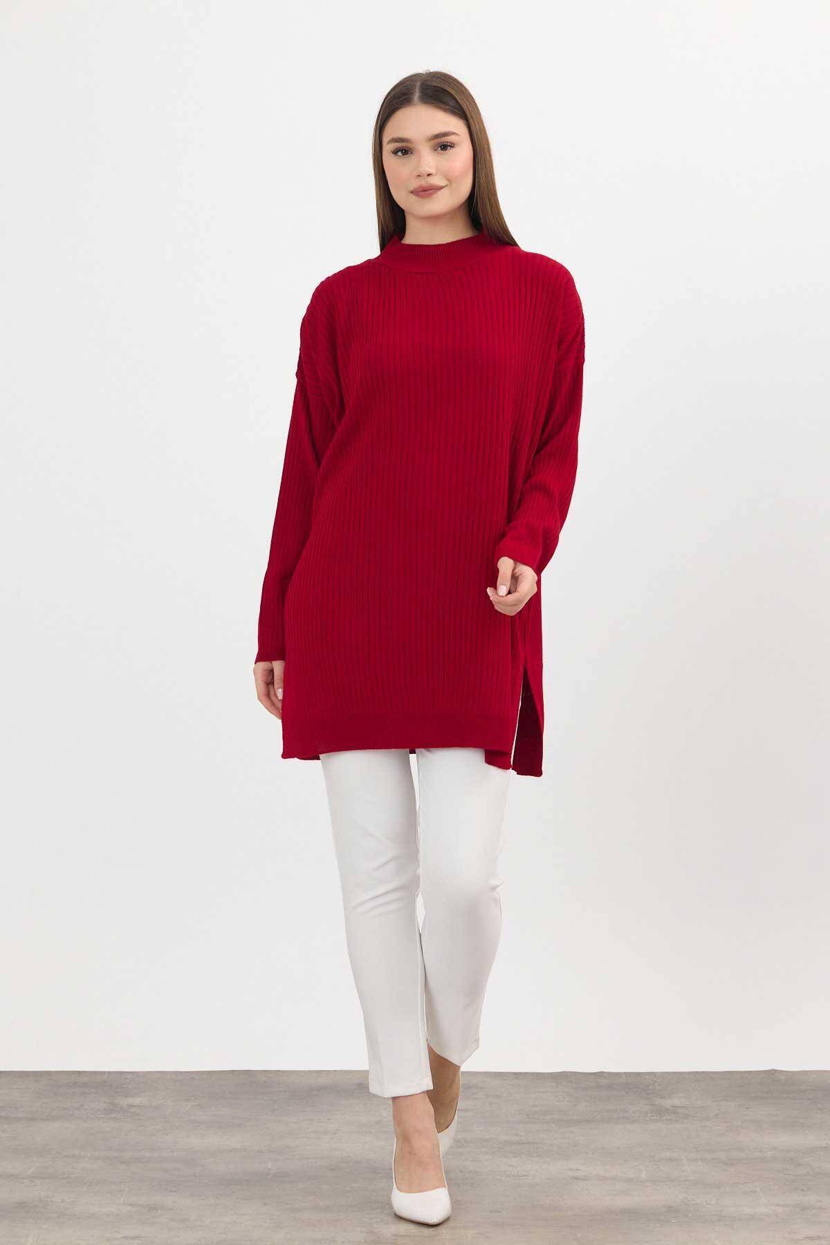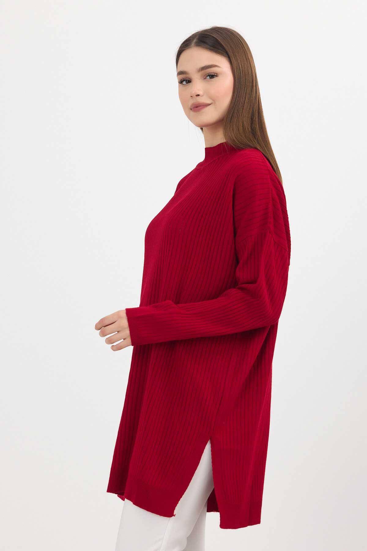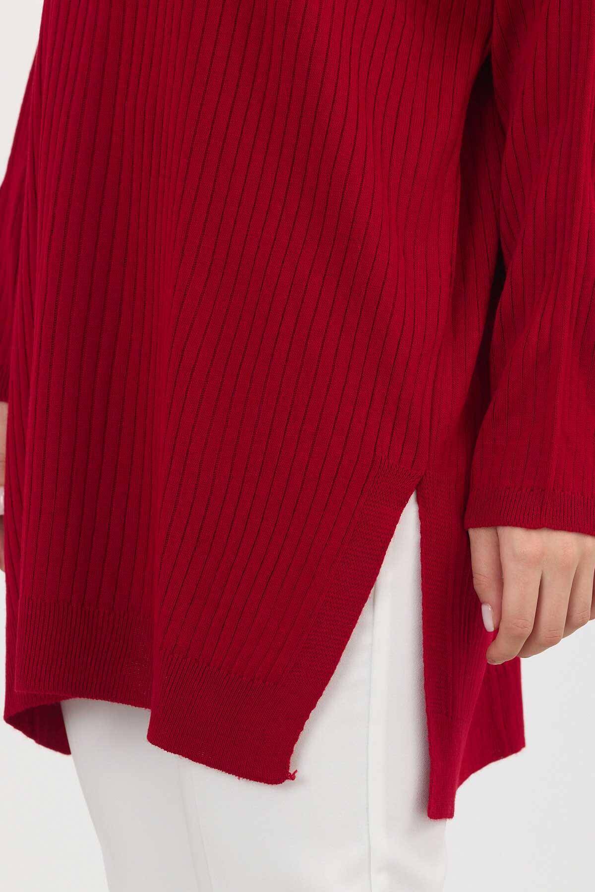 22131 Yırtmaç Detay Fitilli Tunik Kırmızı