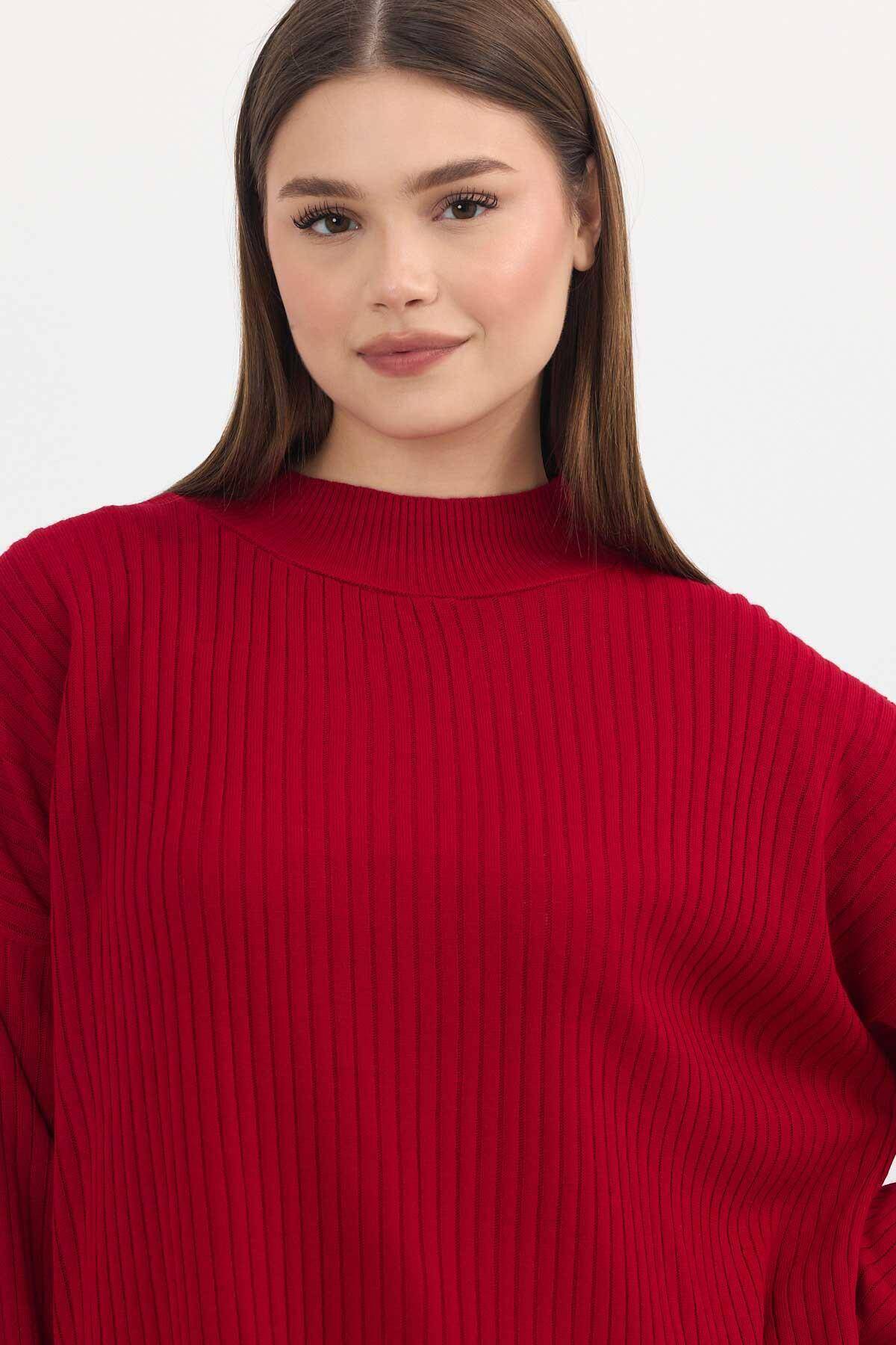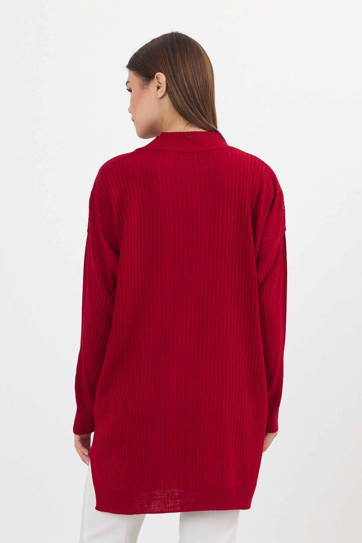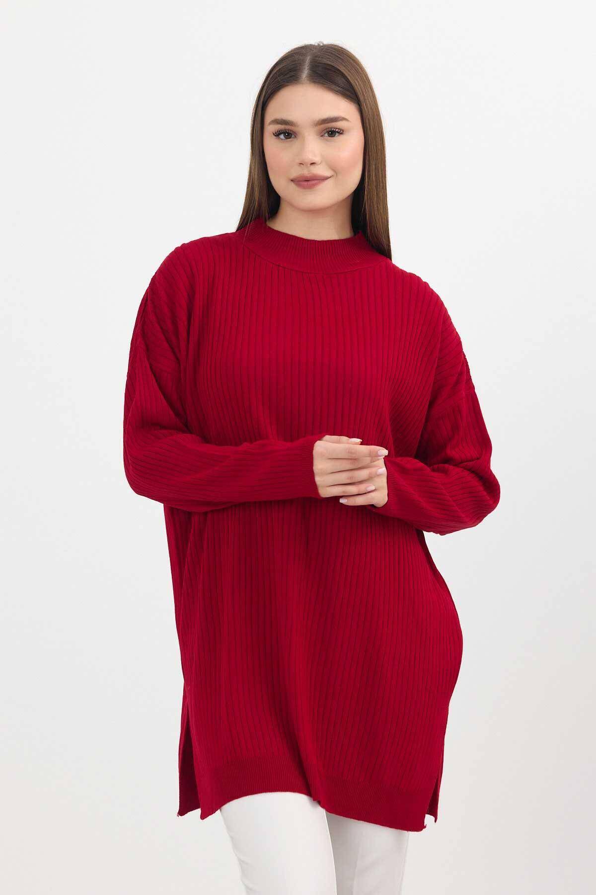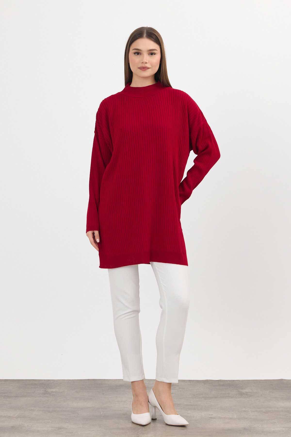 22131 Yırtmaç Detay Fitilli Tunik Kırmızı
