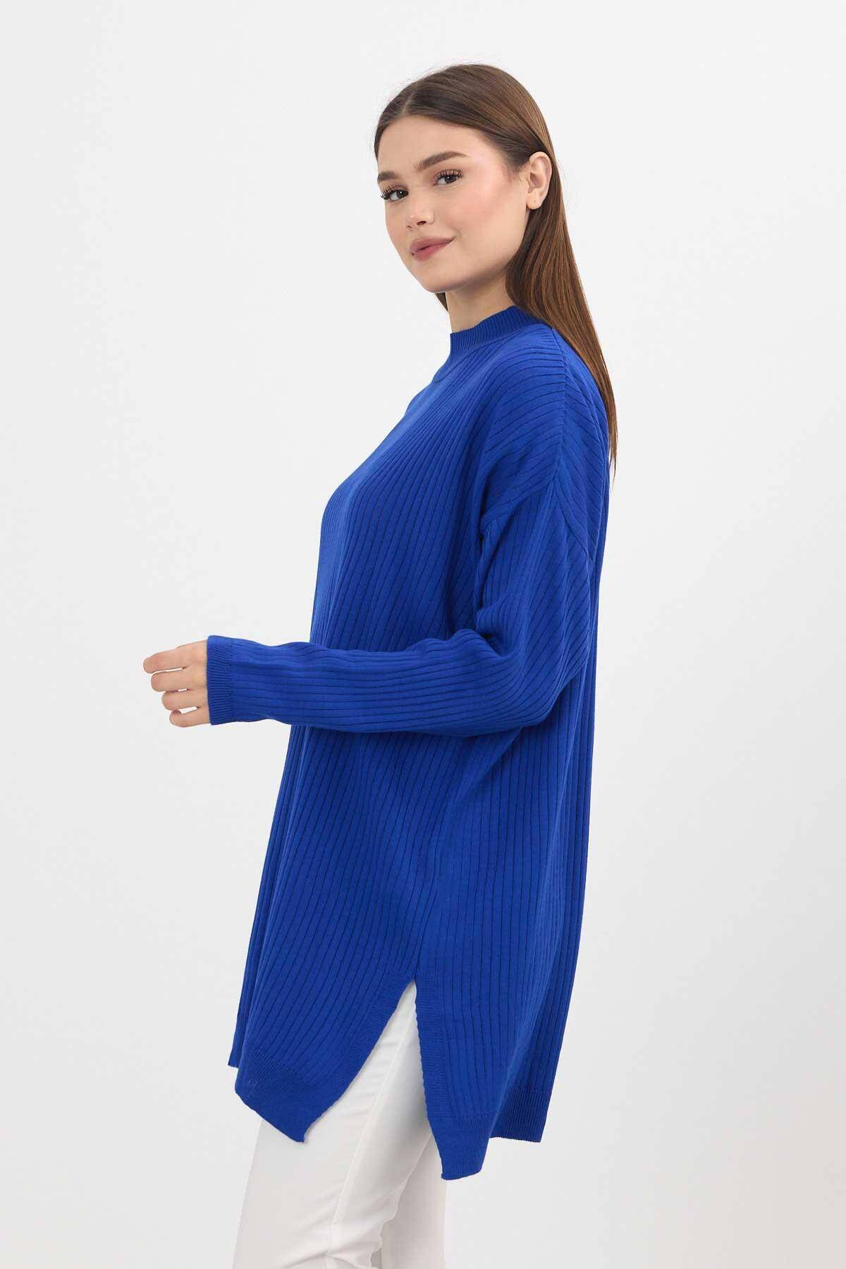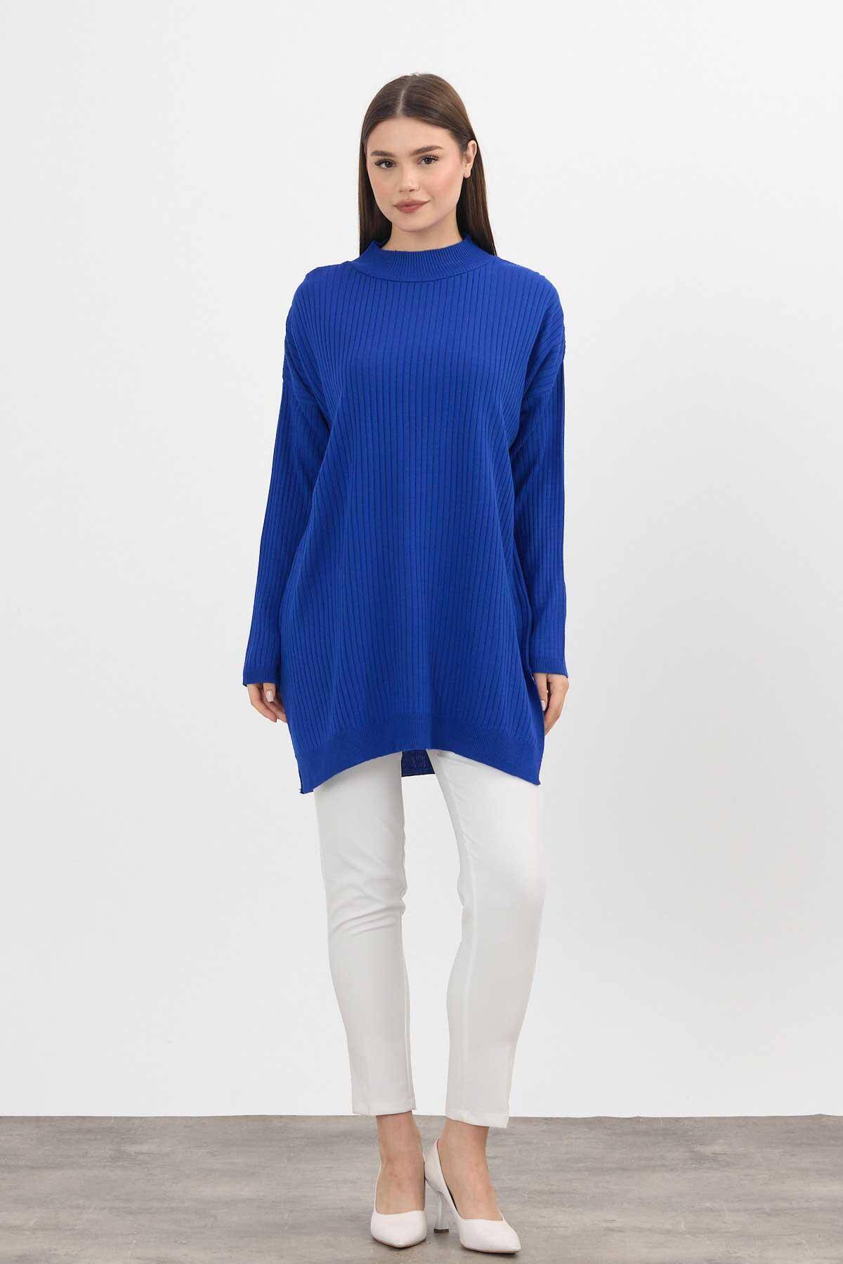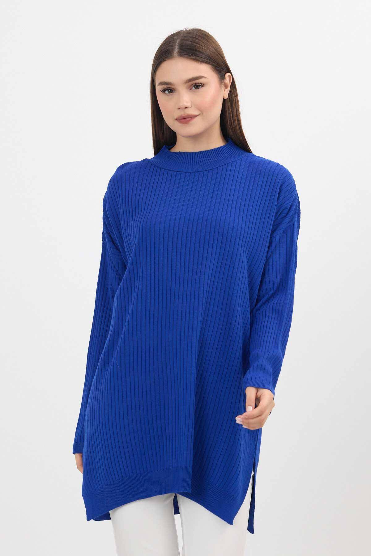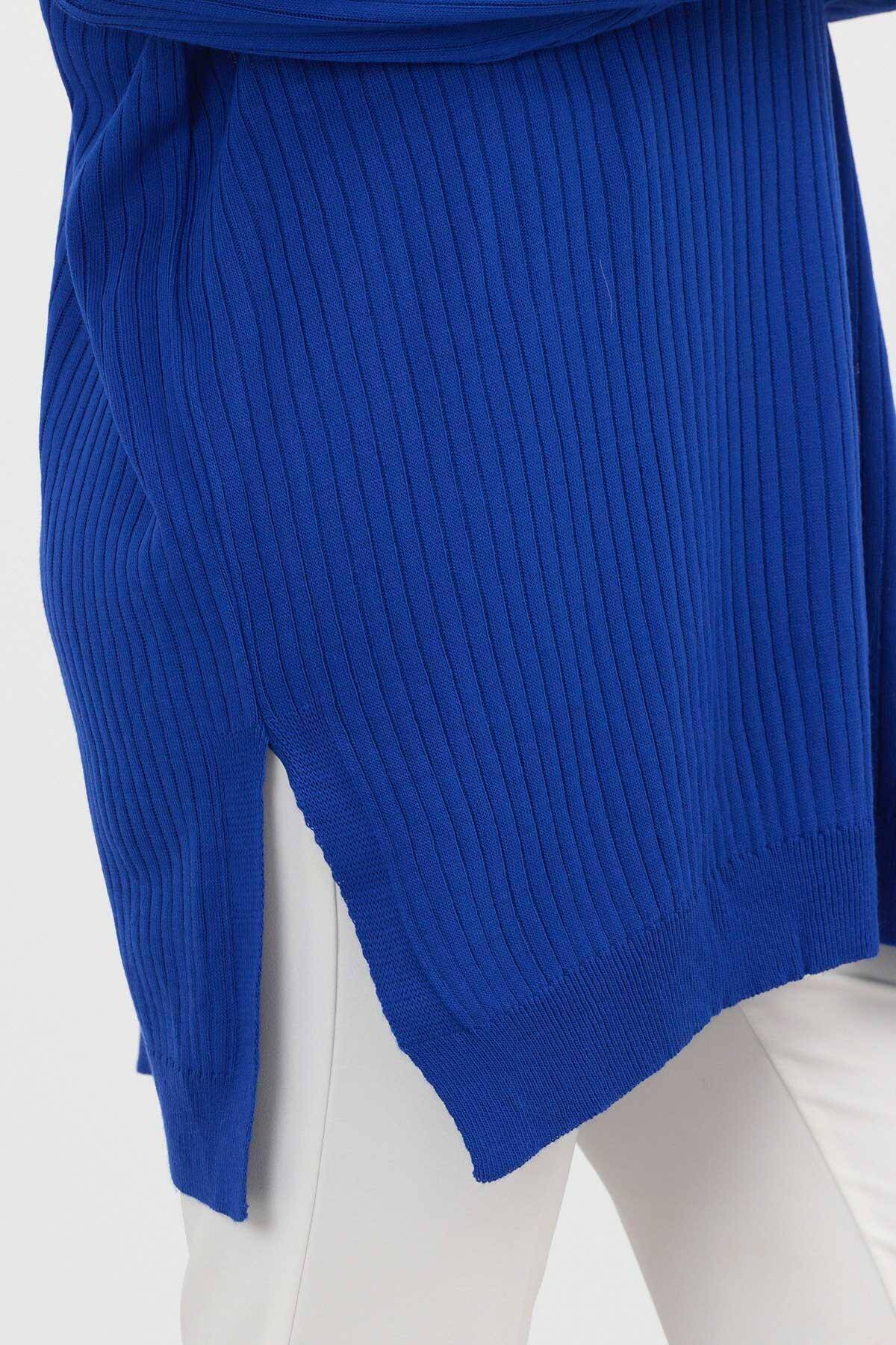 22131 Yırtmaç Detay Fitilli Tunik Saks