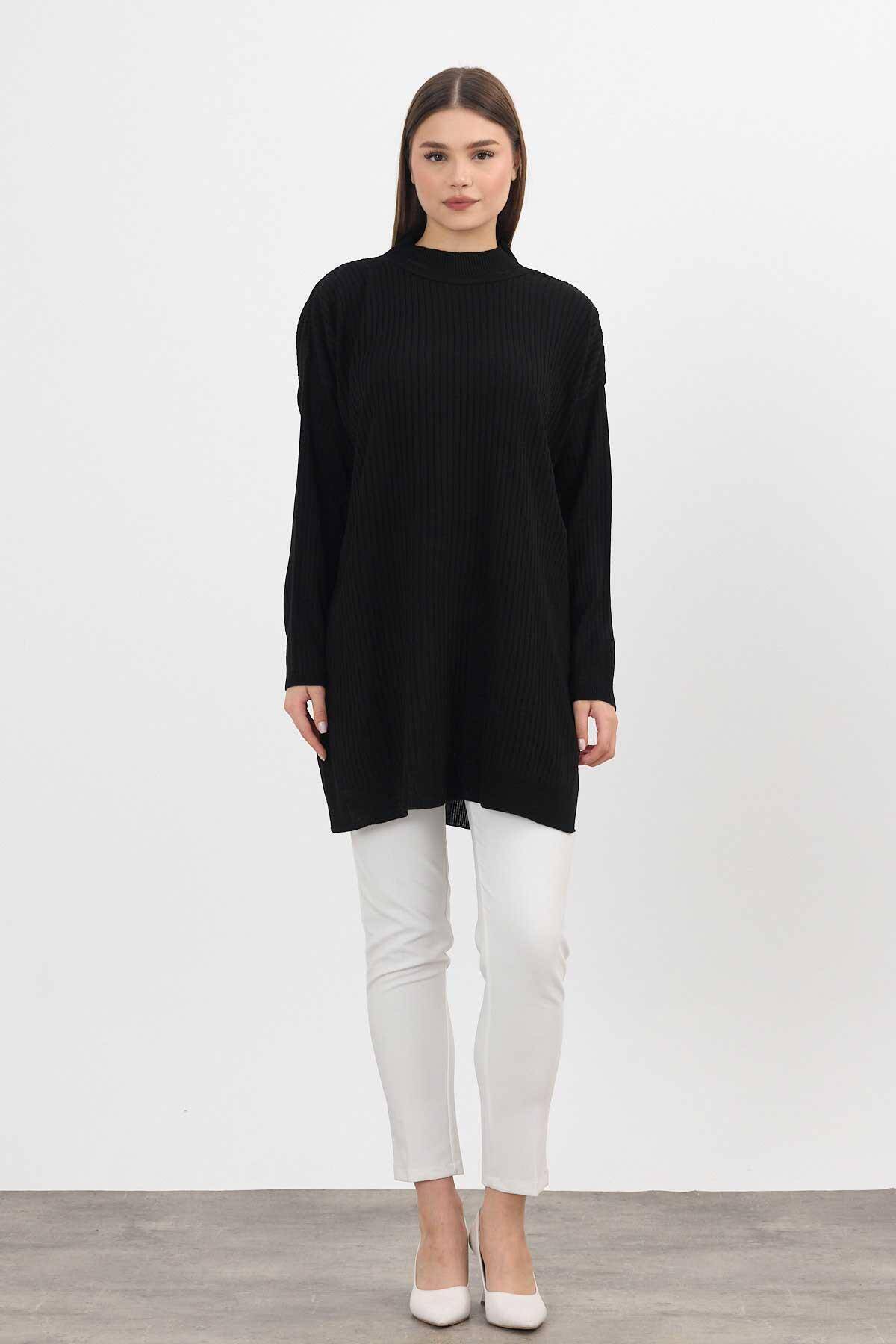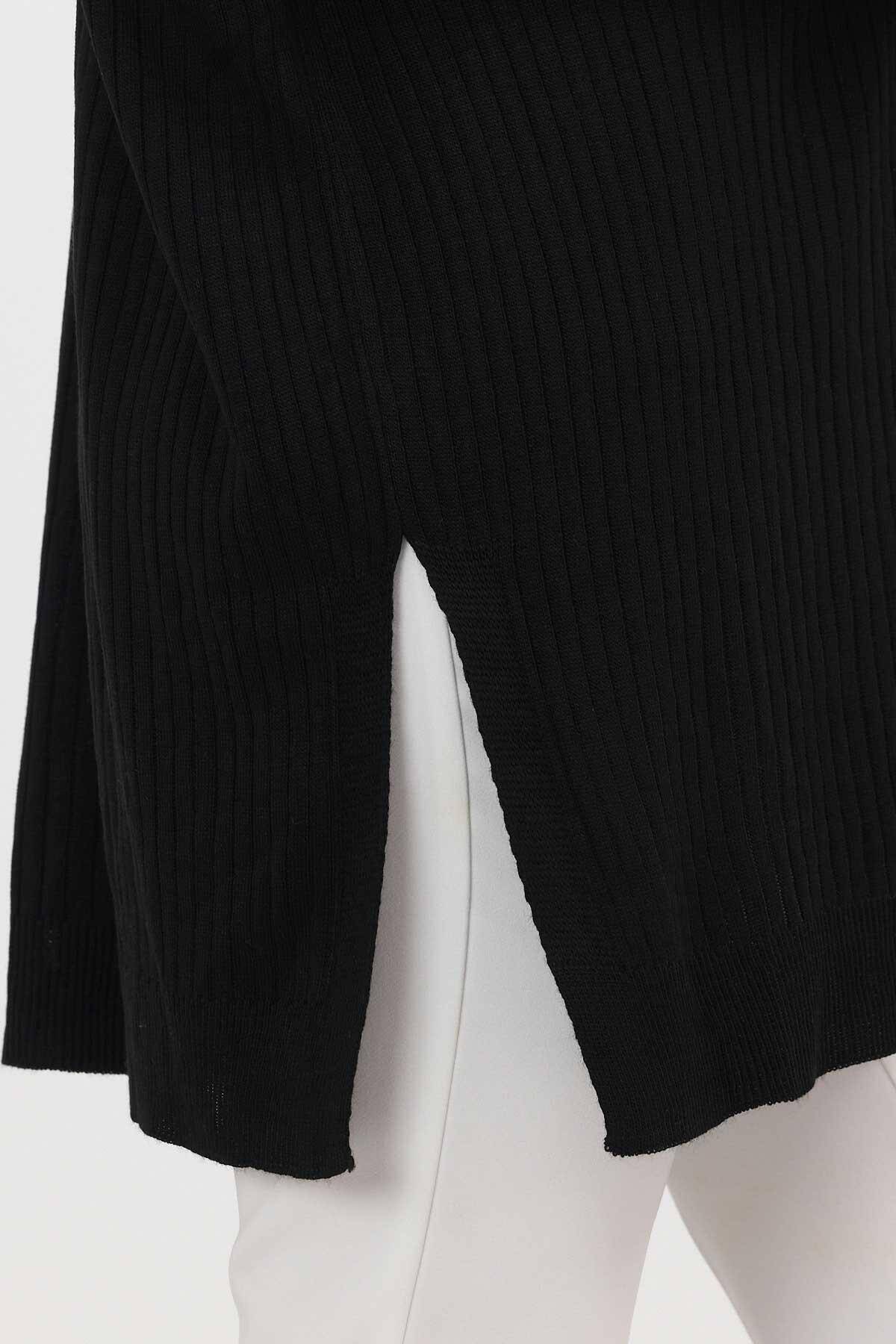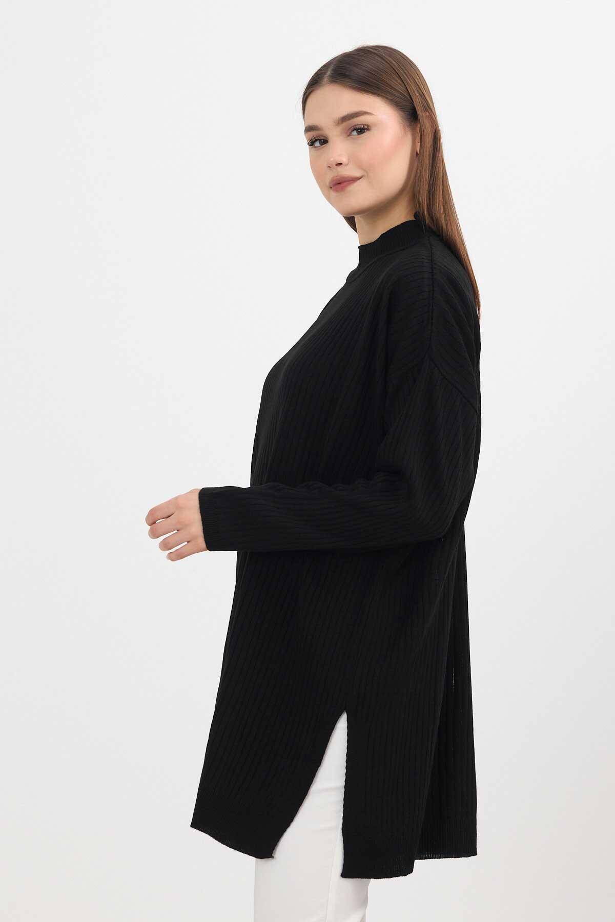 22131 Yırtmaç Detay Fitilli Tunik Siyah