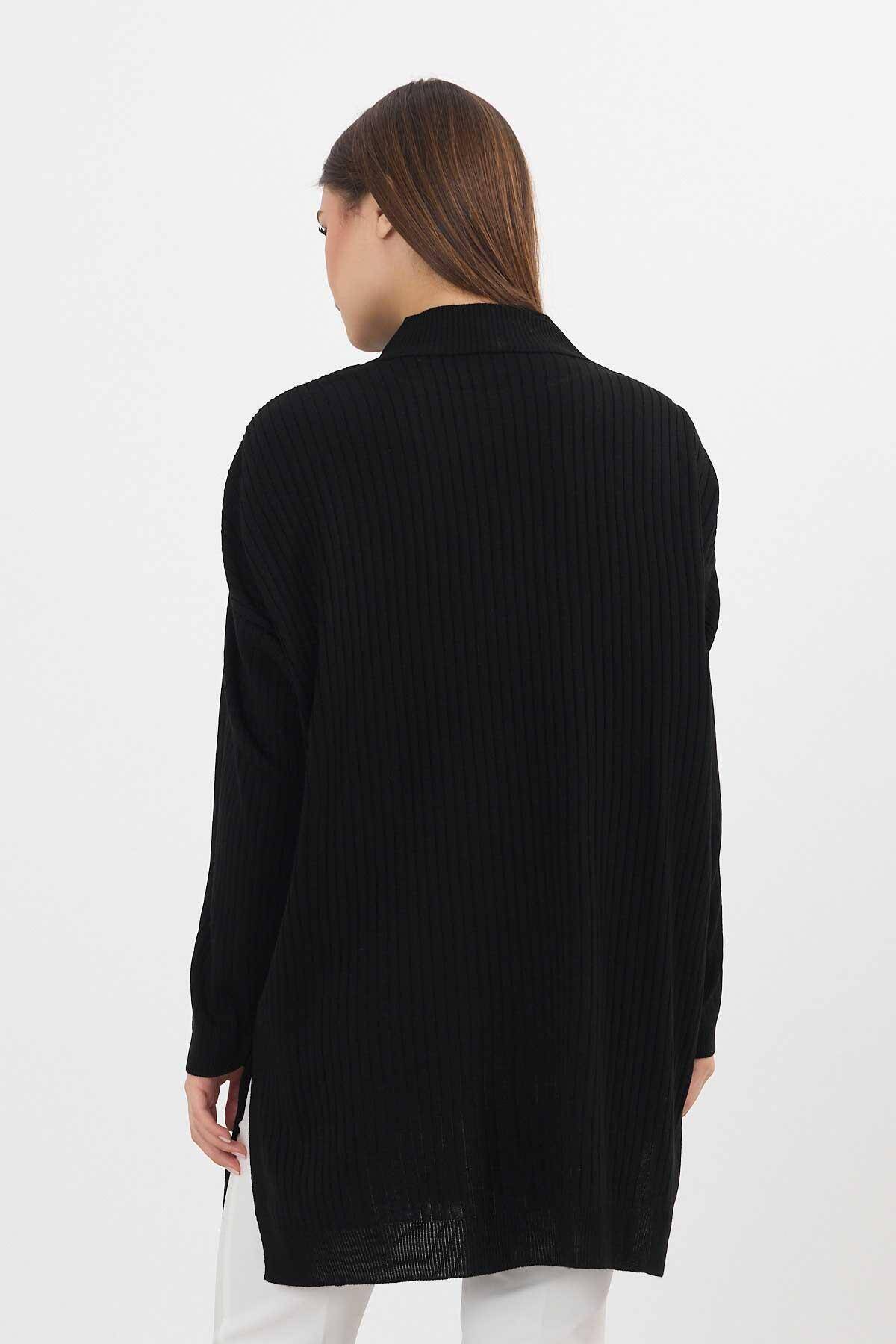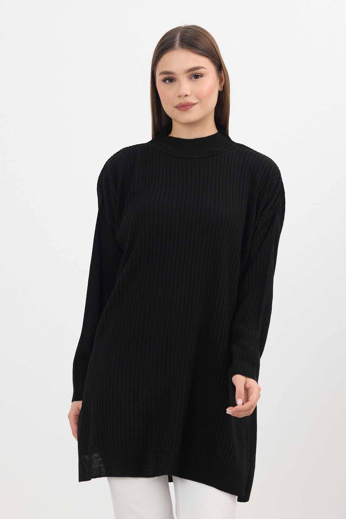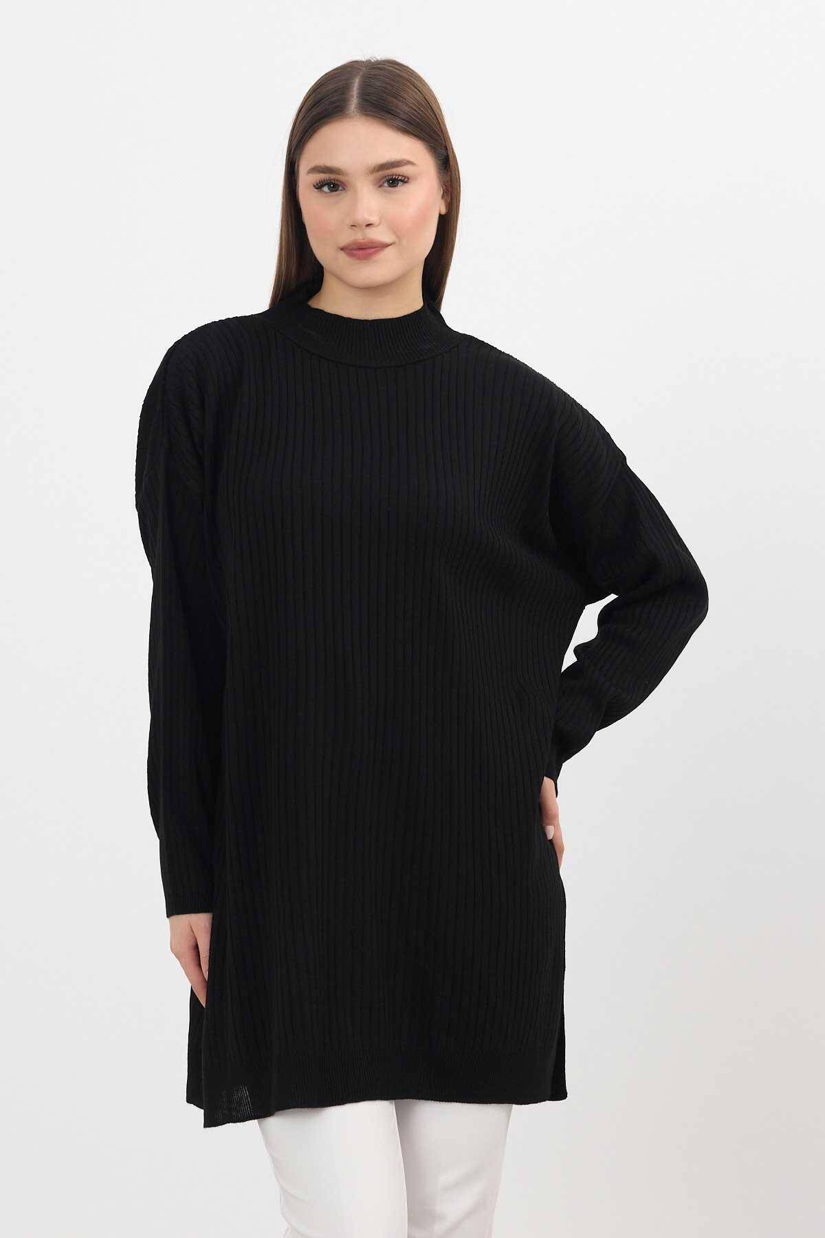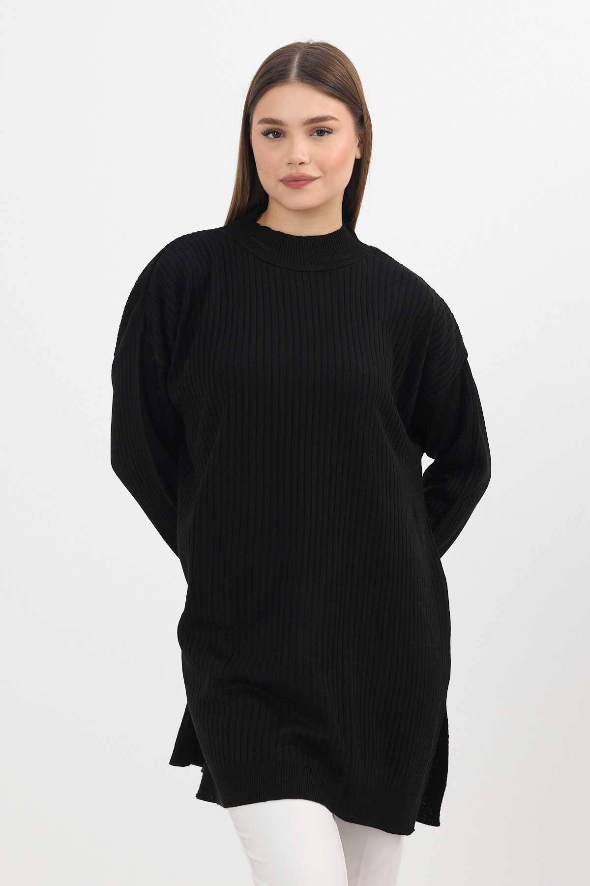 22131 Yırtmaç Detay Fitilli Tunik Siyah
