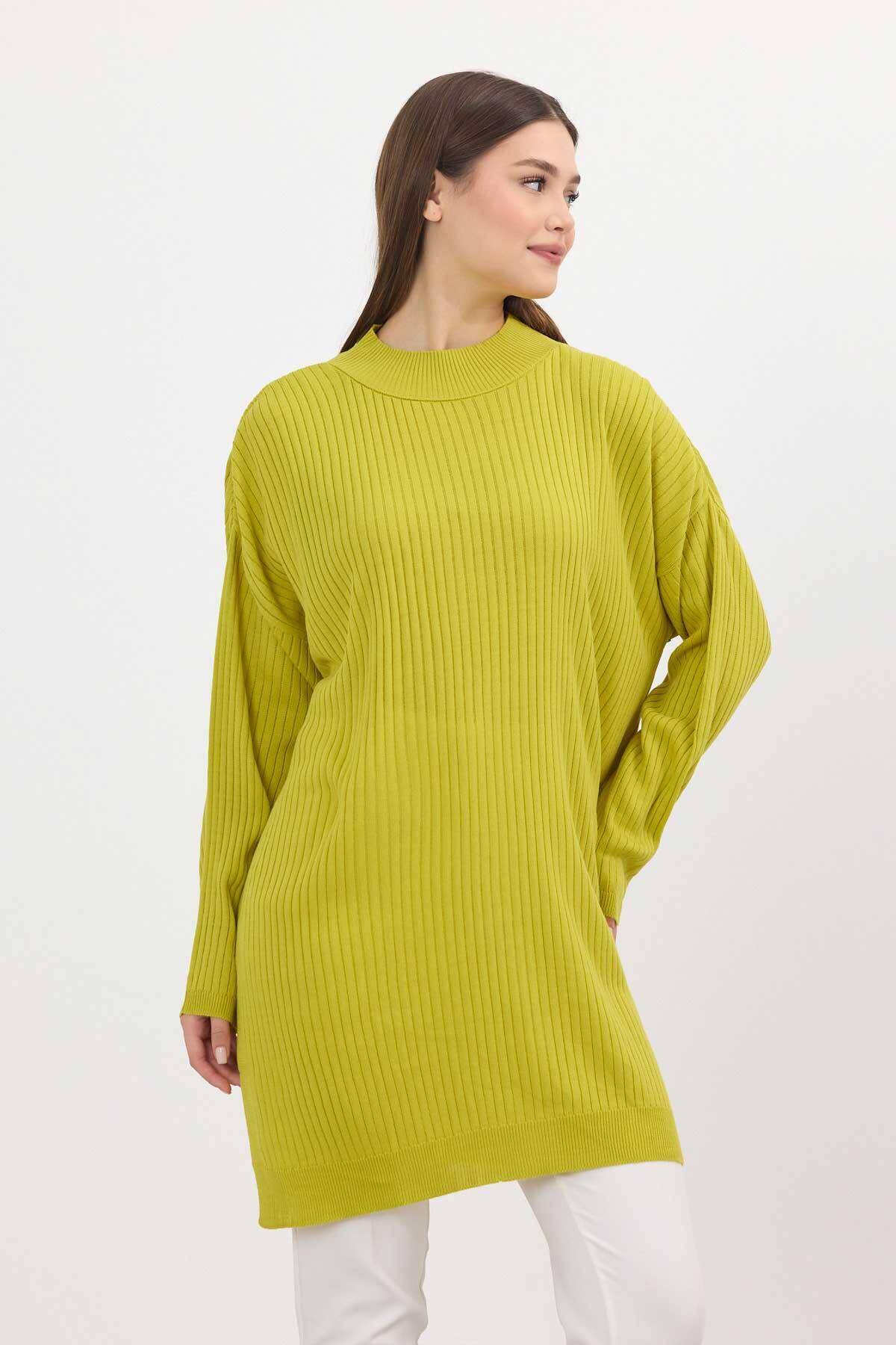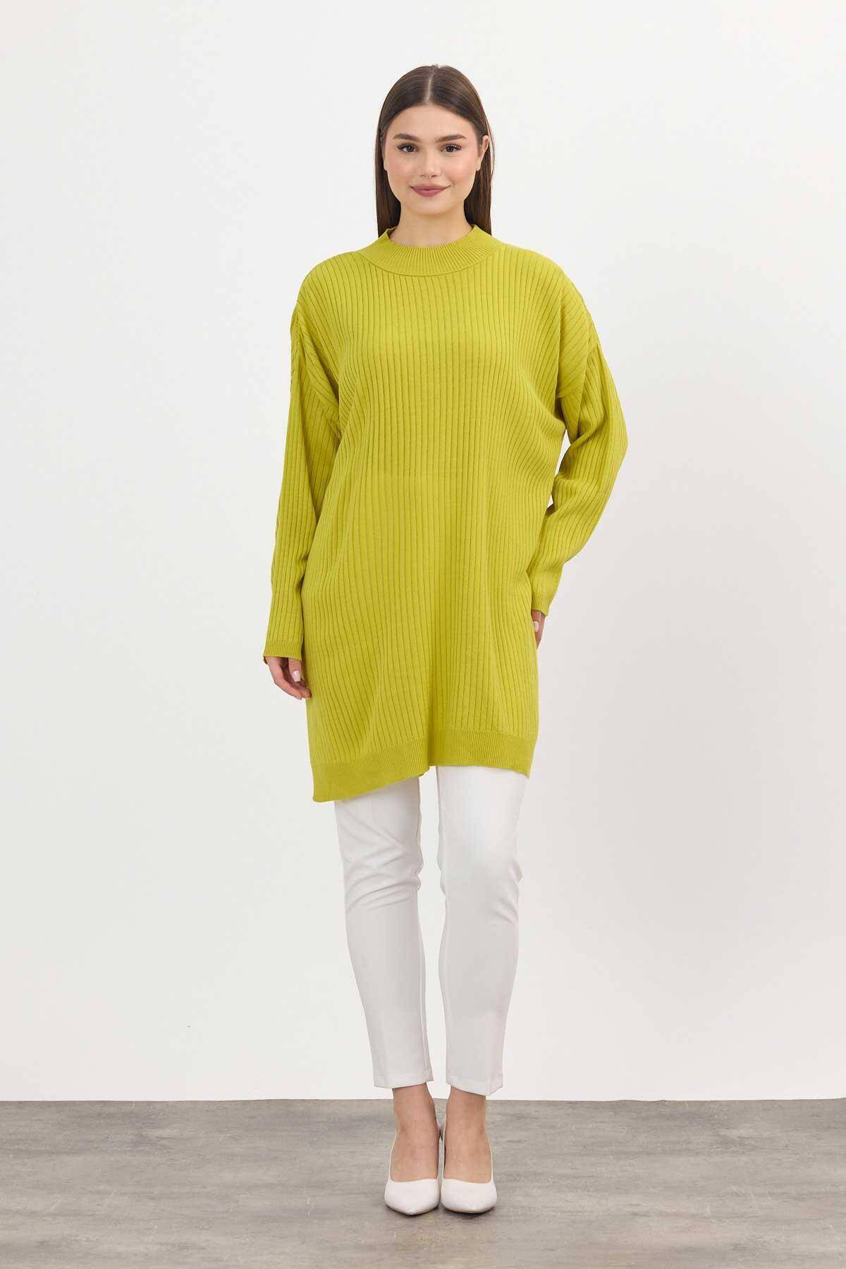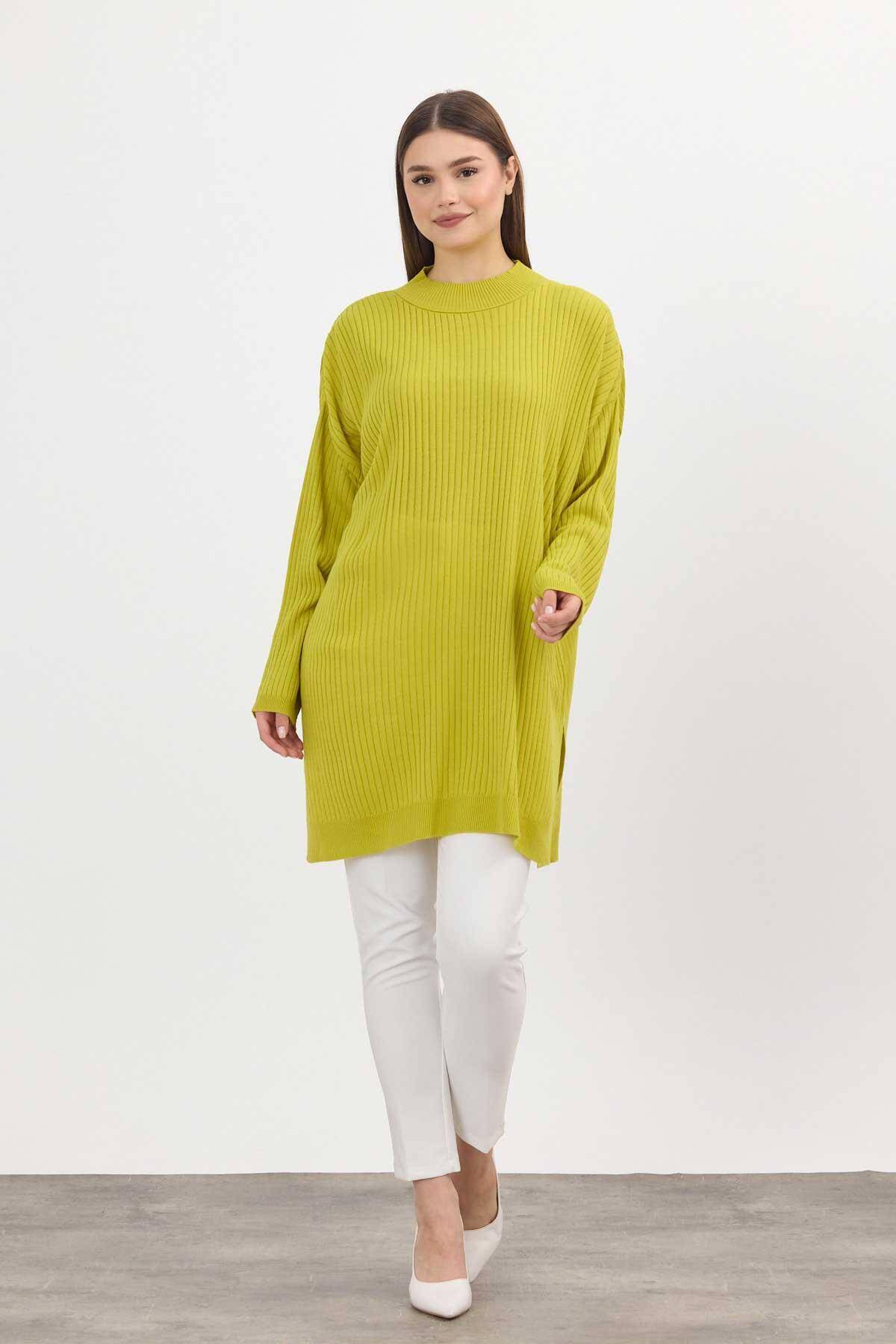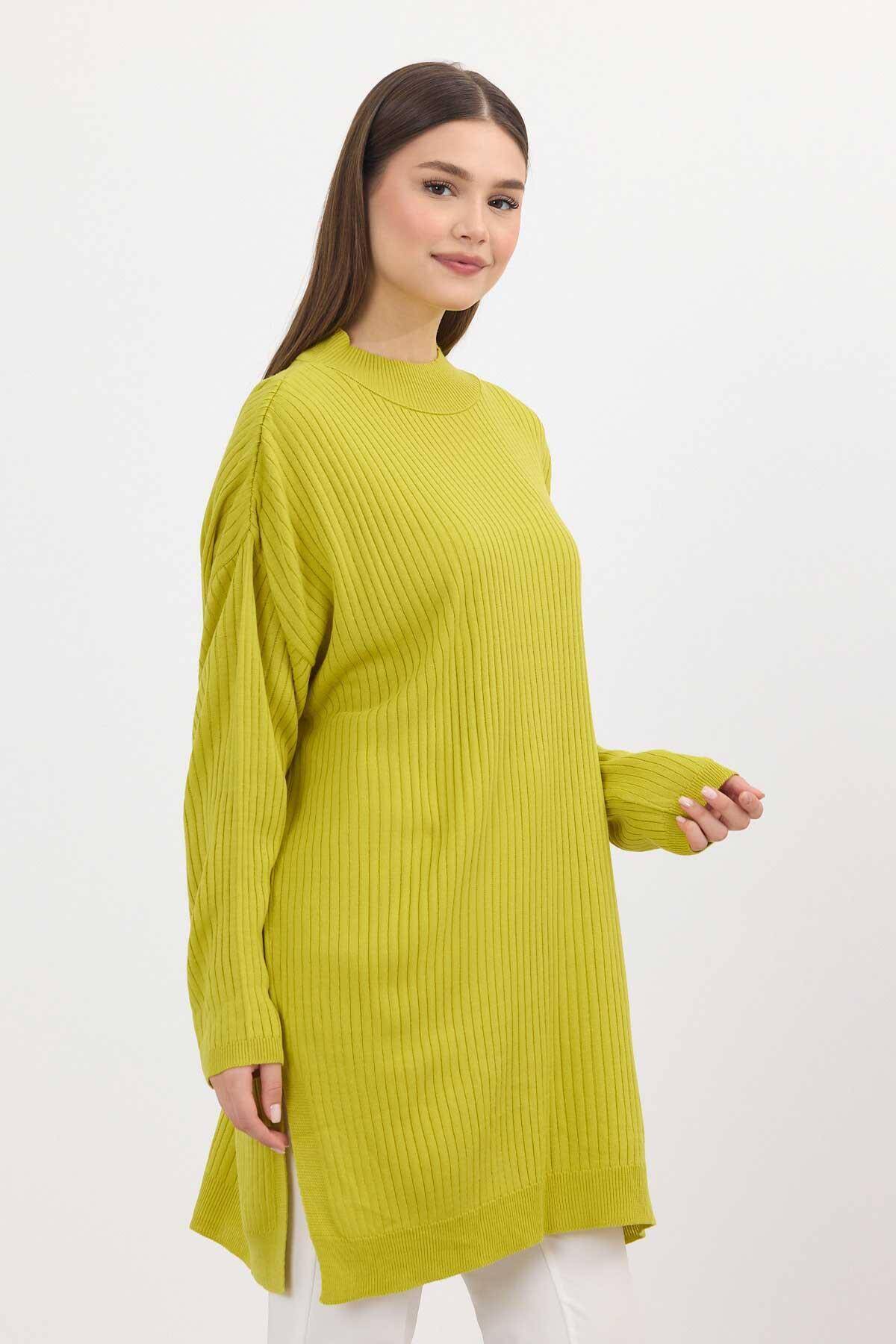 22131 Yırtmaç Detay Fitilli Tunik Yağ Yeşili