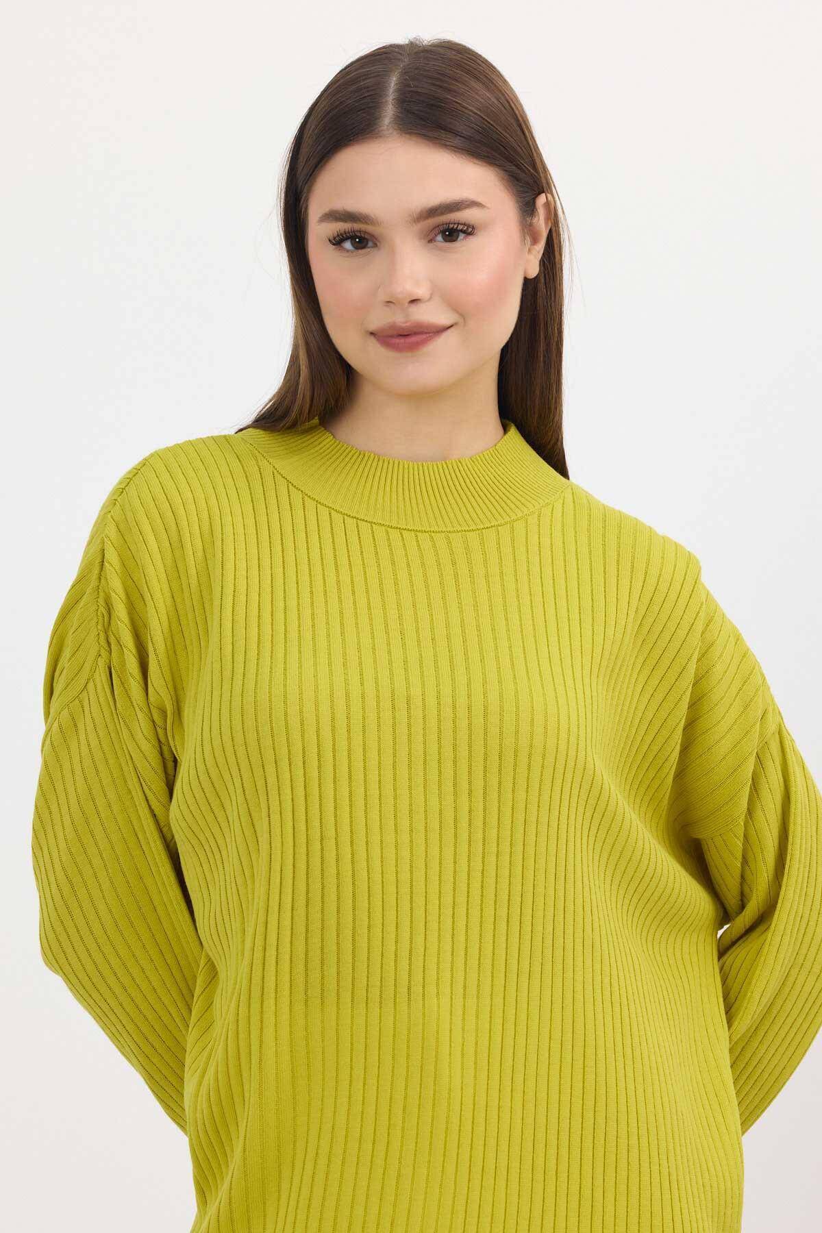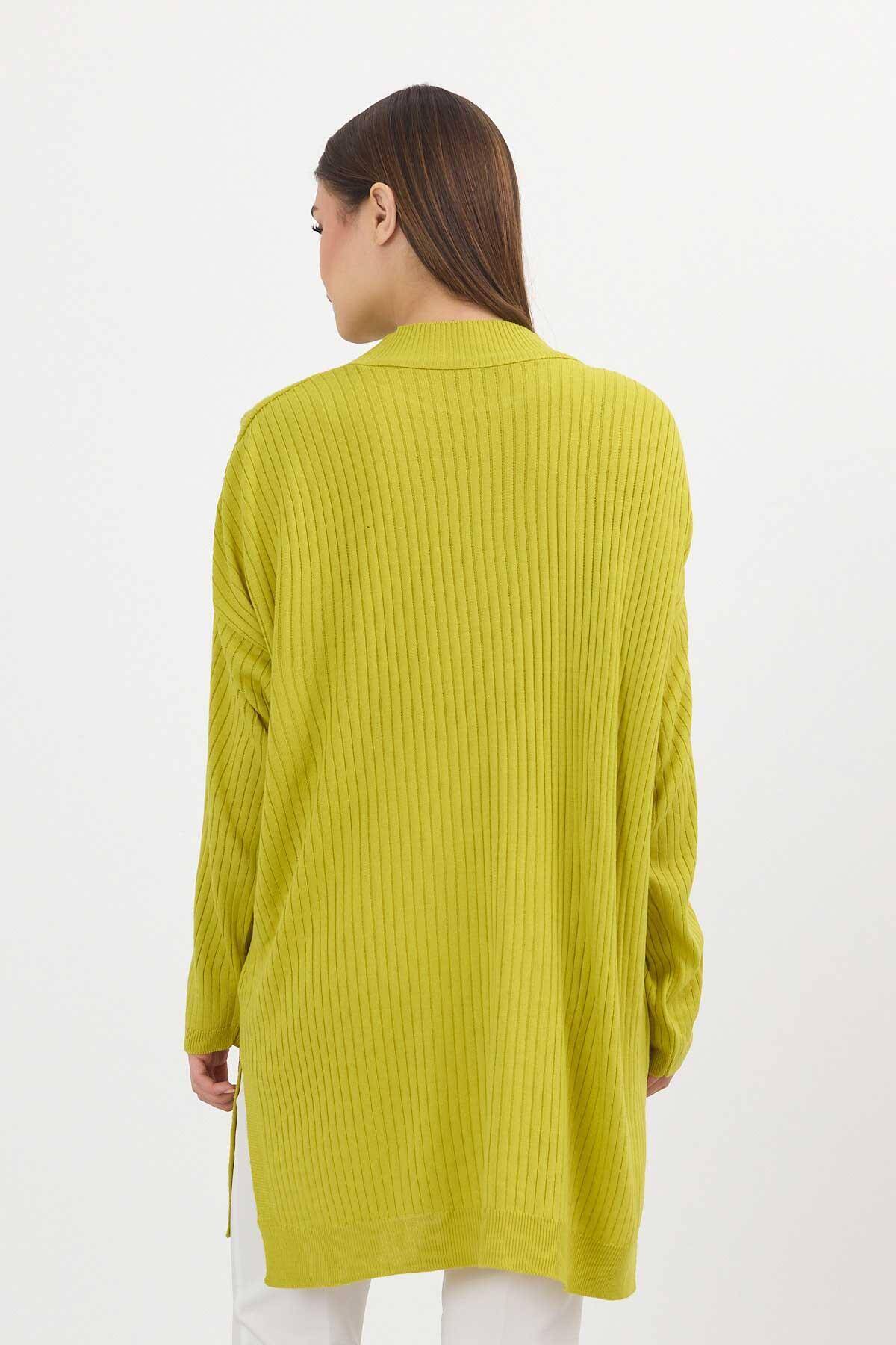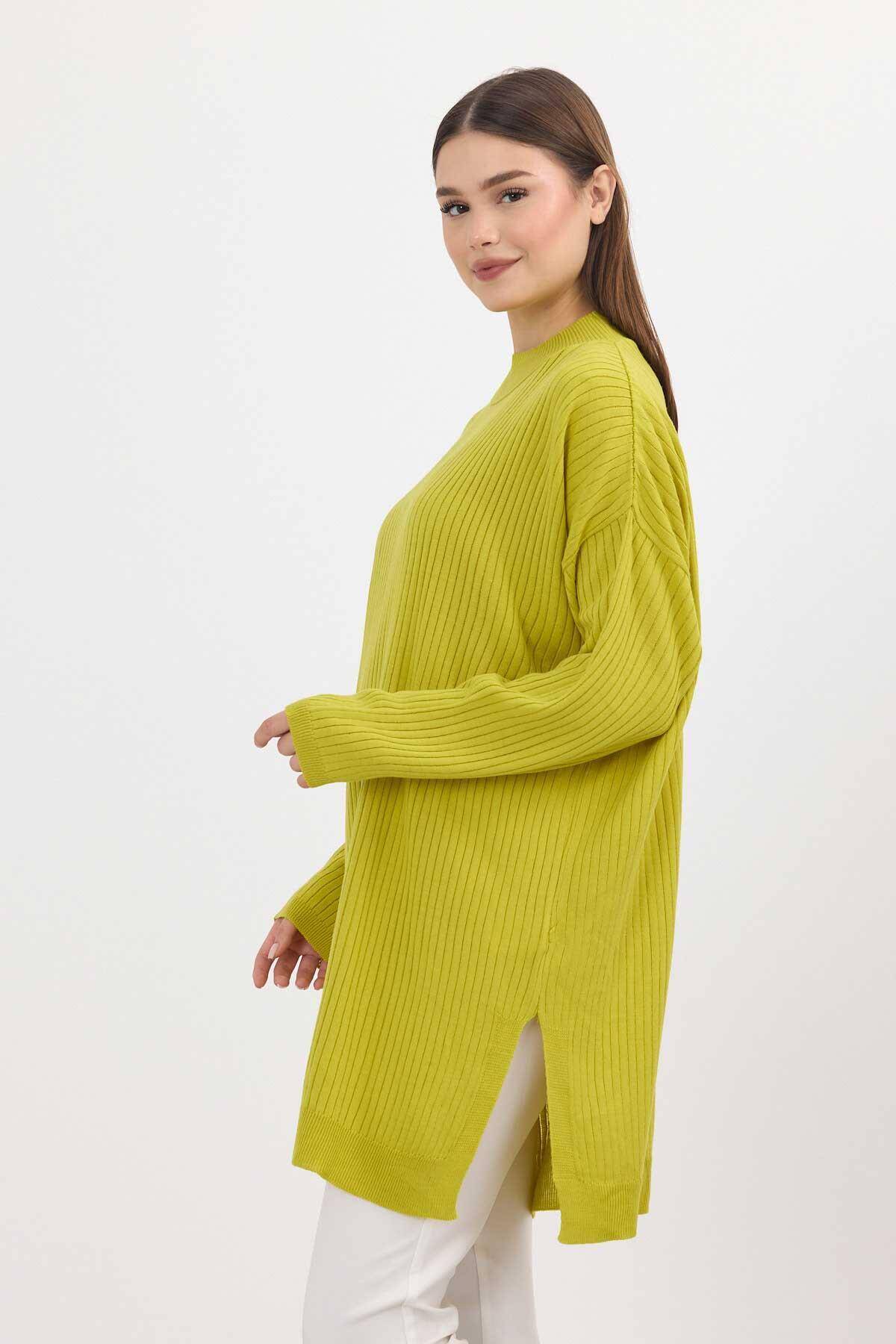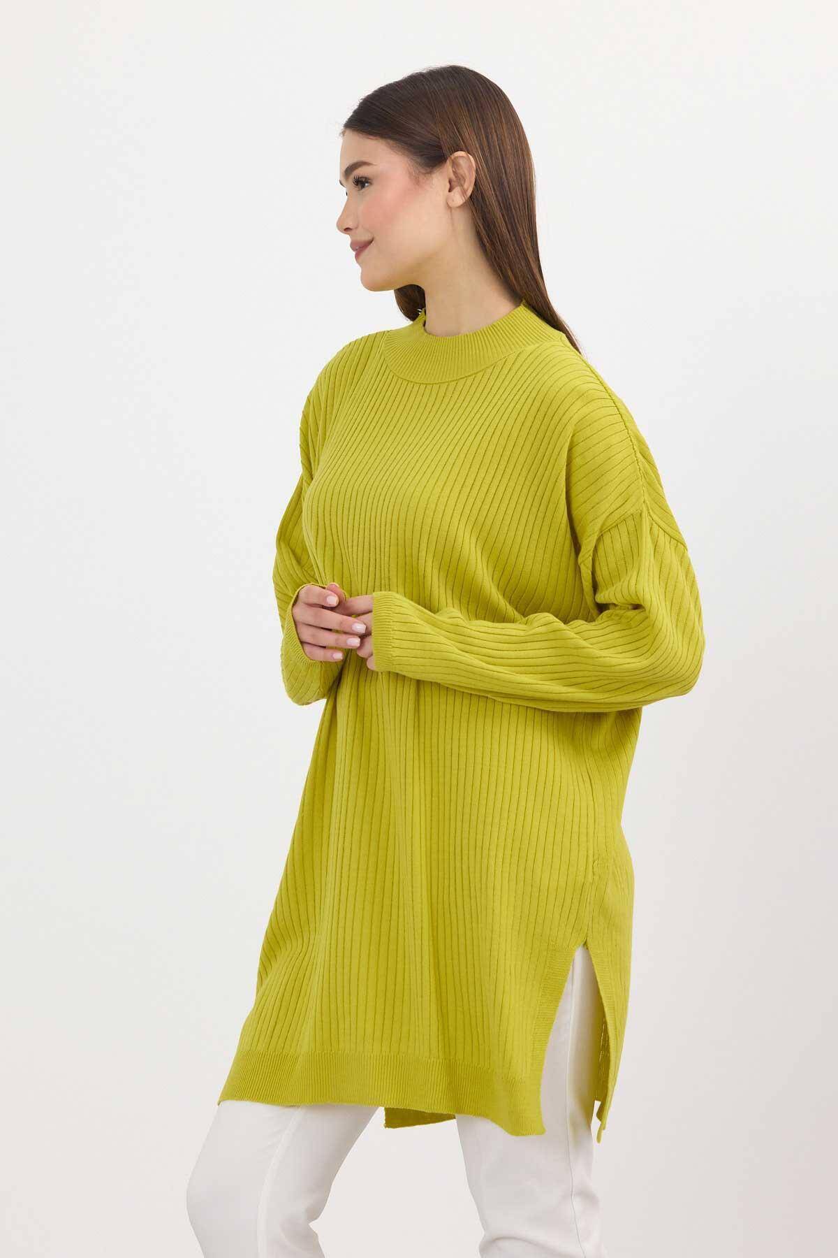 22131 Yırtmaç Detay Fitilli Tunik Yağ Yeşili
