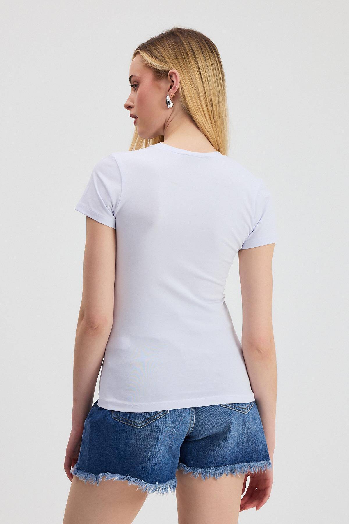 Beyaz Deri Kemer Detaylı Etnik Desenli Kimono 4363A