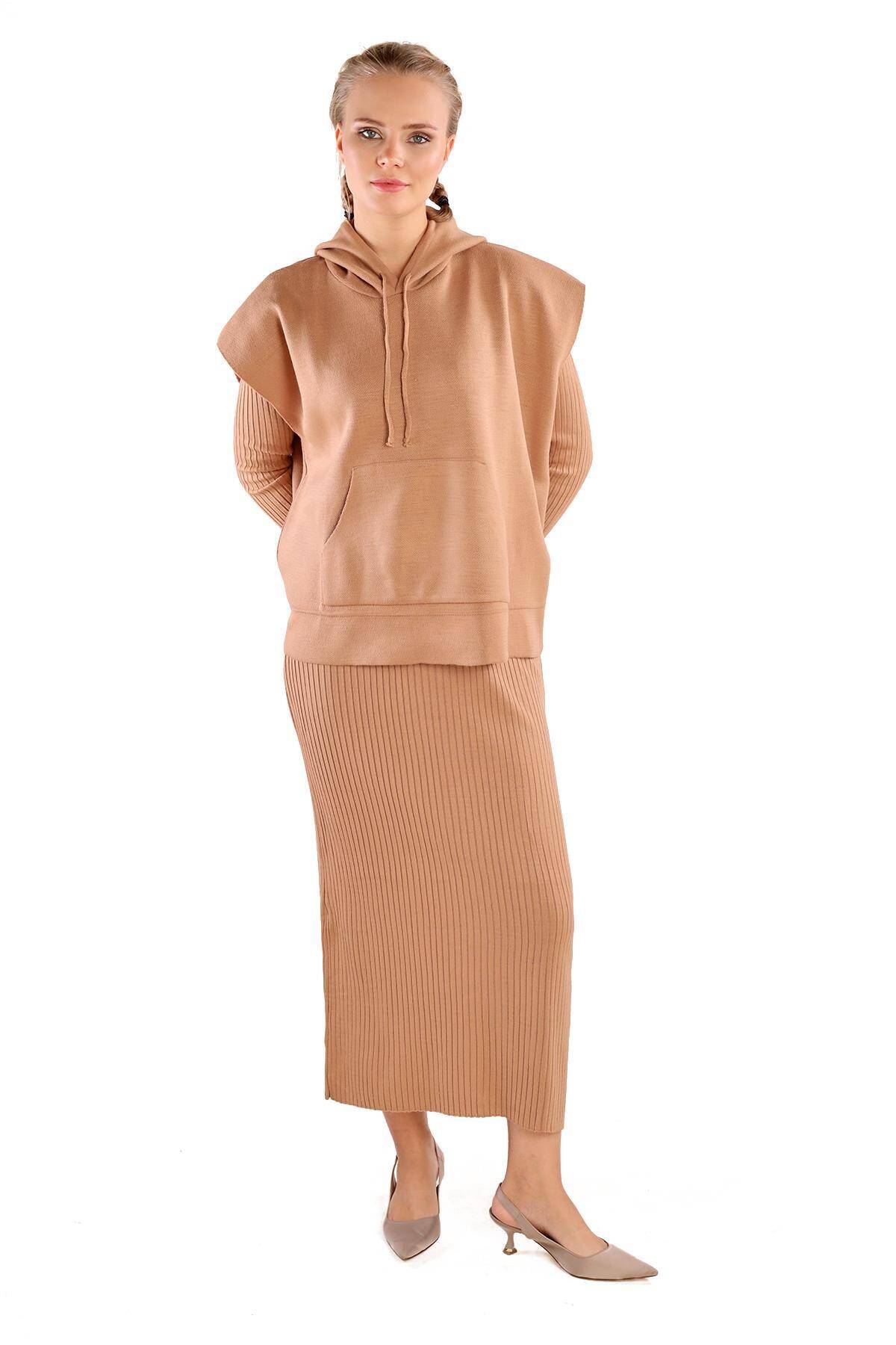 Bisküvi Kapüşonlu Cepli Fermuarlı Kap 4572A