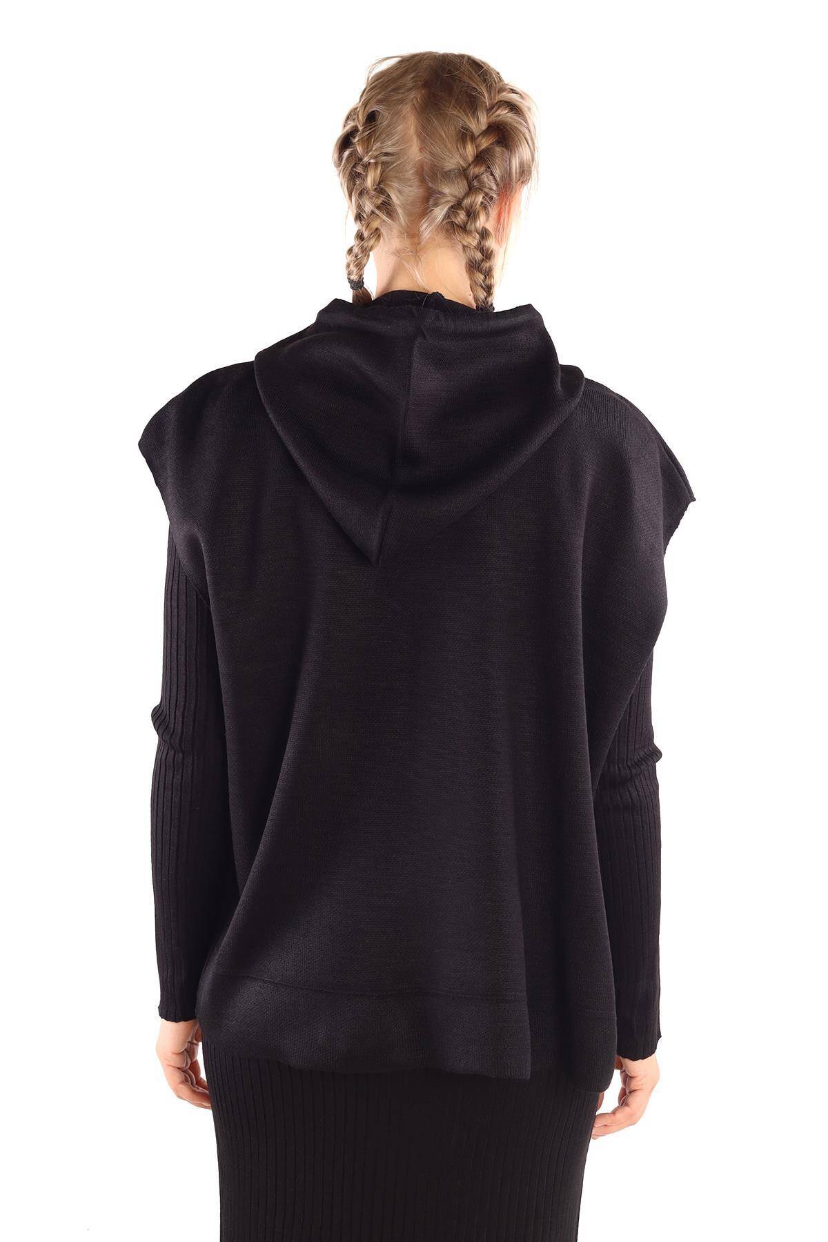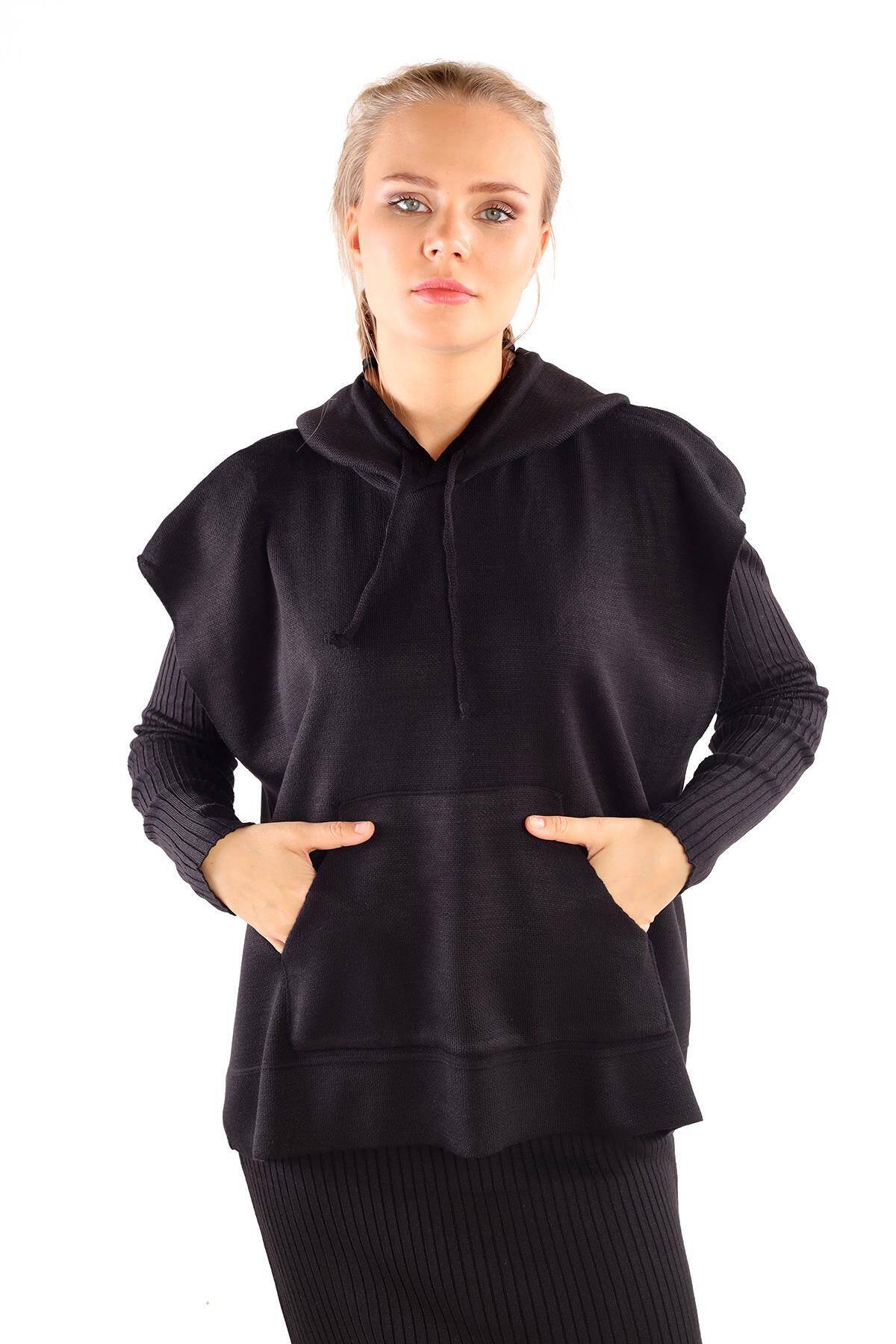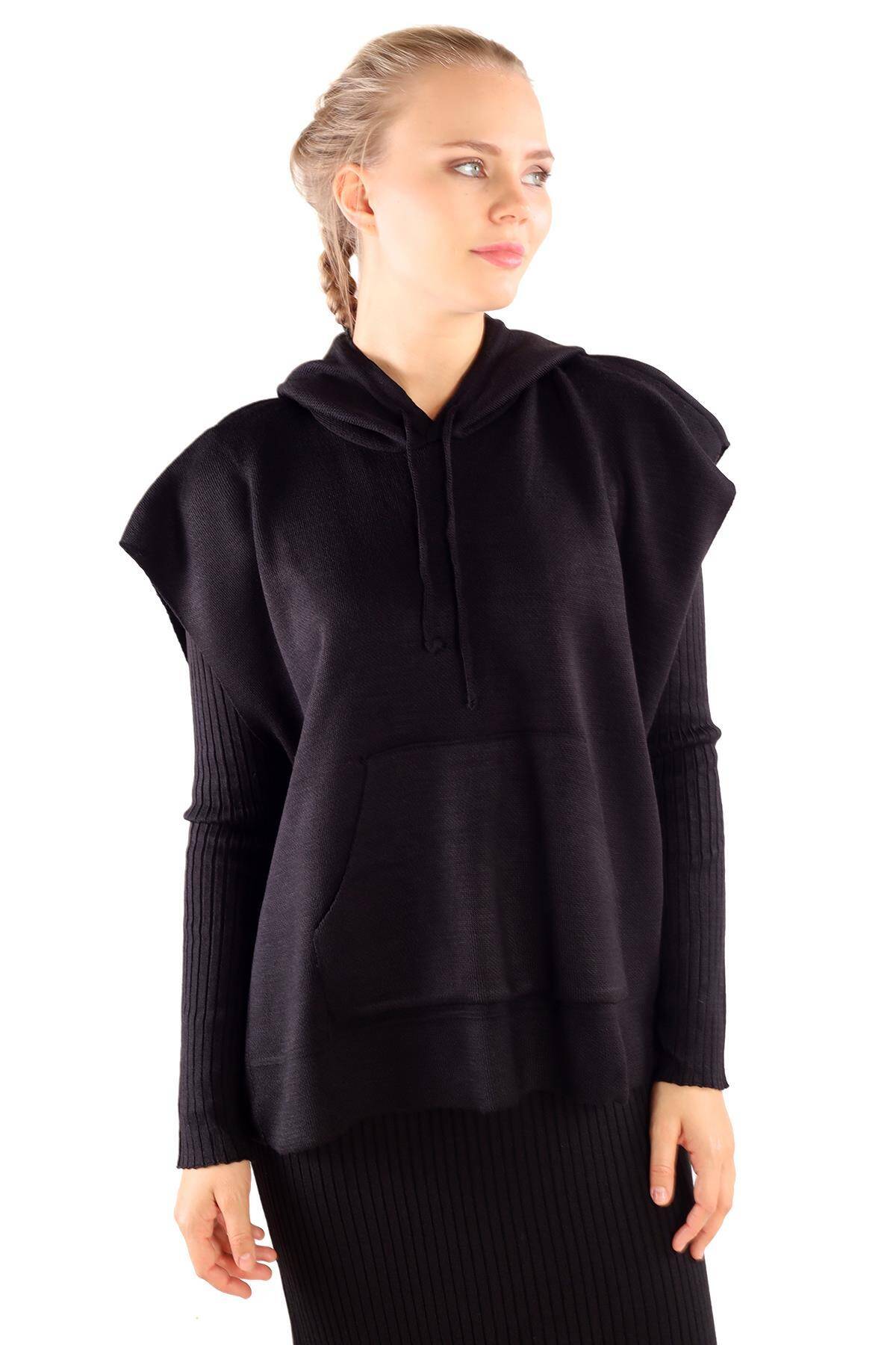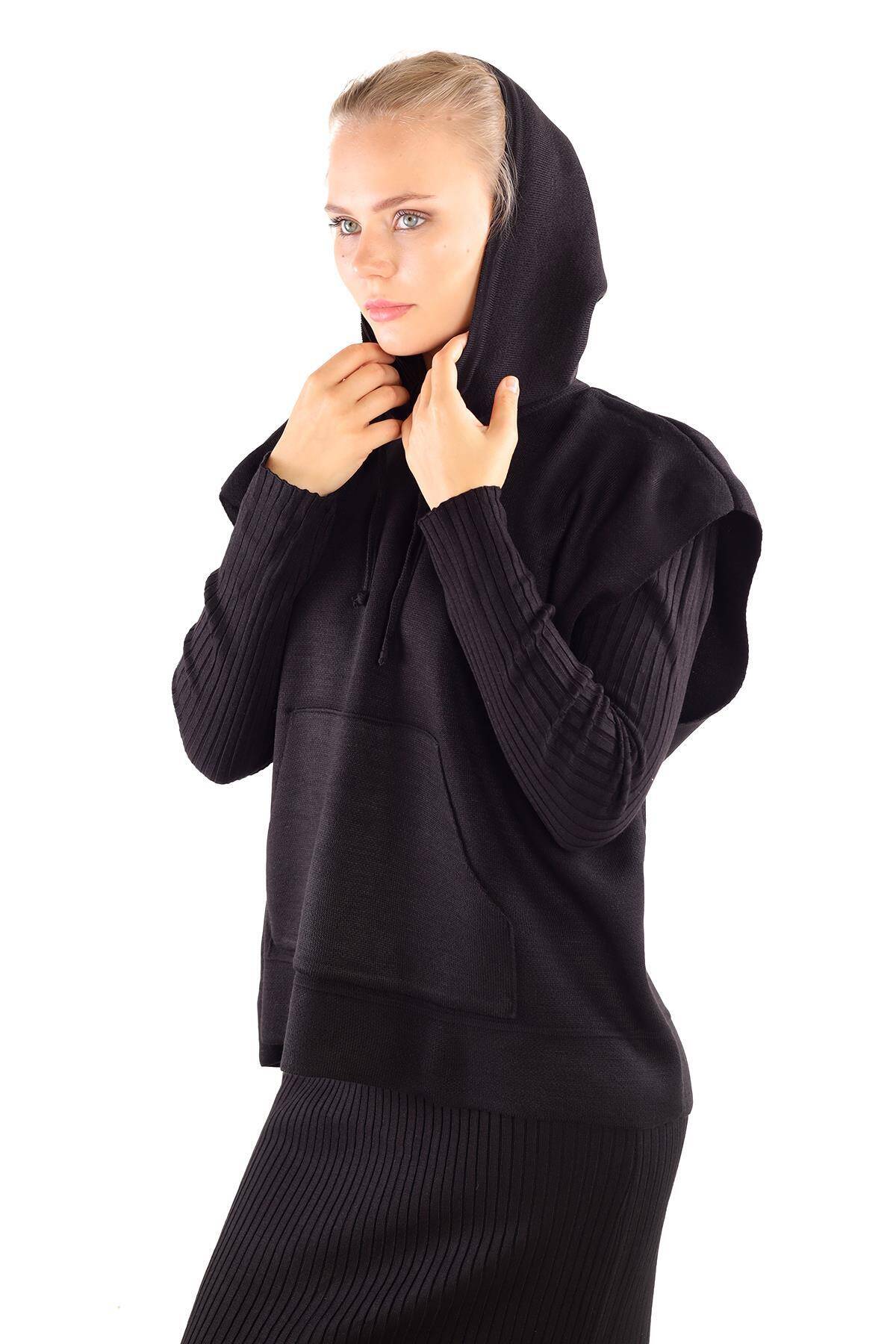 Siyah Kapüşonlu Cepli Fermuarlı Kap 4572A
