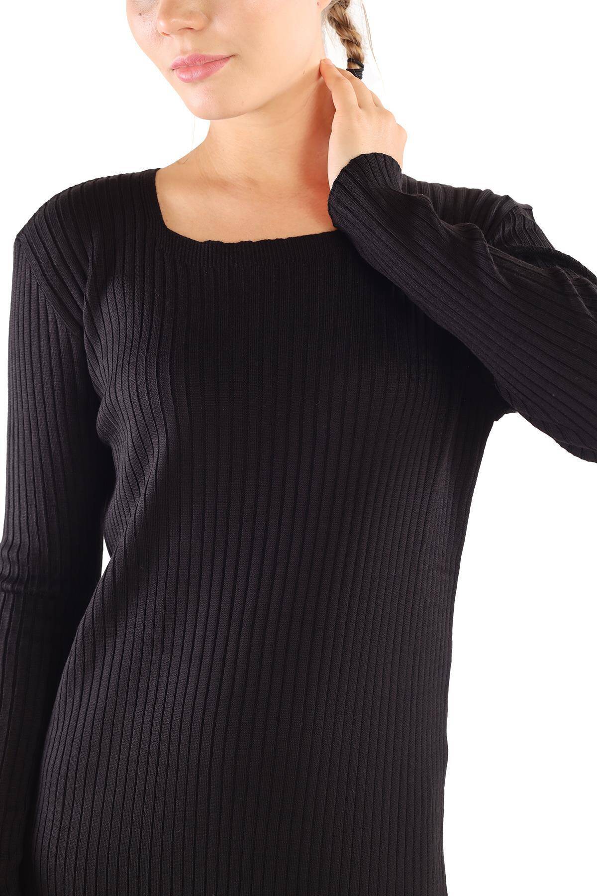 7149A Belden Bağlamalı Uzun Kaşe Kaban Siyah