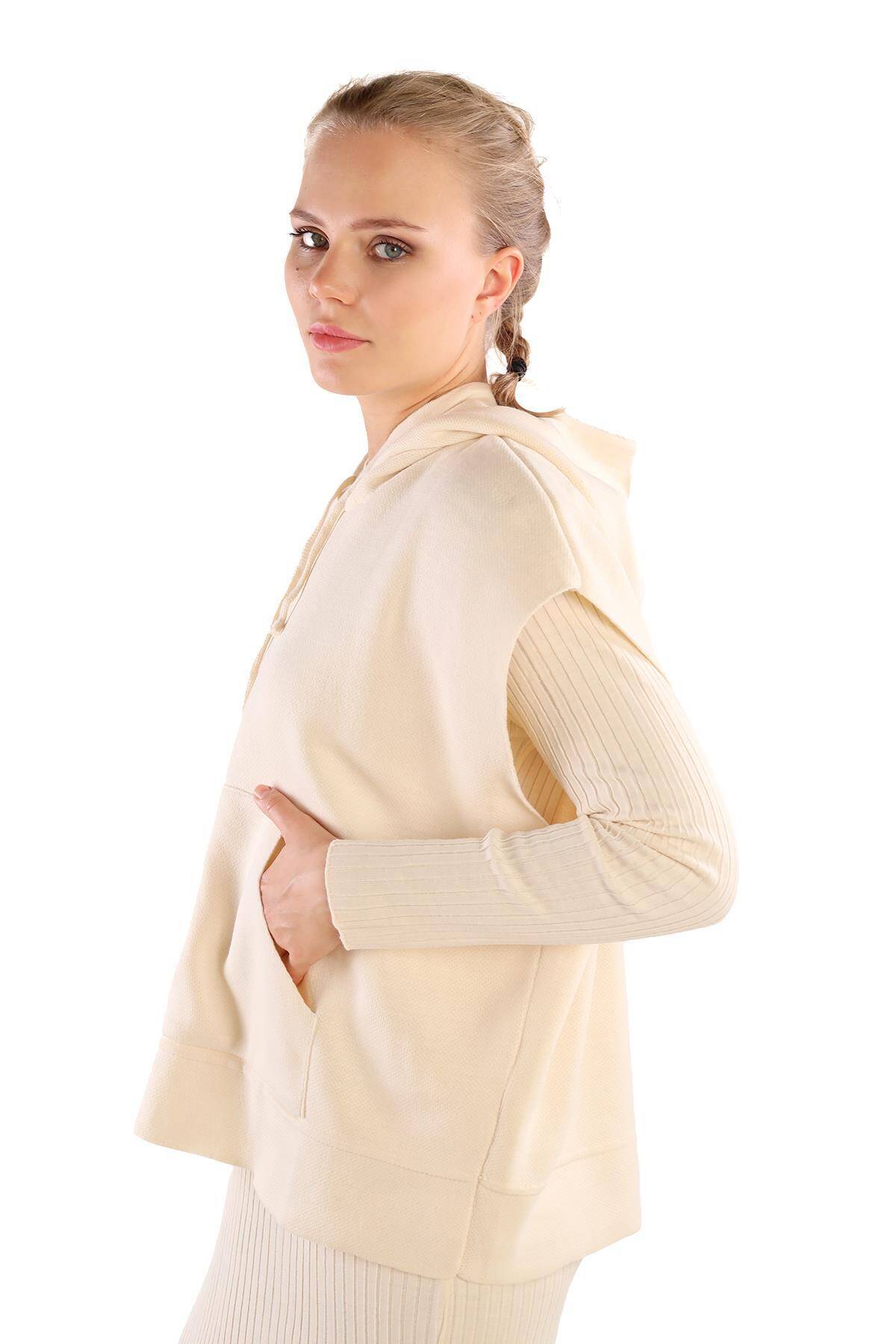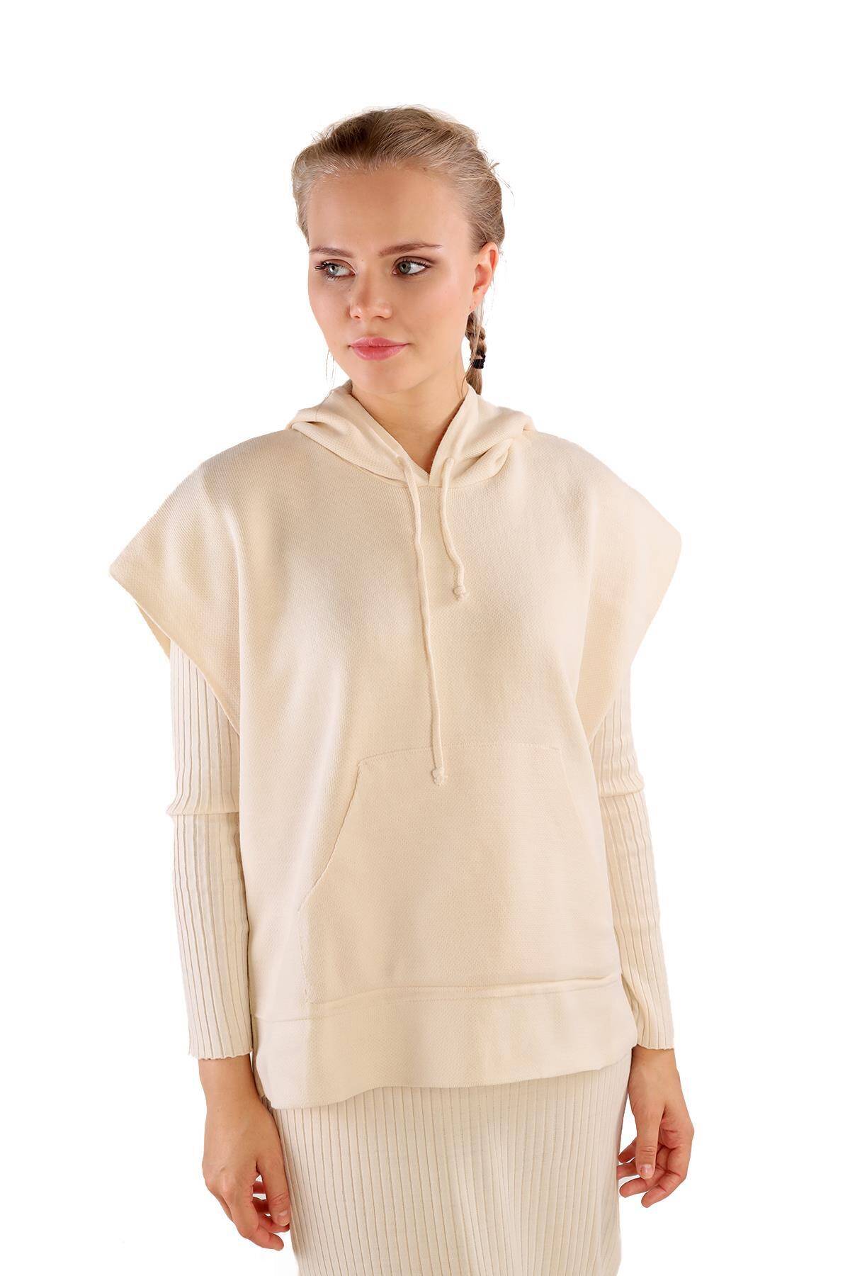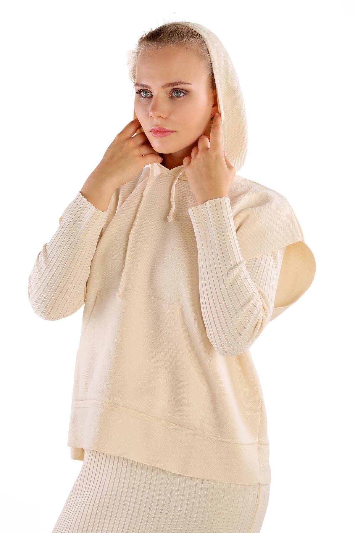 Bej Kapüşonlu Cepli Fermuarlı Kap 4572A