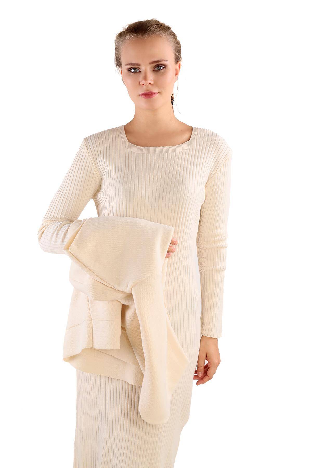 Beyaz Deri Kemer Detaylı Etnik Desenli Kimono 4363A
