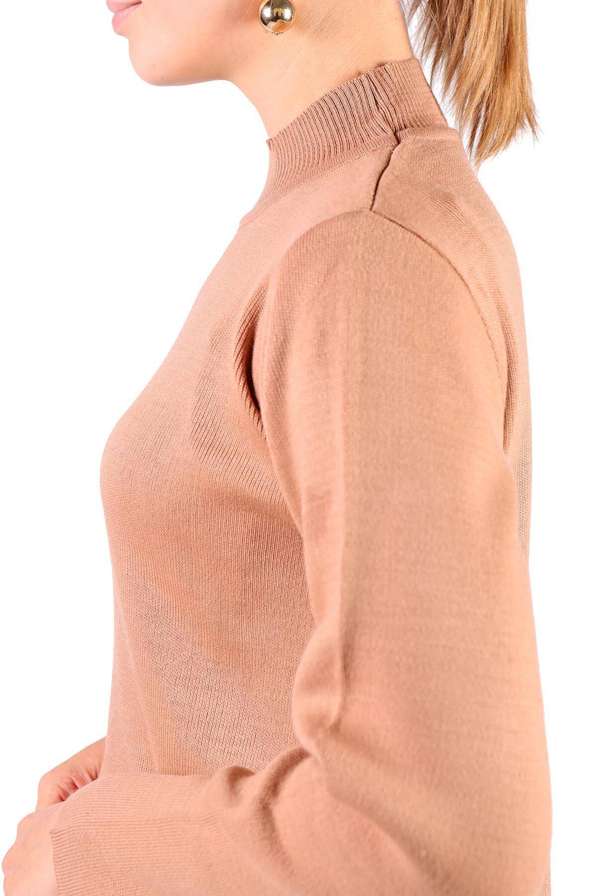 24151 Yarım Boğaz Kısa Triko Elbise Camel