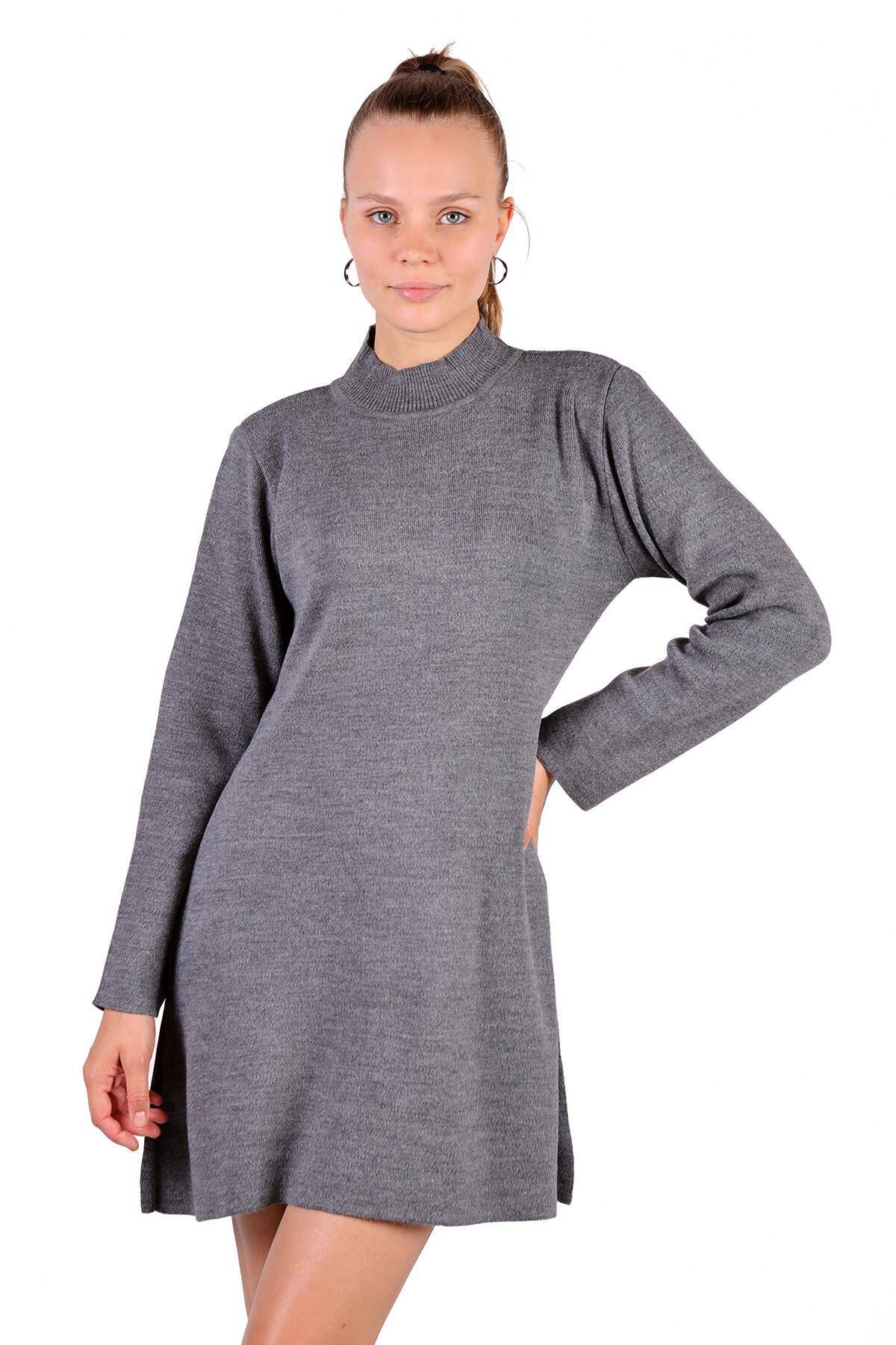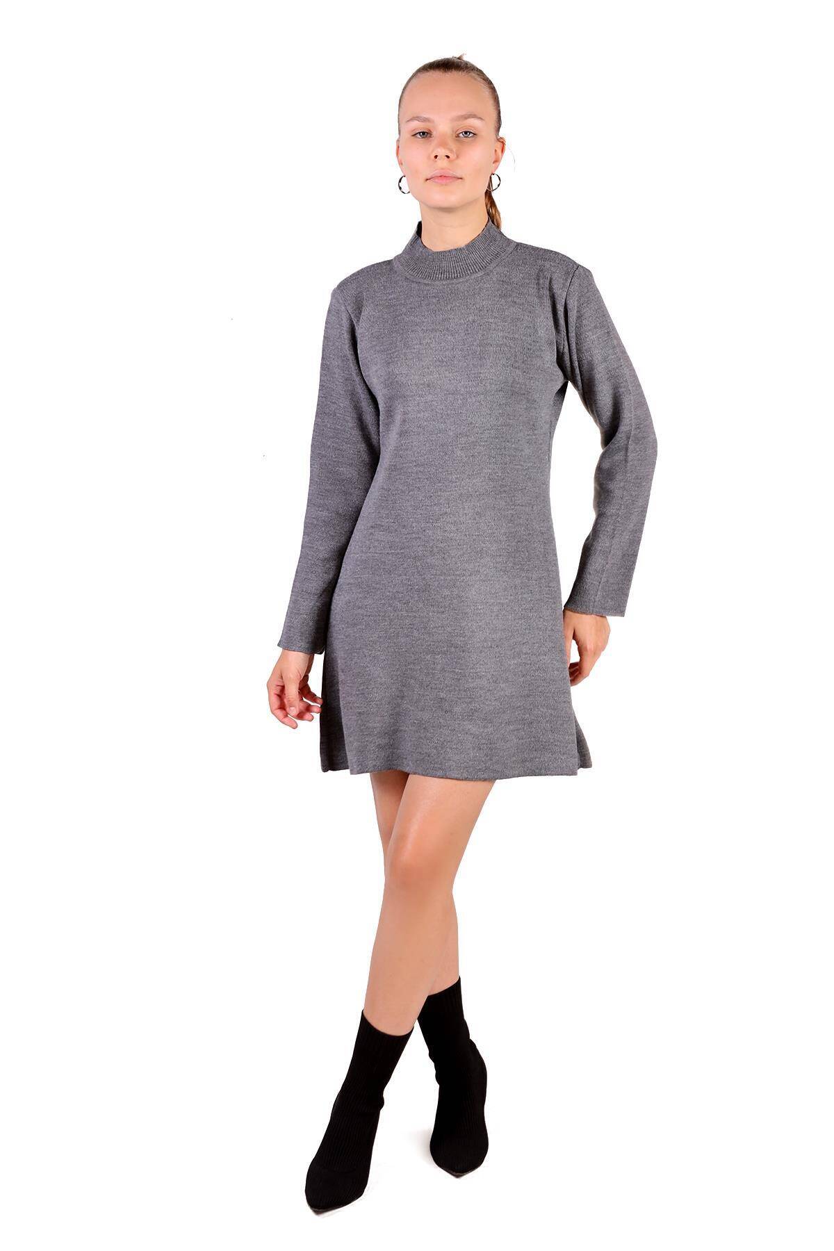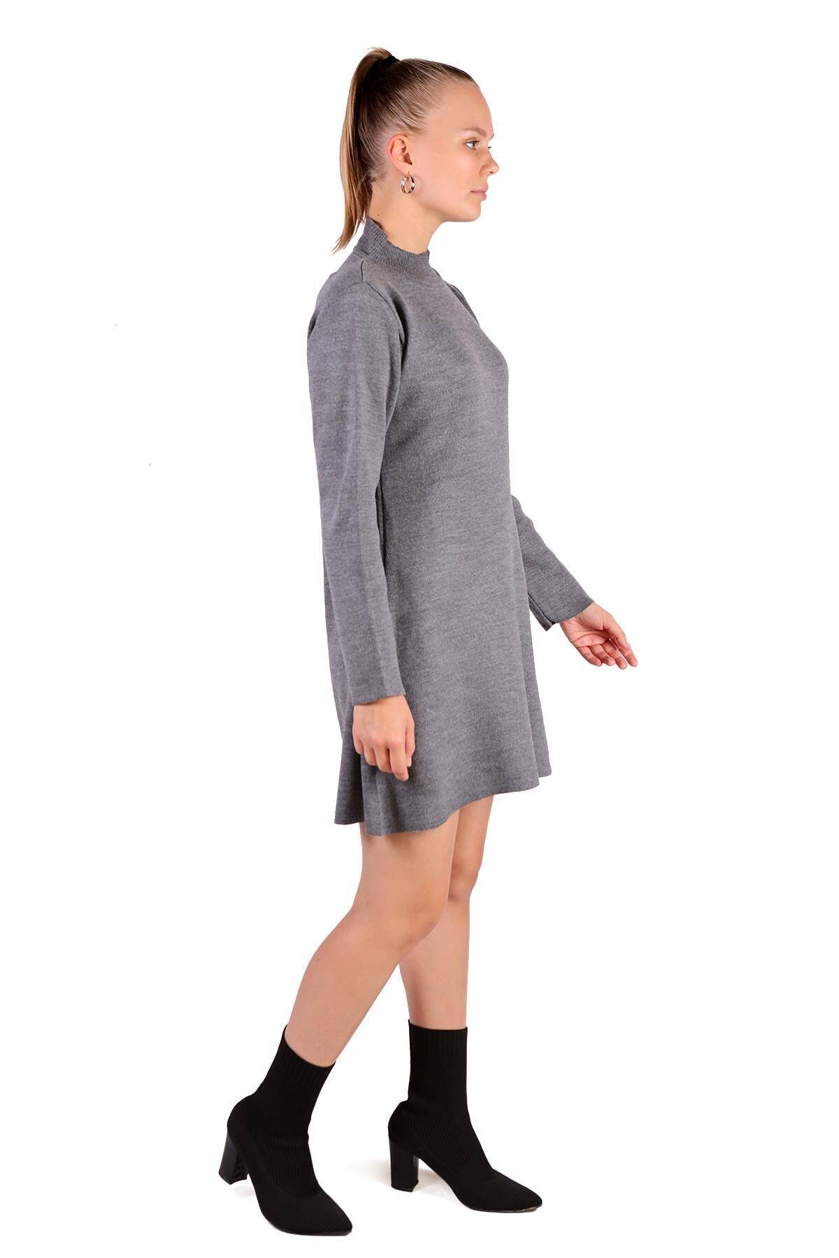 24151 Yarım Boğaz Kısa Triko Elbise Füme