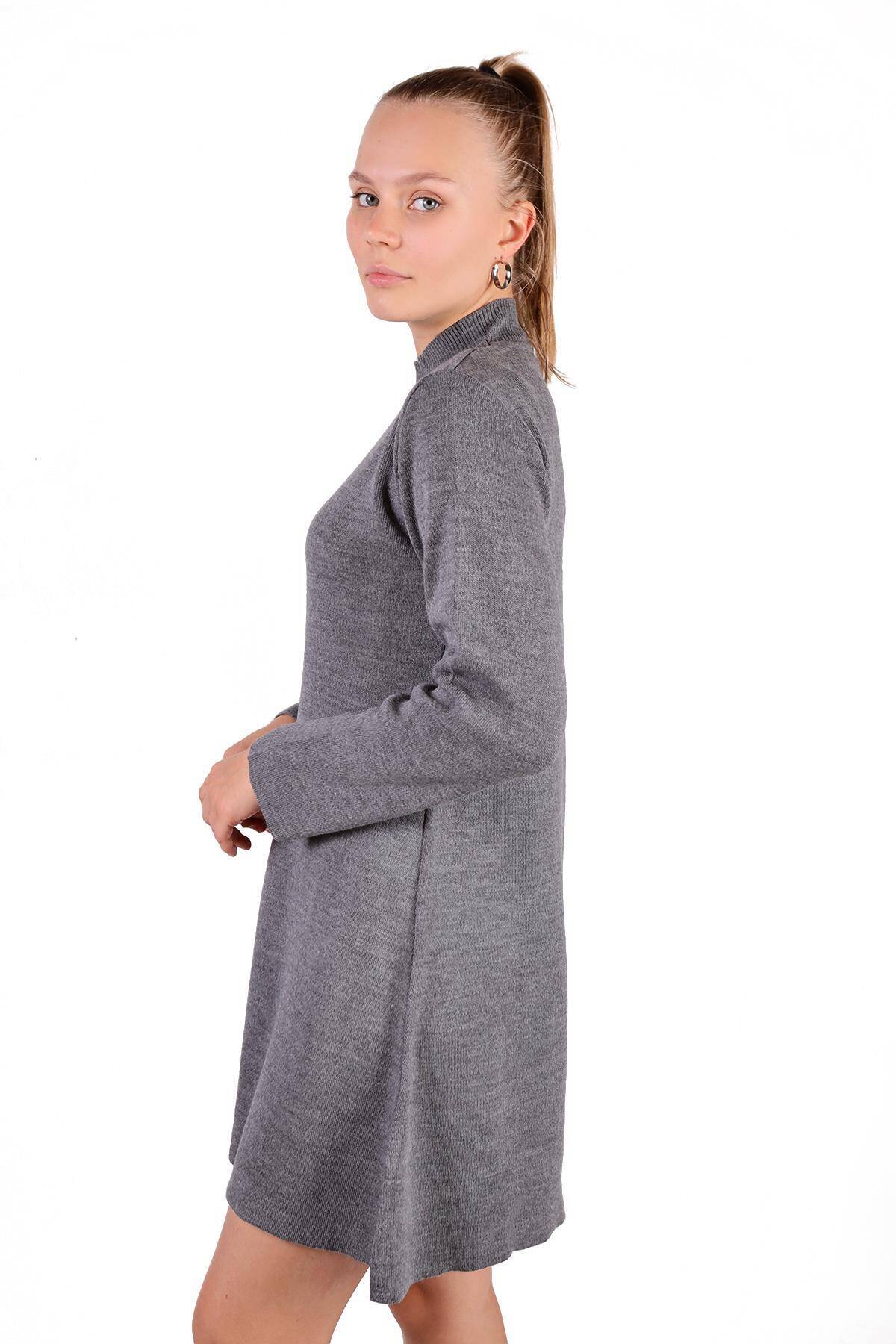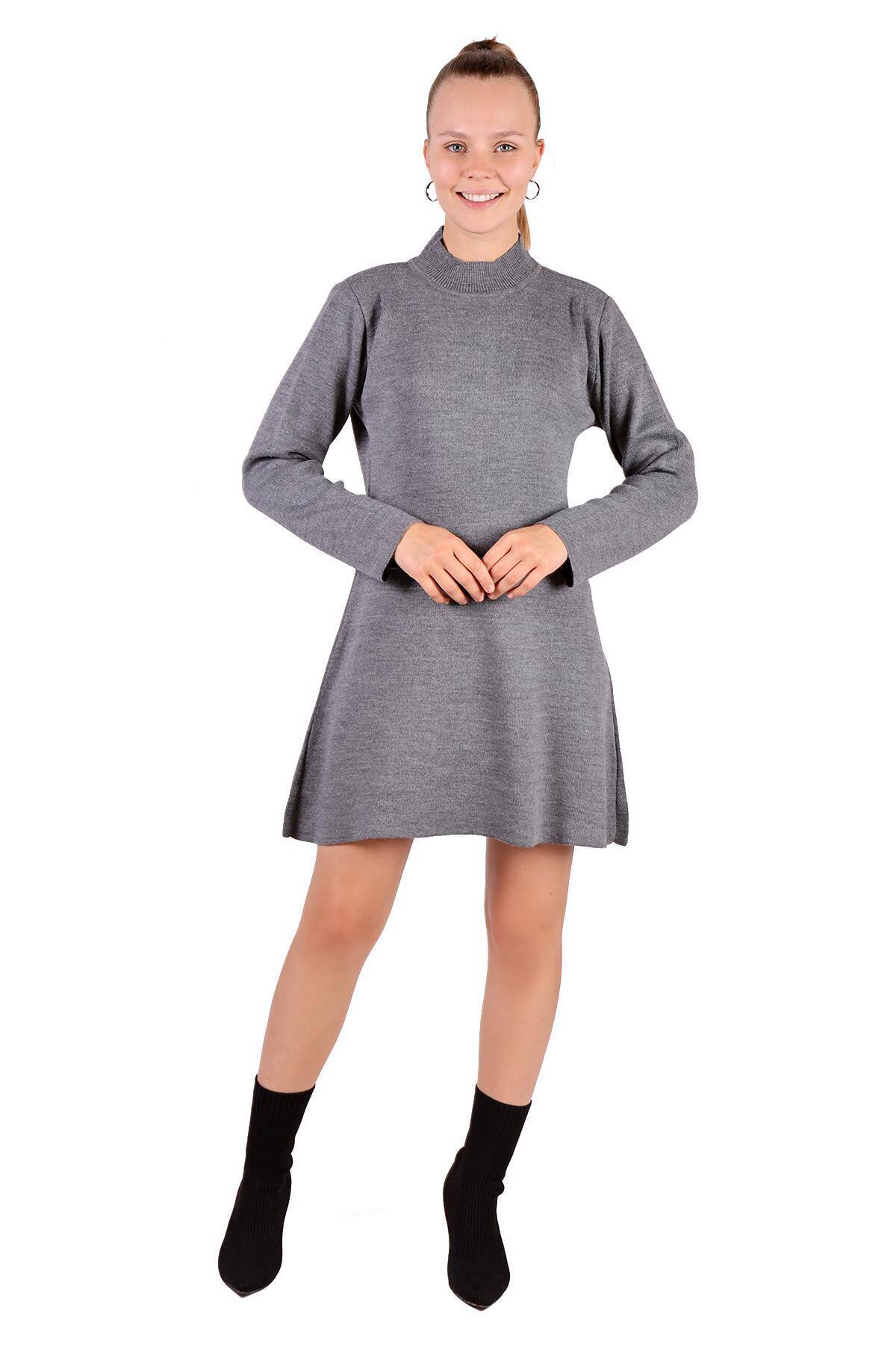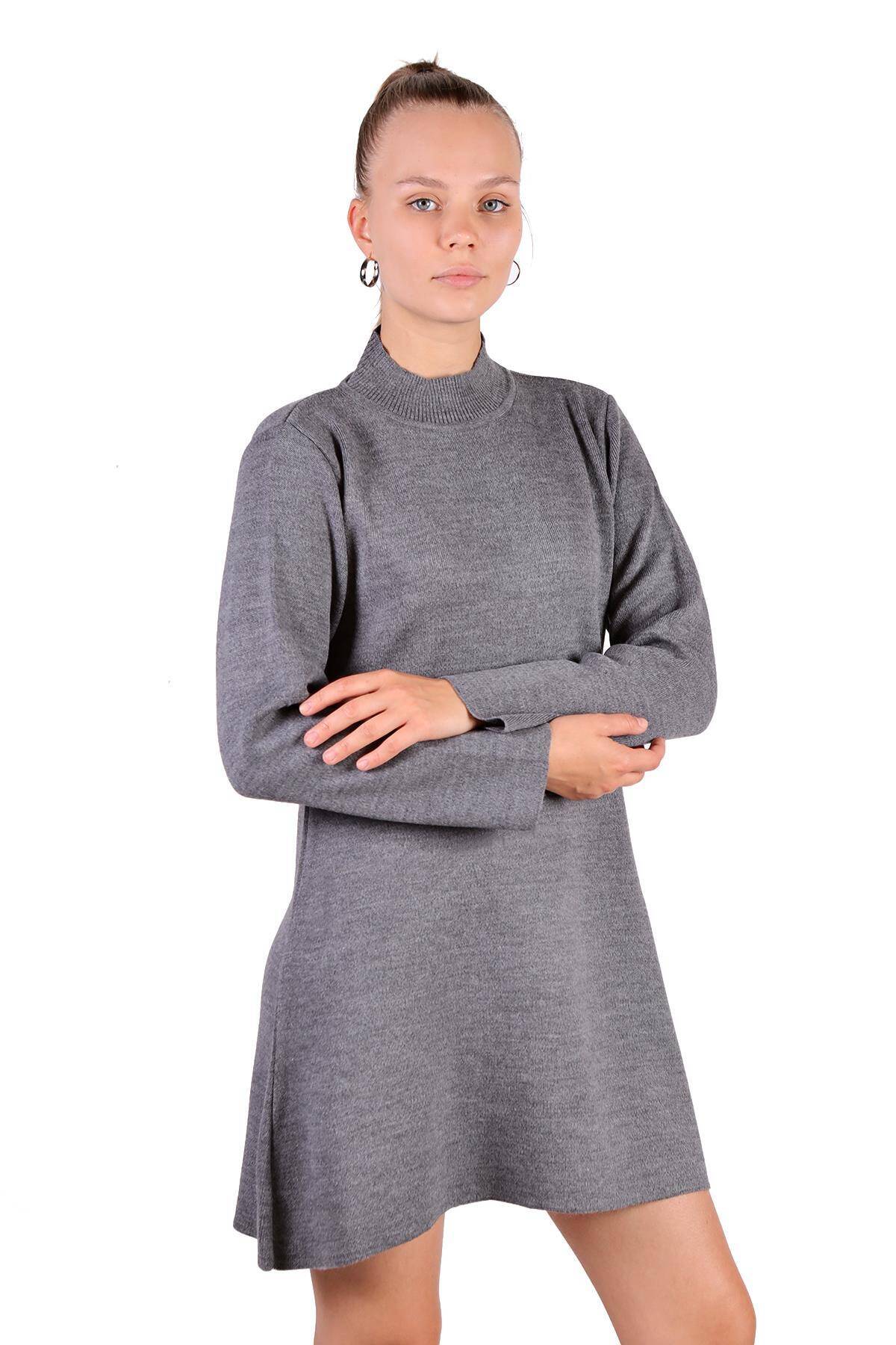 24151 Yarım Boğaz Kısa Triko Elbise Füme