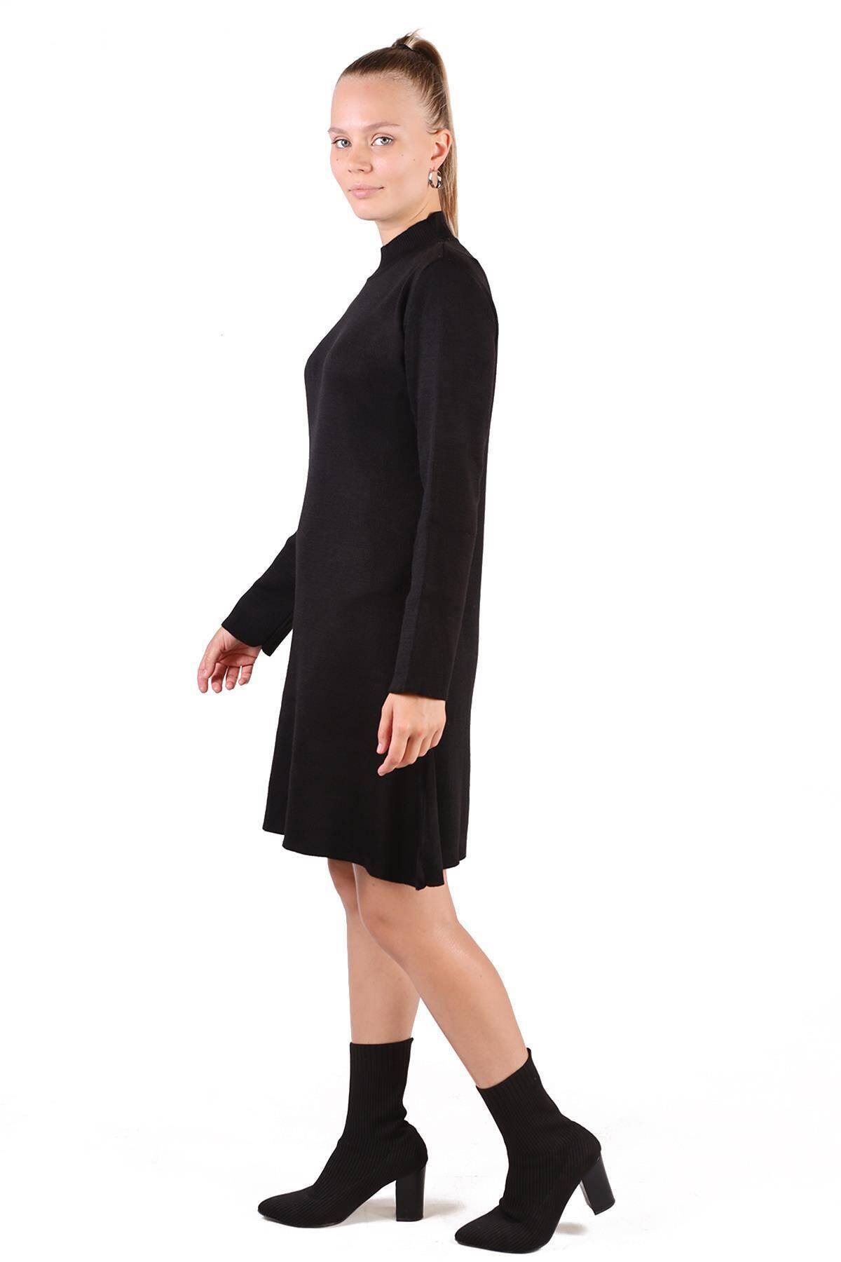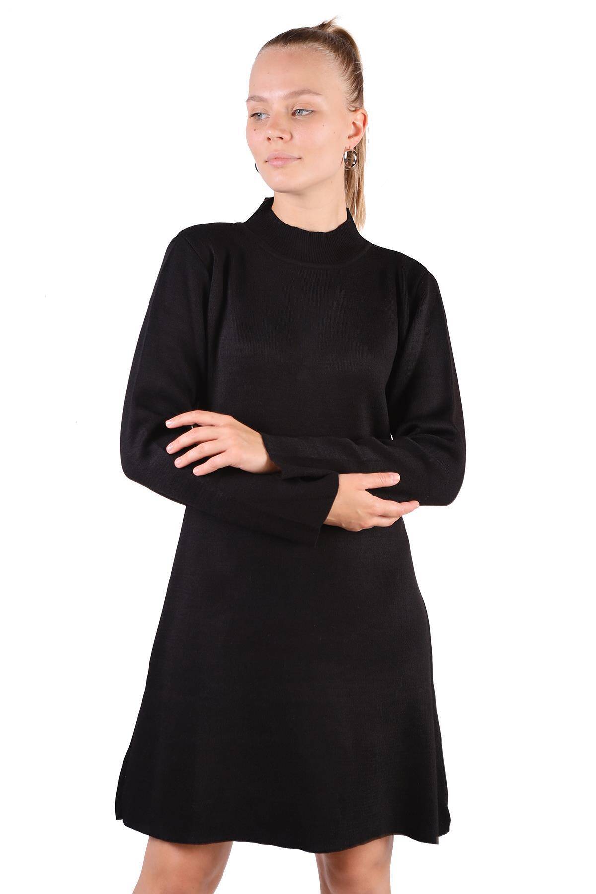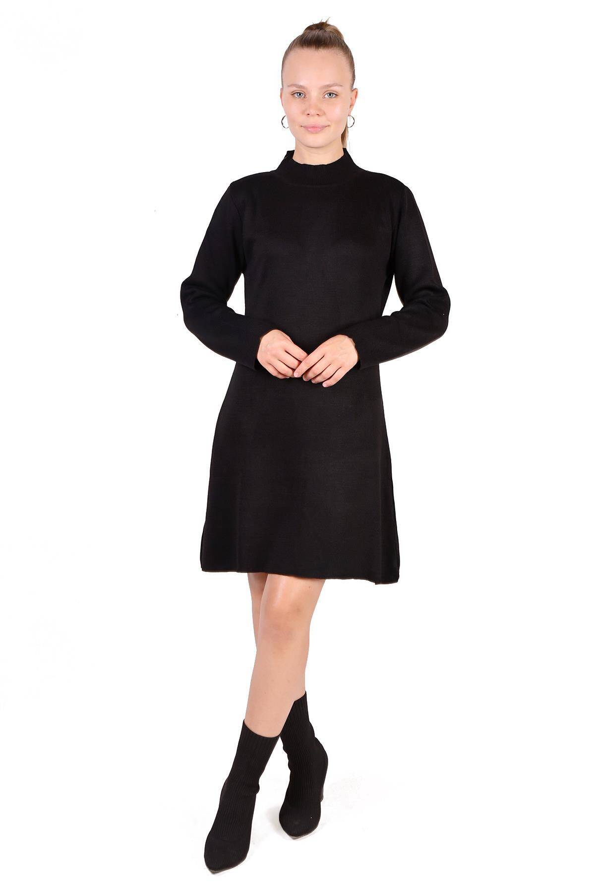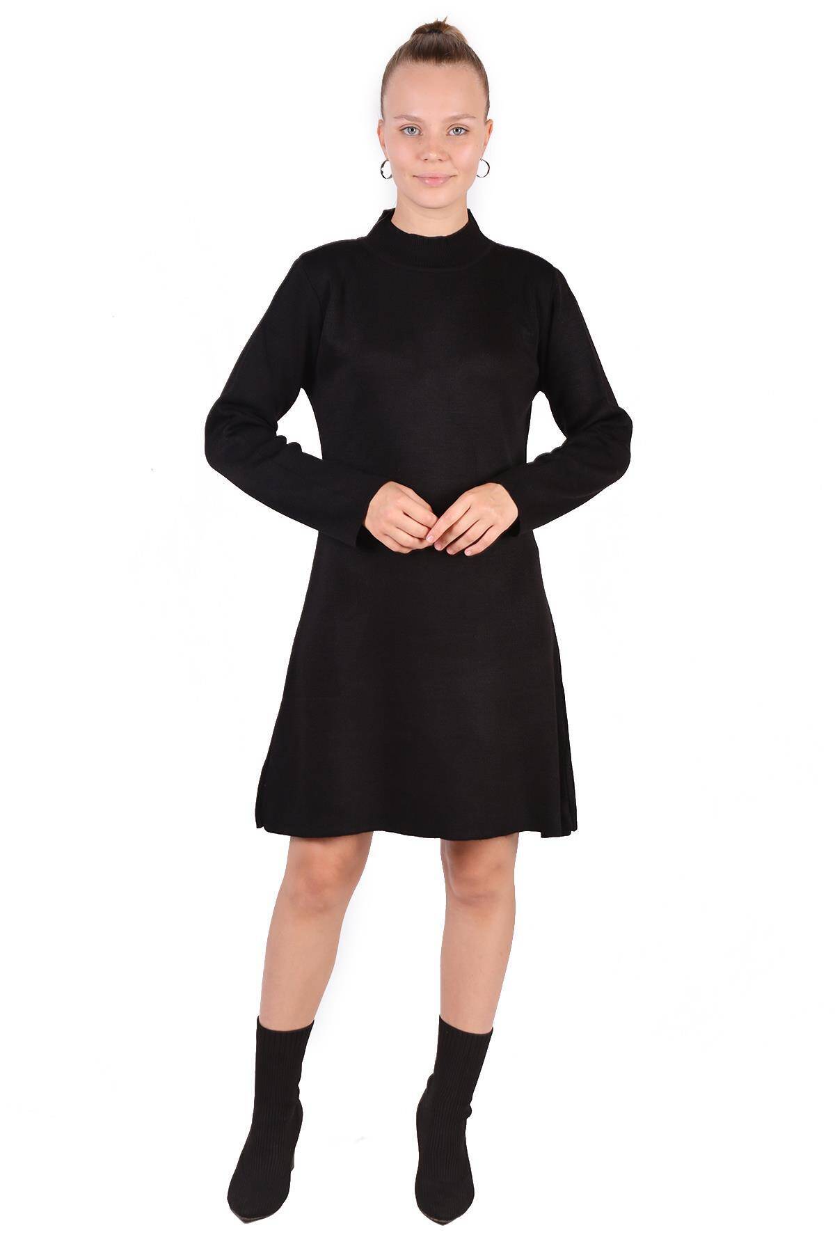 24151 Yarım Boğaz Kısa Triko Elbise Siyah