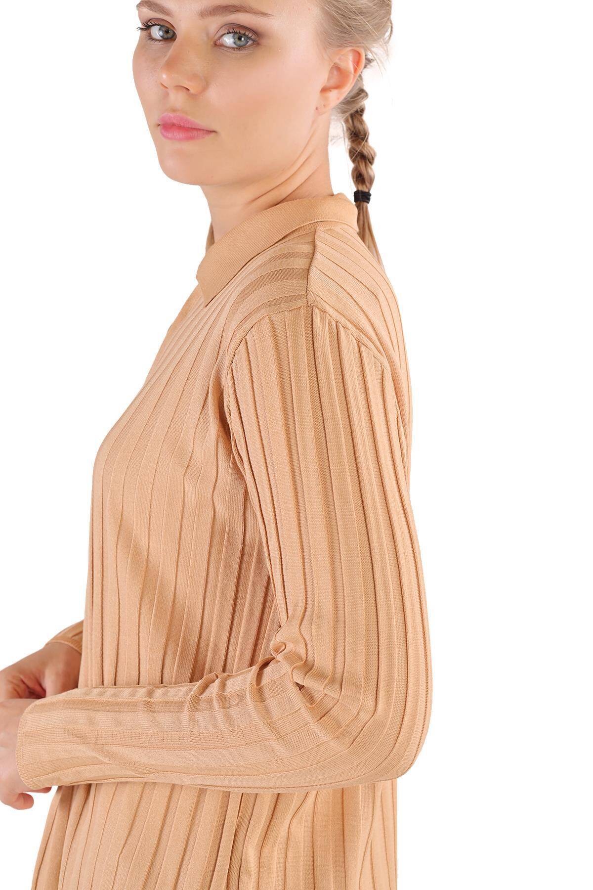 24199 Fermuar Detay Fitilli Kazak Camel