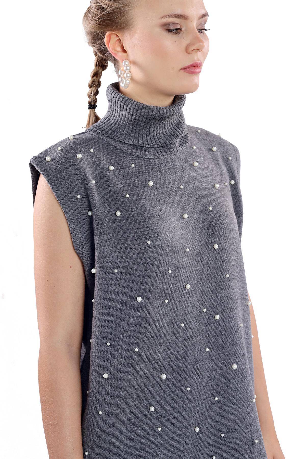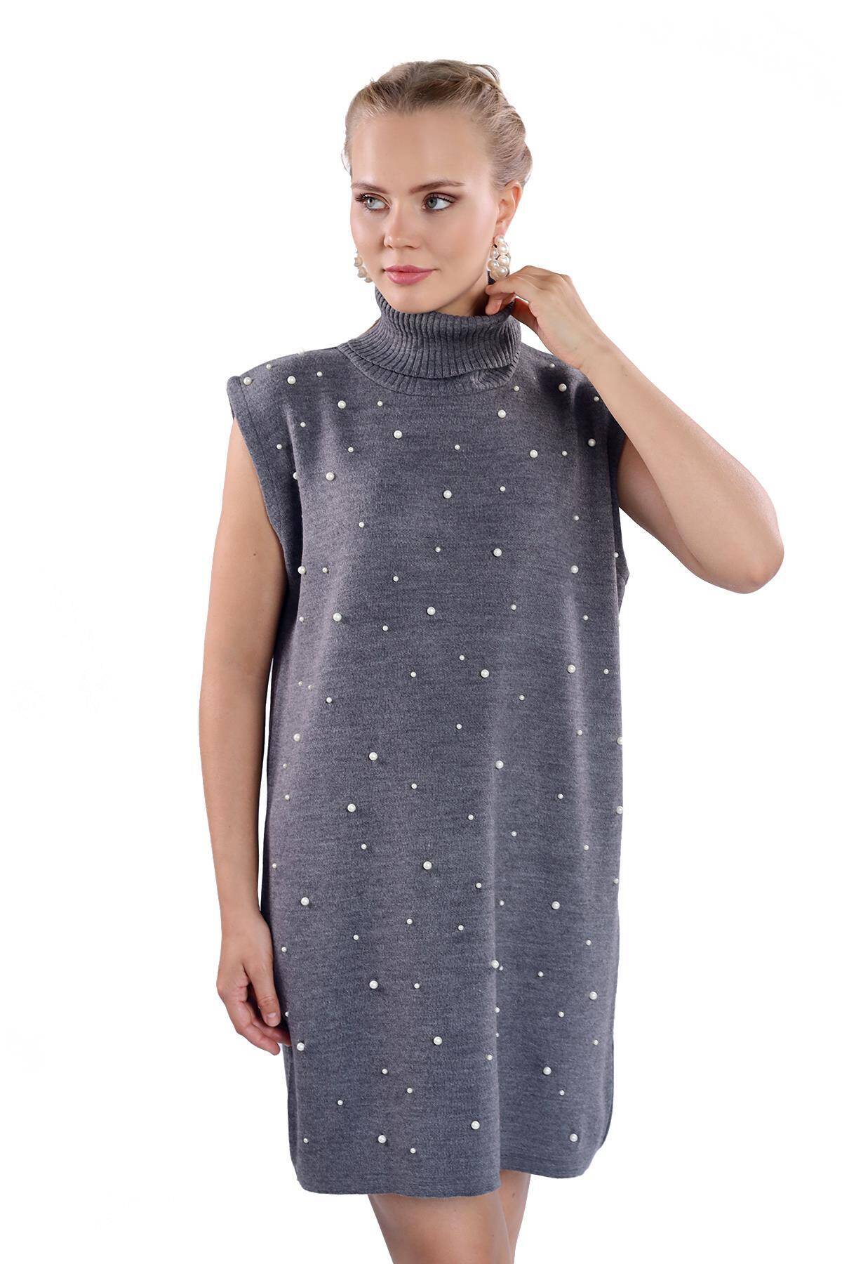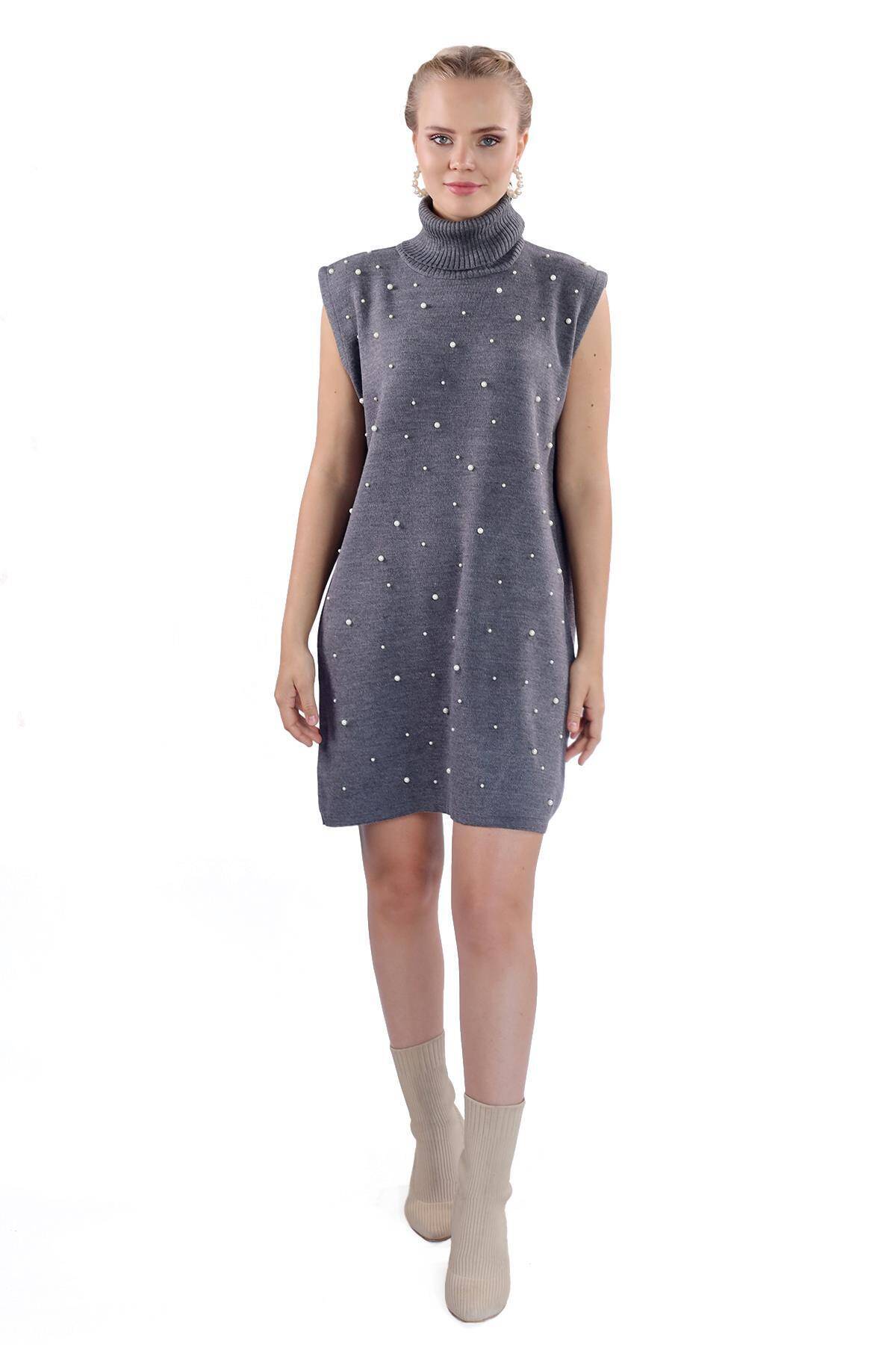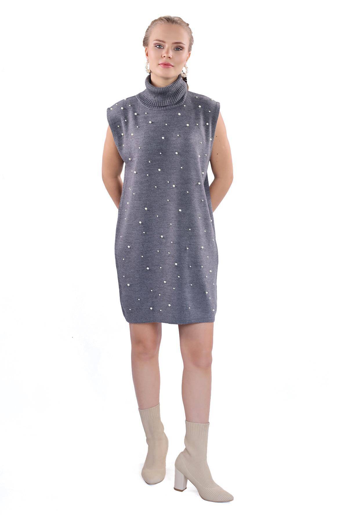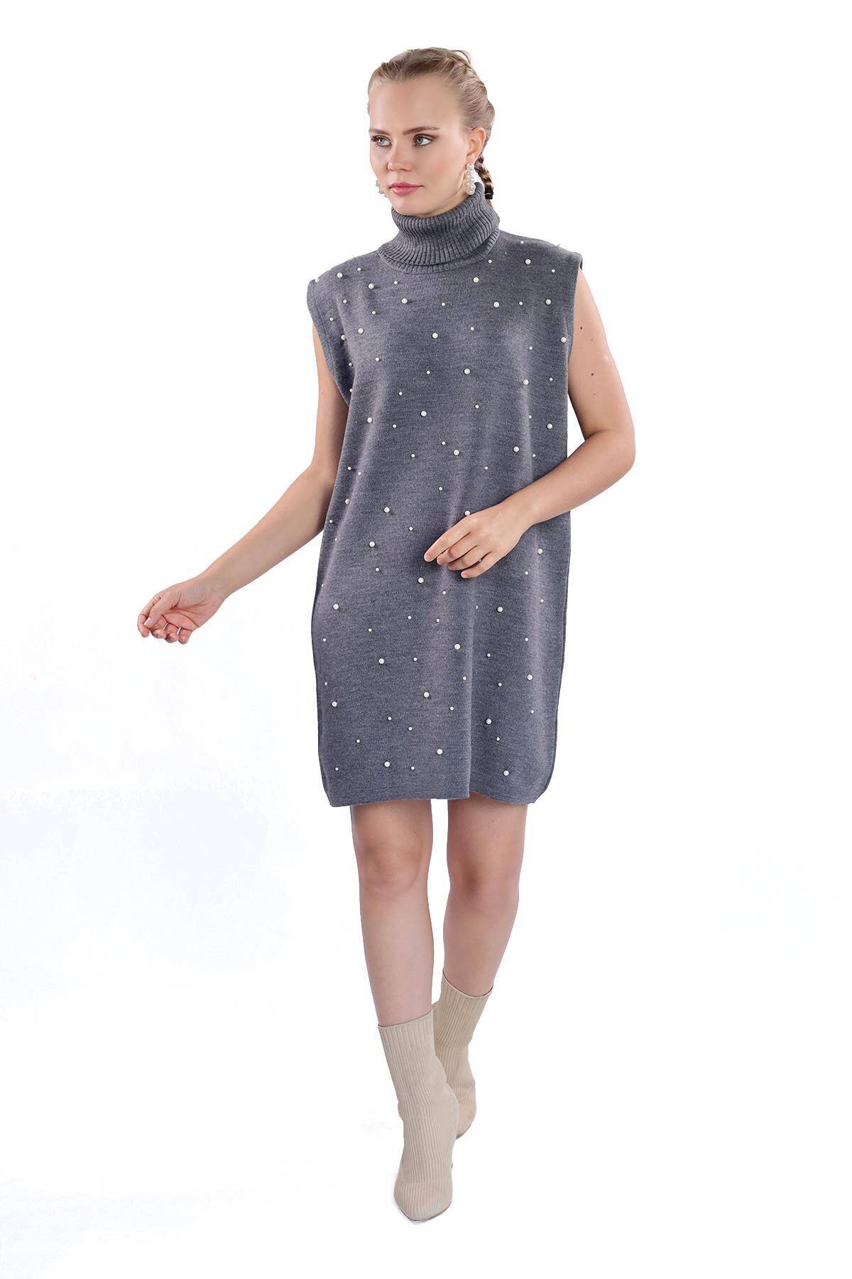 24202 İnci Detay Balıkçı Yaka Elbise Füme